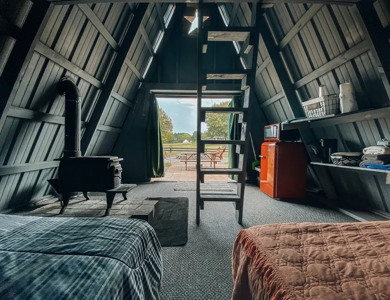 Closest to Restroom/Shower Building, Barn & Kitchen! THE STARFIRE 12 A-Frame Glamper has 2 queen size & 1 full size memory foam beds, WIFI, big screen TV, clean linens, window AC, wood burning stove, small fridge, hammock, grill, picnic table, fire pit & other amenities. Restrooms/showers within 100 feet. 32 mi to downtown Nashville! Complimentary Country Breakfast 7:00-10:30 a.m! (Great for 4 to 6 peeps and a pet or two!) Thanks! The space Glamp out in the middle of a beautiful 46-acre farm that was originally built and owned by Reba McEntire. She named the beautiful farm "Starstruck Farm". We love you Reba and Thanks! Your glamping spot comes with a hammock for two, patio, picnic table, fire pit and grill and more! Sleep like no other campers on plush memory foam mattresses. Experience something you will remember for a lifetime! Address: 10471 Highway 109 N, Lebanon, TN. 37087 Location: Farm formerly owned by Reba McIntyre, known as Starstruck Farm. 2 miles south of Gallatin, Tennessee on Highway 109. Arrival: Turn off 109 into the long, paved property driveway. Look for the large stone gates at entrance. You will see a huge, beautiful barn located at the end of the driveway. Restrooms: There are two restroom and shower buildings located north and south of the Grand Ole Barn. Please let us know if the restrooms need attention. More info to follow...……. Thanks Jay Guest access Guests have the Starfire 12 A-Frame Glamper all to themselves, as well having shared access to 46 acres of beautiful Tennessee farmland. The Starfire 12 sits on the farm built by Reba McEntire and I am honored to be able to share the most beautiful farm in Tennessee with you! Other things to note Important Note for Starstruck Farm and Twig City Farm Guests: If you reserve one of my Tiny Houses, Horses Stall Suites, A-Frame Glampers, Tents, Teepees or Pitch-A-Tent Listings please stop and consider that you are reserving a listing located on a farm and in the country. It is not unusual to see an occasional insect or small Tennessee wildlife (including Stuart Little on very rare occasion) during your visit. If this is an issue for you or anyone in your party, please do not make a reservation. I am not able to provide a full or partial refund. HOUSE RULES AND INFORMATION: 1. Whimsical, Fun, Adventurous Lodging. Jay Wilfong, your Host offers whimsical, fun, adventurous lodging. Perfectly Imperfect. Starstruck Farm and Twig City Farm are not intended to be a “Martha Stewart, Hilton, upscale experience”. Think “cowboy bunkhouse” or “steampunk tiny house” accommodations. Flooring, rugs, bed linens, towels and décor are absolutely Not Matching. If all of that is ok and you’re ready for something new, different and fun then make your reservation now! 2. Arrival Information Message. If you make a reservation, you will receive the ARRIVAL INFORMATION message shortly after booking. It is very important that you read it before you arrive so that you know where you are going and that you will have other needed info during your visit. 3. While traveling to my places just enjoy the drive and be safe. There is no need for you to let me know when you are arriving because my places are all “self-check-in”. 4. Guest Assistance. In the event assistance is needed, Registered Guests shall contact Guest Assistance by phone to expedite faster service. Do not send emails or text messages please because emails and texts might be overlooked for a period of time. 5. Family friendly! My places are Family Friendly. Please wear appropriate clothing. No loud, profane language or obnoxious behavior. All alcoholic beverages must be concealed either in cups or koozies. Marijuana is illegal in Tennessee. Complaints from other guests and/or staff will cause your removal from the property without a refund. 6. Need help? Call don’t email. The Guest Assistance phone number is provided to you immediately after you make your reservation. I cannot reply to email or text messages sent after 10 pm. 7. Pets. Pets are welcome only in my “pet friendly” listings as long as they are listed in your reservation, house-trained and clean. All dogs must be on leashes and cleaned up after when taken outside and absolutely cannot run loose. 8. Service pets and emotional support animals. Legitimate service pets and emotional support animals are welcomed at no additional charge in all of Host’s listings. Registered Guest shall disclose to Host what services the pets have been trained to assist with and description of their training. Animals are not allowed to be in close proximity to prepared food served to other guests. 9. No smoking inside any of my listings. Host and Registered Guest agree that Host will receive a $150 cleaning and deodorizing fee paid by Guest if a listing is smoked in during Guest reservation. Also, please do not throw cigarette butts on the ground. 10. Third party bookings. If you are making a reservation for someone else you are 100% responsible for providing them the Arrival Information, and you are also responsible for their use of the listing, including damages and fees if applicable. 11. Truthful Registration of Guests & Pets. The Registered Guest shall provide the truthful, accurate number of registered guests at the time of booking or no later than 6 hours after the booking is confirmed. Failure to provide the correct number will result in a lowered Guest review star rating and an additional charge for the unregistered guests at the rate of $25 per guest per day. 12. Check in procedure, time and late arrivals. The check in procedure is self-check in and the check in time window is between 3 pm and 10 pm. Check-ins after 10 pm are considered late and Guest Assistance may not be available. 13. Fee Schedule: Early check in/late check out fee $20 each. (Subject to availability) After hours (after 10 pm) check in fee is $20. Lost keys or keys not returned by 1 pm day of checkout: $25 fee. 14. Host right to cure issues.