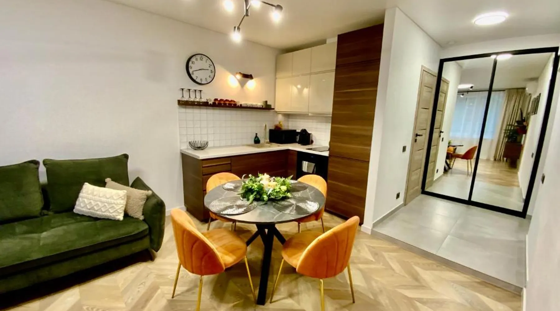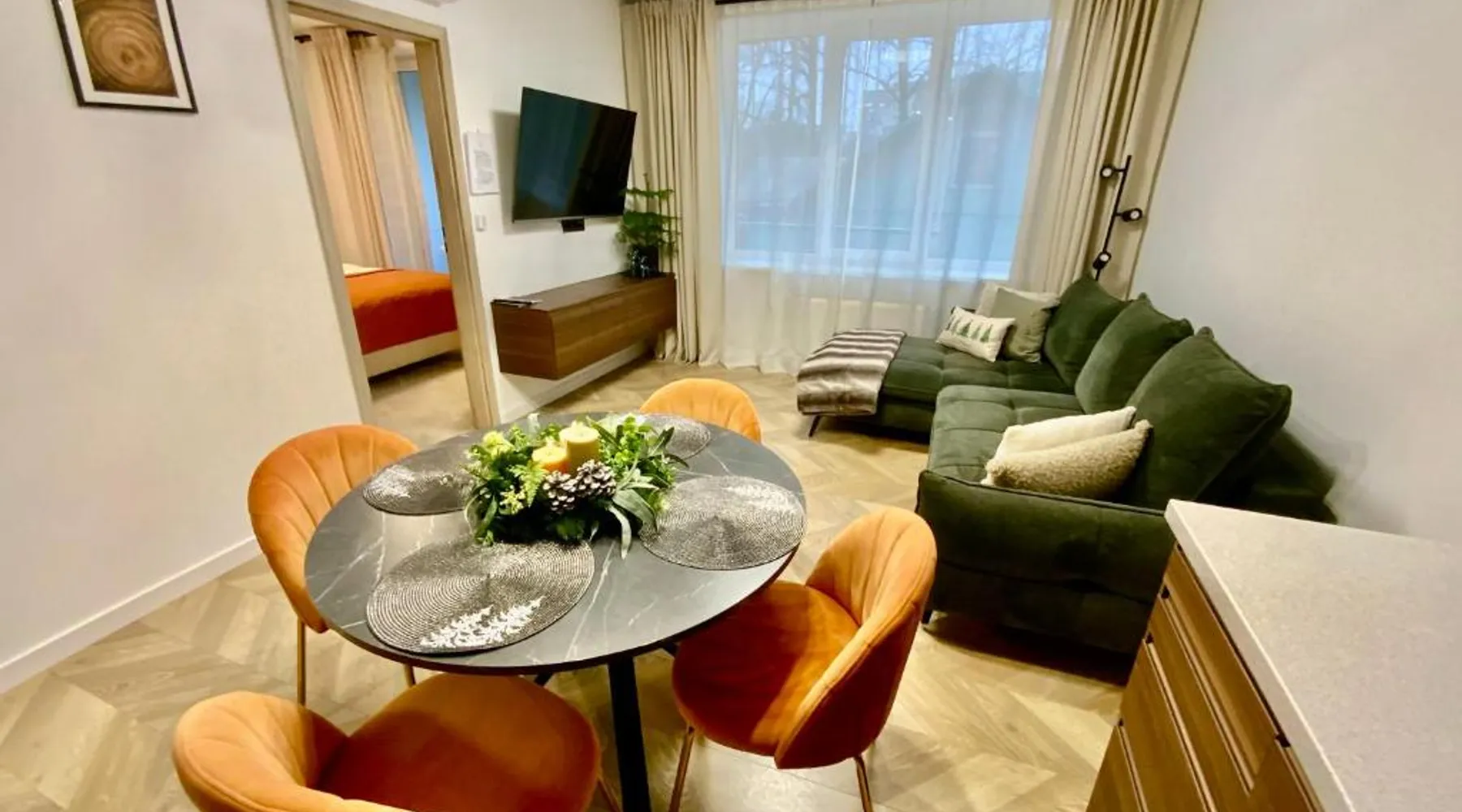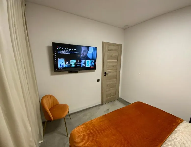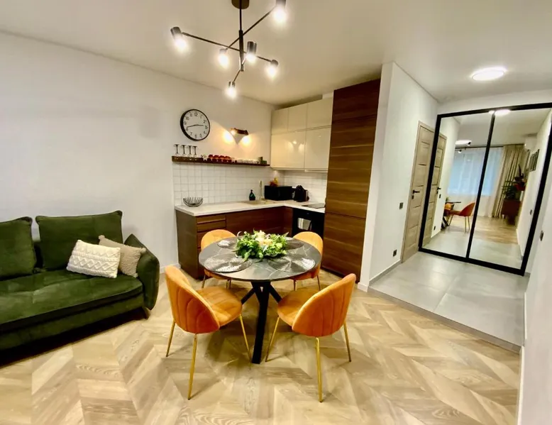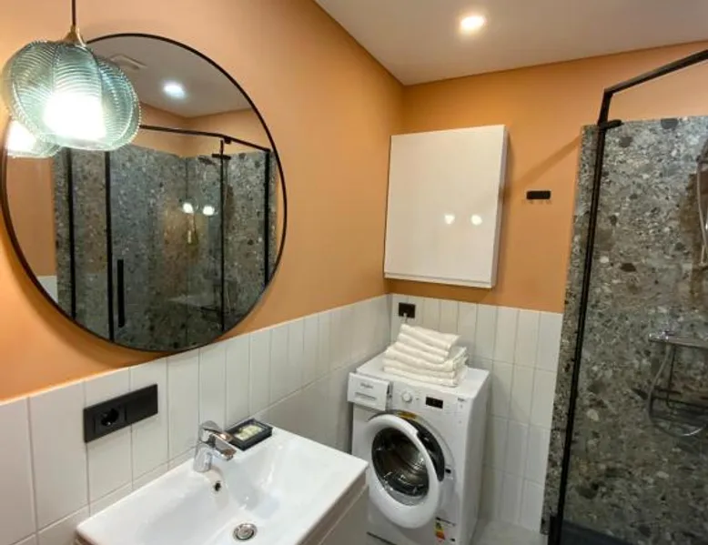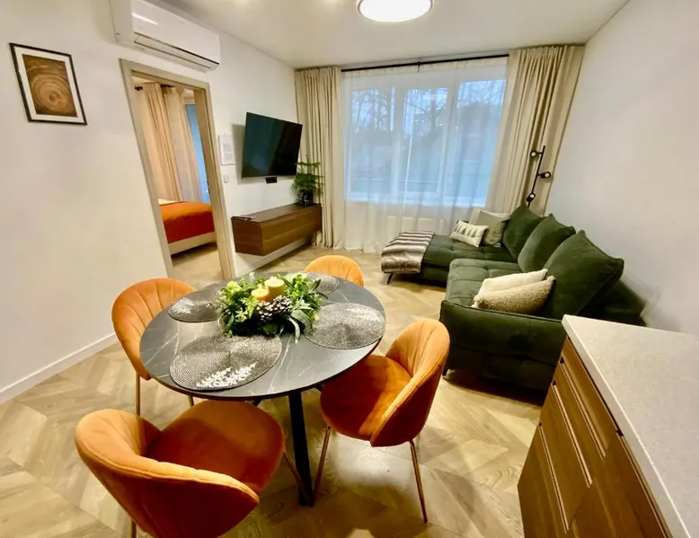 Comfortable Living: Alėjos Apartmentai City in Druskininkai offers a one-bedroom apartment with a living room. The property features a terrace, balcony, and free WiFi. Modern Amenities: Guests enjoy air-conditioning, a fully equipped kitchen, washing machine, and streaming services. Additional facilities include a elevator, waterpark, outdoor seating area, family rooms, and ski storage. Convenient Location: Located 78 mi from Vilnius International Airport, the apartment is a few steps from Druskininkai Aquapark and 2.5 mi from Snow Arena. Nearby attractions include Druskininkai Aquapark and Snow Arena. Guest Satisfaction: Highly rated for its convenient location, room cleanliness, and child-friendliness. Meals can be prepared in the well-fitted kitchen, which comes with a stovetop, a refrigerator, a dishwasher and kitchenware. The air-conditioned apartment provides a flat-screen TV with streaming services, a washing machine, a private entrance, soundproof walls as well as garden views. The unit offers 2 beds.
