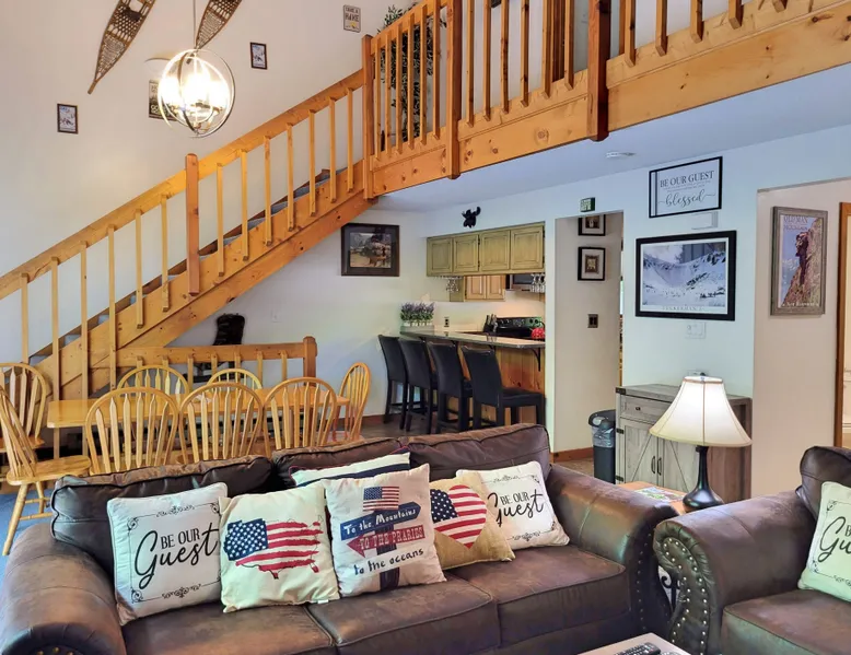 This three level townhouse provides an ideal spot for any vacation or get -away. Two social areas both with flat screen televisions allow you to spread-out and relax. Enter to the foyer and from there the spacious open concept living room, dining room and kitchen. These areas occupy the mid-level of the townhouse. The living room offers a large wrap-around couch, and large flat screen television. The dining area has seating for six with additional seating available close by at the kitchen counter. The kitchen has all that is necessary to create a meal. Additionally on this level you will find a 1/2 bath, the laundry room and access to the back deck. The primary and second bedrooms are located on the upper most floor and each have a queen size bed, air conditioning and private bath. On the lowest level you will find the third and fourth bedrooms each with two twin beds. These bedrooms share a bath. Also on the lowest level is a second living room with comfortable seating and another flat screen television. During the summer season make sure to take a dip in the near-by old fashion river swimming hole or spend time at one of the two outdoor pools. Tennis courts are also available during the summer months. Please note: This unit provides two unassigned parking spaces. Parking tags must be displayed. Shuttle bus service to Loon Mountain Ski Area is now available - see details at The outdoor pool and tennis area are available in the summer season only and may be unavailable for short periods due to mechanical or physical maintenance. Admittance may be denied for non-adherence to club rules. This unit does not allow pets. Riverfront homes no longer allow tenants to use fireplaces. This unit has two air conditioners, one in each upstairs bedroom. There is an electric grill on the deck and a gas grill under the deck. Managed by Loon Reservation Service - NH Meals & Rooms Lic# 056365