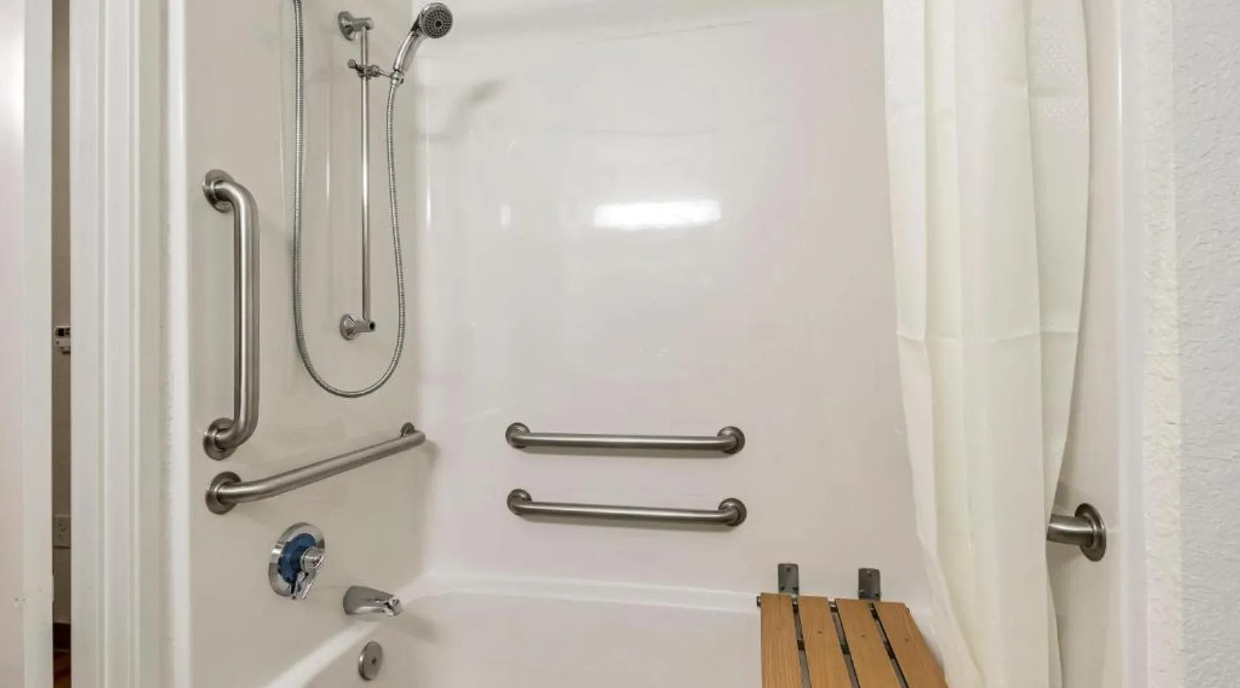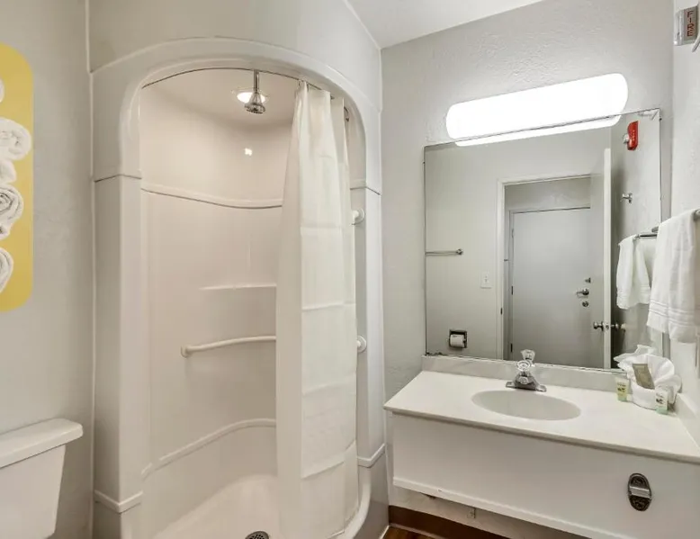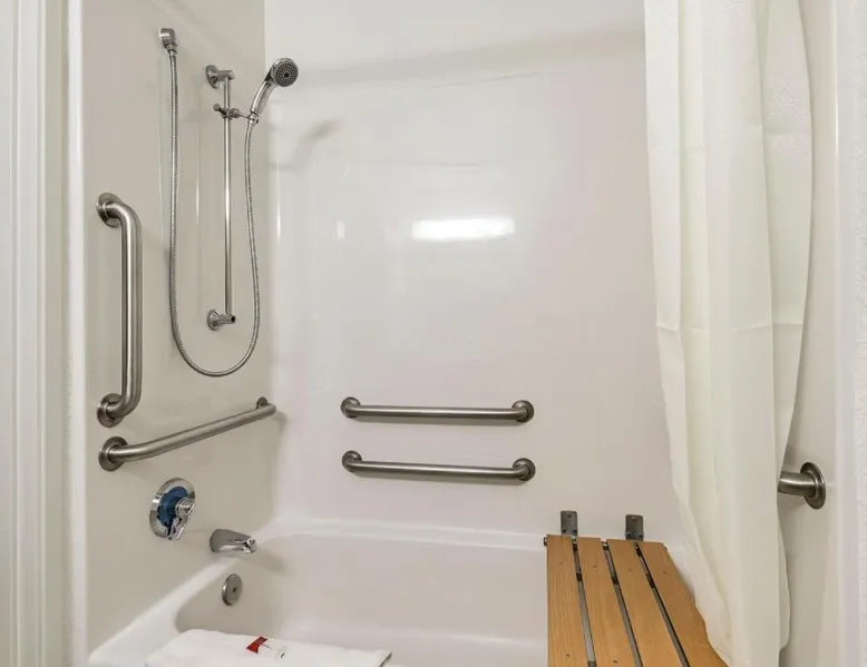 Comfortable Accommodations: Motel 6 Ogden, UT- Downtown in Ogden offers air-conditioned rooms with private bathrooms, tea and coffee makers, and TVs. Each room includes a bath with a walk-in shower, refrigerator, and microwave. Exceptional Facilities: Guests can enjoy a swimming pool with a view and free WiFi. The property features a 24-hour front desk and free on-site private parking. Additional amenities include a bath, walk-in shower, and shower. Convenient Location: Located 3.7 mi from Ogden-Hinckley Airport, the hotel is near attractions such as Ogden Eccles Conference Center (1.3 mi), Golden Spike Arena (4.3 mi), Davis Conference Center (14 mi), and Lagoon Amusement Park (22 mi). Guest Services: Guests appreciate the attentive staff and excellent service support, value for money, and the swimming pool. This room includes a roll-in shower and additional handicap accessible features.
