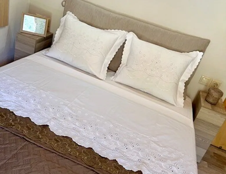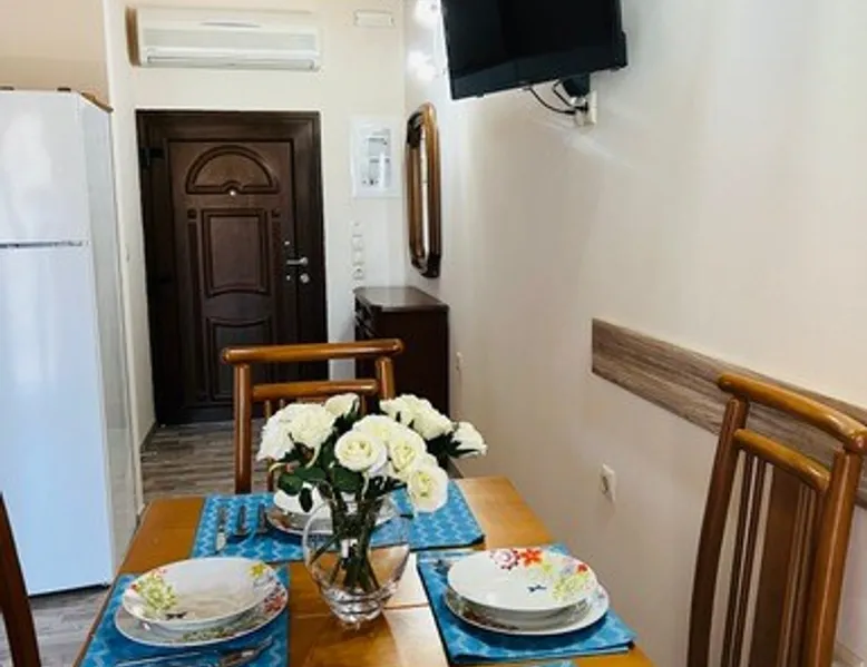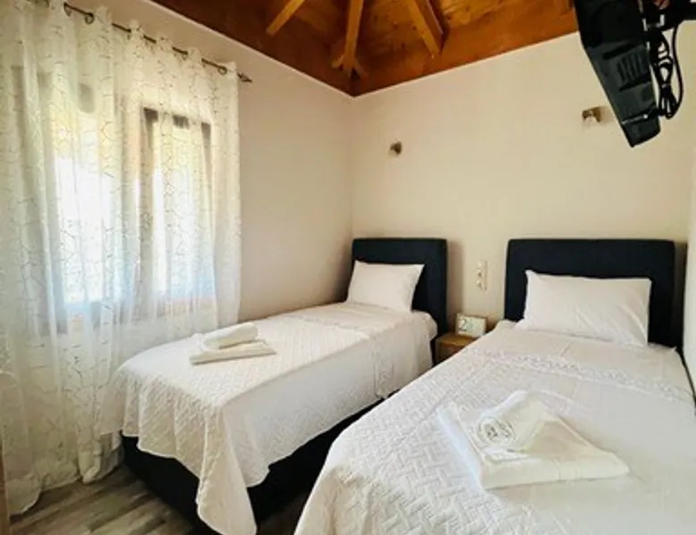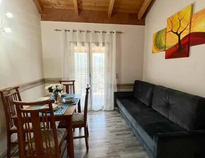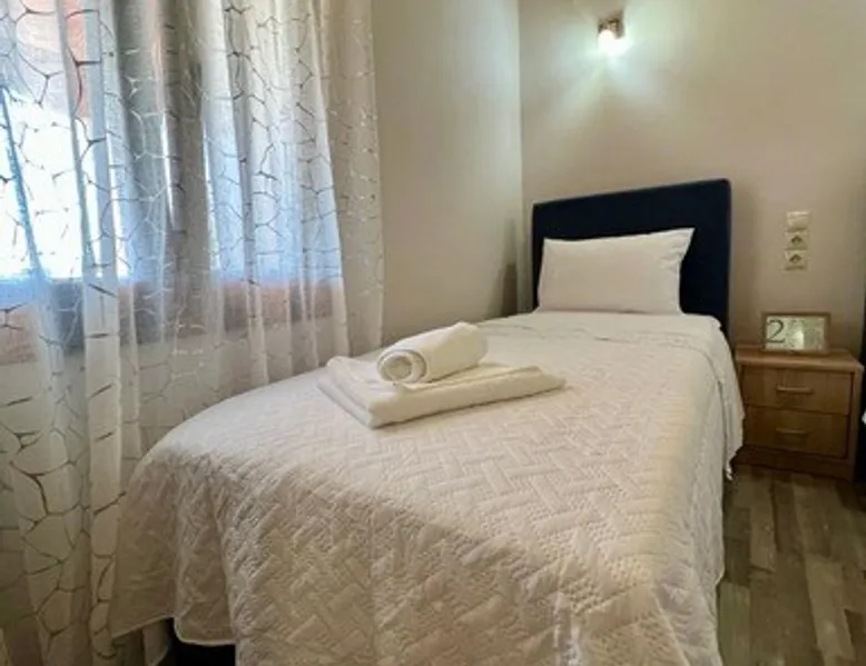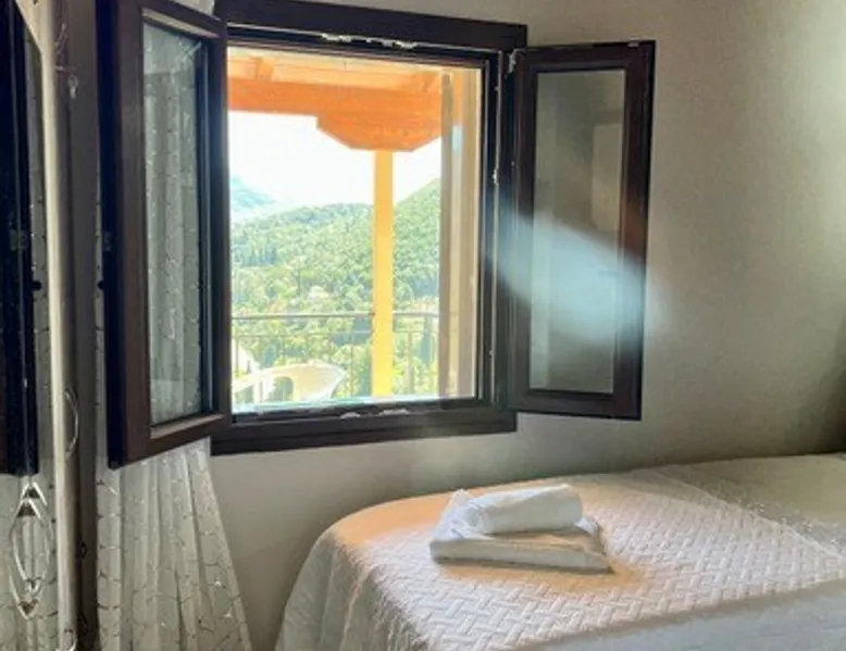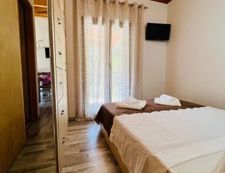 Katochori is a quiet small village, located 2 km from Vlyho, 3 km from Nydri and 3 km from the nearest beach (Desimi). The center of Lefkada is far 20 km. Near the village there are restaurants, bars, clubs, cafes, varius organized and unorganized beaches. Also in the village of Katochori there is a traditional tanern "Taxiarchis" and just 1 km from the village is the nearest super market. The space Is a 50s.m. apartment with 2 bedrooms a living room and a barthroom. One bedroom has a double bed, fan, tv, wardrode, bedside table, mirror, patio door and balcony with mountain view. The other bedroom has two single beds, fan, tv, wardrobe, bedside table, mirror and window with mountain view. The living room is connected to the kitchen, where there is a sofa bed, table seats, large refrigerator, cooking rings, air condioner, patio door and a balcony with a mountain view. The bathroom has a shower and a washing machine. Registration Details 00001591946