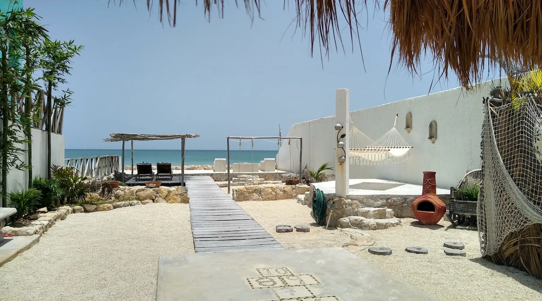 Villa Bohemia is an adults only, relaxing getaway located in a quaint fishing village between Chelem and Chuburna, off the Entrada Arrecifes (Reef). Catch some sun at the pool or at the beach, or relax in the shade and enjoy the peaceful and relaxing environment we've created for you. Snorkel and swim at the small reef, located right in your own backyard. No kids or pets are allowed. The space Beautiful and stylish open loft space overlooking the pool and the ocean with your own kitchen and ocean front patio. Other things to note Check-in time is after 3pm and departure is 11:30am No additional guests