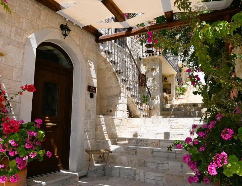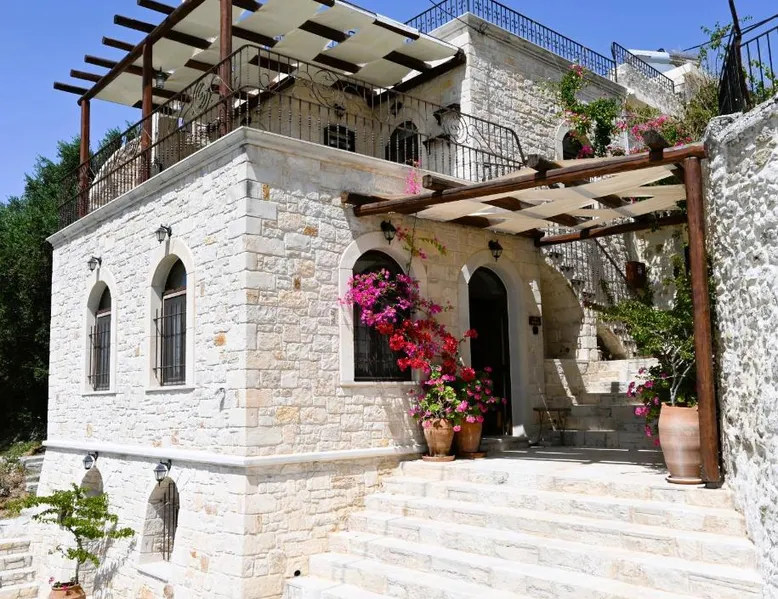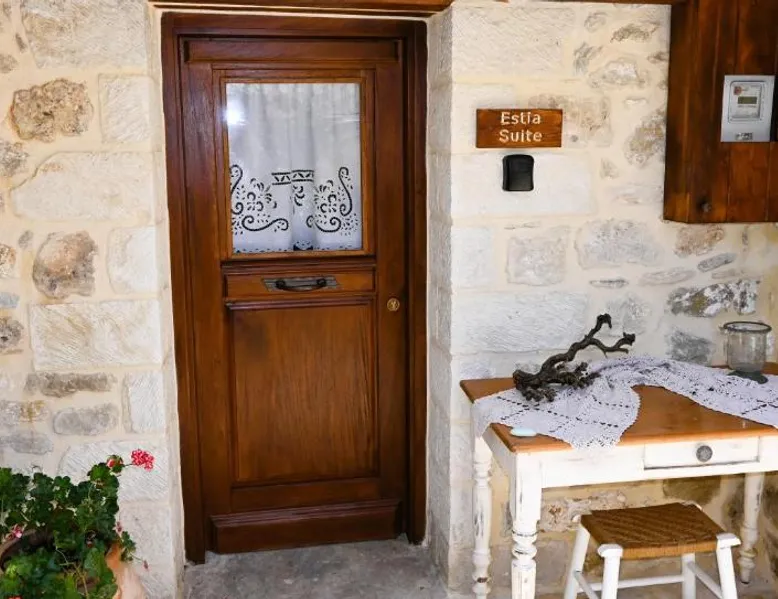 Sun Terrace and Garden: Villa Athina - Irene Country House in Kato Chorio offers a sun terrace and a lush garden. Guests can relax in the outdoor seating area or enjoy the picnic spots. Comfortable Amenities: The apartment features air-conditioning, a private bathroom, and a fully equipped kitchen. Additional amenities include a balcony, terrace, and free WiFi. Convenient Services: Private check-in and check-out, a paid shuttle service, and a tour desk are available. Free on-site parking and bicycle parking enhance the stay. Local Attractions: Lake Voulismeni and Panagia Vrefotrofos are 17 mi away, Agios Nikolaos Port 17 mi, and Sitia Public Airport 31 mi from the property. Boasting a private entrance, this air-conditioned suite includes 1 living room, 1 separate bedroom and 1 bathroom with a walk-in shower and a hairdryer. In the fully equipped kitchenette, guests will find a stovetop, a refrigerator, kitchenware and an oven. This suite has soundproof walls, flat-screen TV, sea views, as well as wine/champagne for guests. The unit has 1 bed.