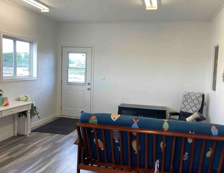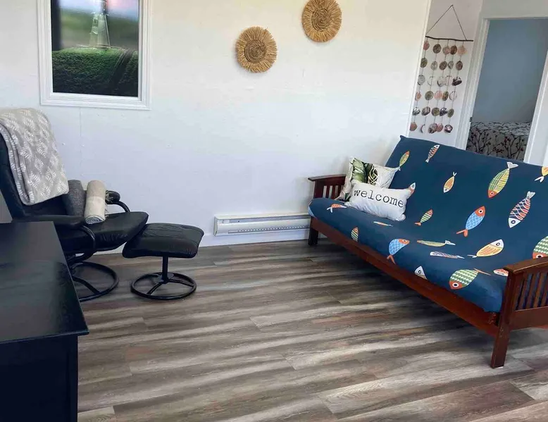 Are you looking for the perfect weekend getaway? This cozy little cottage is located right on the creek at Cochin, Sk and is perfectly priced for you and your family & friends to stay. Enjoy your morning coffee on the deck listening to the birds chirping. Or hike the trails at the nearby Provincial Park. This humble abode is built for pure enjoyment, relaxation, and connection with nature. This is one you don't want to miss. The space This single level , open concept cabin with natures light makes you feel warm and inviting and has PLENTY of space for you and your family. As you step inside prepare to fall in love and be WOW'd with the spectacular view to the lake/creek. Brand new flooring, kitchen and fresh paint throughout the cabin truly makes you feel right at home. The cabin has two bedrooms, one with a Queen bed and the other room that has a bunkbed. The living area has a fun little futon to accommodate your little ones. Our fully stocked kitchen with toaster, fridge, stove, coffee maker, blender, utensils, kids bowls/plates/cups, containers for food storage during your stay makes it easy for packing! The dining area has seating for 4 & the living room has a 42" flat screen with Netflix capability. Relax in the comfortable leather arm chair or of course the futon couch. The breath taking views from the living room can be enjoyed at all times while in and outside of the cabin. The bathroom has a cute little pedestal sink, toilet and stand up shower. As you head outside you will find a beautiful deck that spans the entire width of the cabin to make room for all activities. This back-yard paradise has large stairs leading down to the spacious firepit where you can sit back and relax watching the sun set behind the one-of-a-kind lighthouse. The dock leads out right into the main body of the creek where you can leave your boat, kayak, canoe or paddleboats in the water and attached to the dock for the duration of your stay. We have provided 3 lawn chairs for the firepit area, but feel free to bring more for your enjoyment. We now have wifi. Check out below for the sought-after neighbourhood that you will be surrounded by during your stay! Guest access You have the entire cabin/ parking/ deck/ yard to yourself during your stay. The dock you will share with one neighbour but other than that your dock is secluded away from anyone else being able to access your belongings. Other things to note *The dock is shared with one neighbor that has a seadoo on it. Please respect his seadoo. There are three really nice beaches close by. 1. Cochin Beach, this one is busier and is quite large, it goes out a ways before it gets deep so for small children it is great the sand is nice here. This beach is about a 10 min walk from the cabin. 2. Hunts cove beach is also a really nice walk about the same distance. Here the sand is roughly the same or a bit smoother, the beach is smaller and more cabin owners use this one so it is quieter, here the water drops off a little quicker but is still quite shallow inland. 3. The Provincial Park has a very large beach but you would have to drive here, this beach is very busy but does have some nice attractions like mini golf, some years they have a water bouncy jungle gym in the water. (Need to pay for this) But sand is roughly the same and the drop off is roughly the same as Cochin beach*