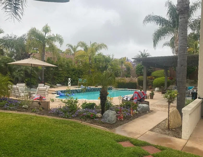 Very Nice Home, All Amenities, Beautiful Yards, Pool, Outside living at it's best upscale neighborhood 5-10 min from all Carlsbad Beaches I am very attentive to my home so you will find that EVERYTHING WORKS This Is A Beautifully Decorated 4 Bedroom 3 Bathroom Home and well equipped kitchen. It is near ( 3 miles ) most popular restaurant and night life area of Carlsbad Village and only 5 Minutes to Carlsbads Beautiful Beaches The Home offers a great ambiance with 4 bedroom . Fully equipped kitchen with granite counters, dishwasher, full size fridge, microwave, stove, toaster, mixer and coffee maker. Washer/drier is also included Nice living room with 65 inch TV, Master Bedroom 55" TV, Front Room 43" TV cable, NETFLIX, , sitting area and a couch /bed for additional guests. It has a large patio with chairs and dining table. You can enjoy the BBQ facilities, lounge chairs, heated swimming pool and Jacuzzi This Home is located in a quiet street in the center of the "Beautification Zone",