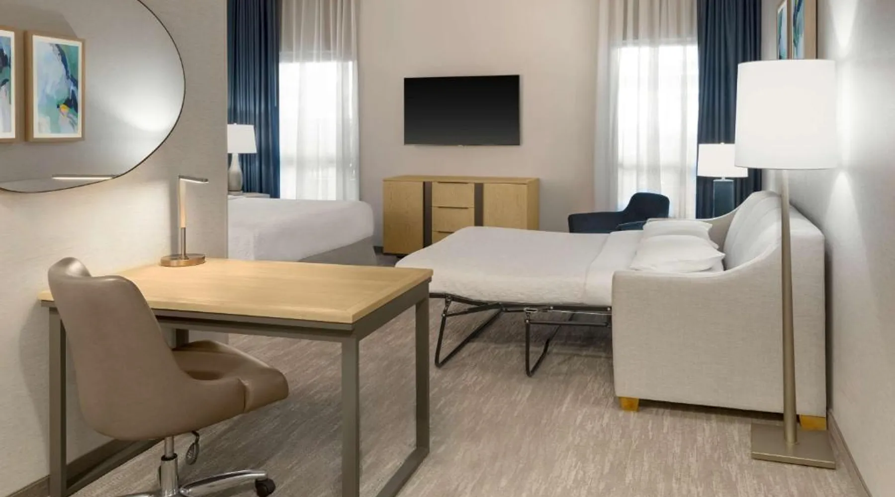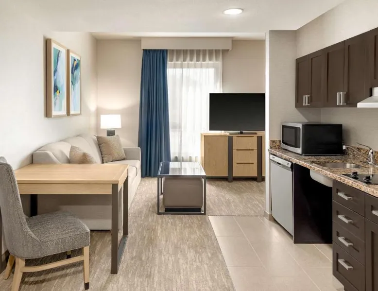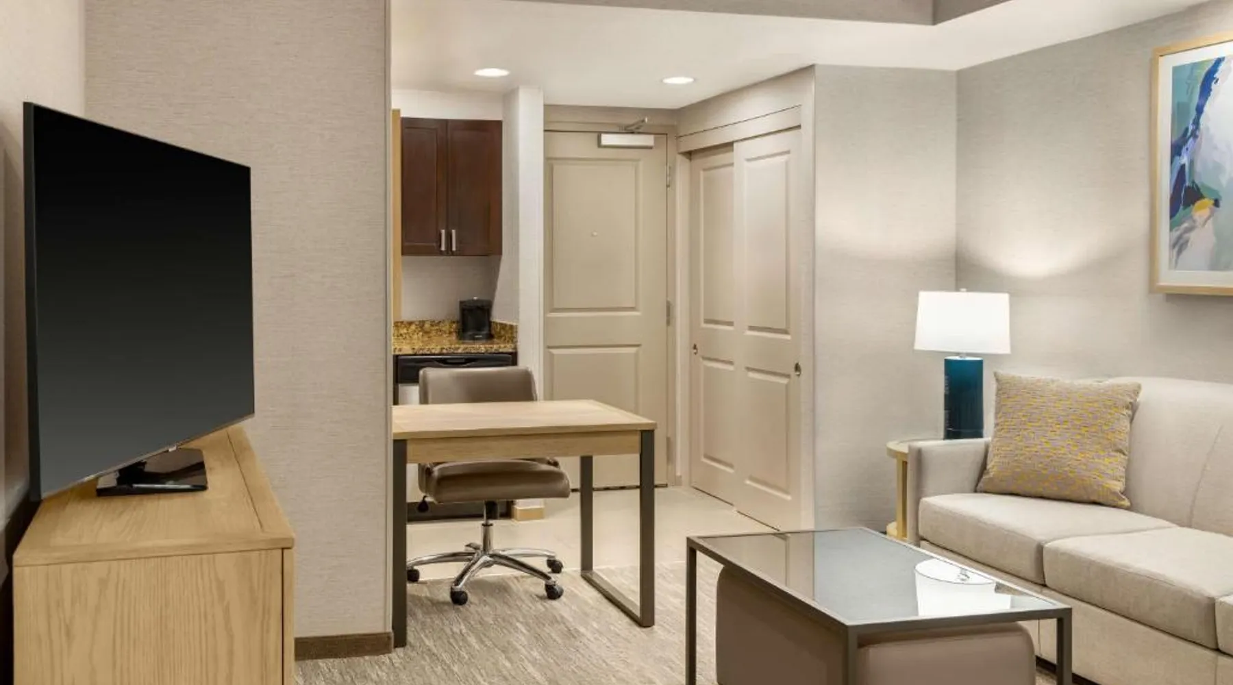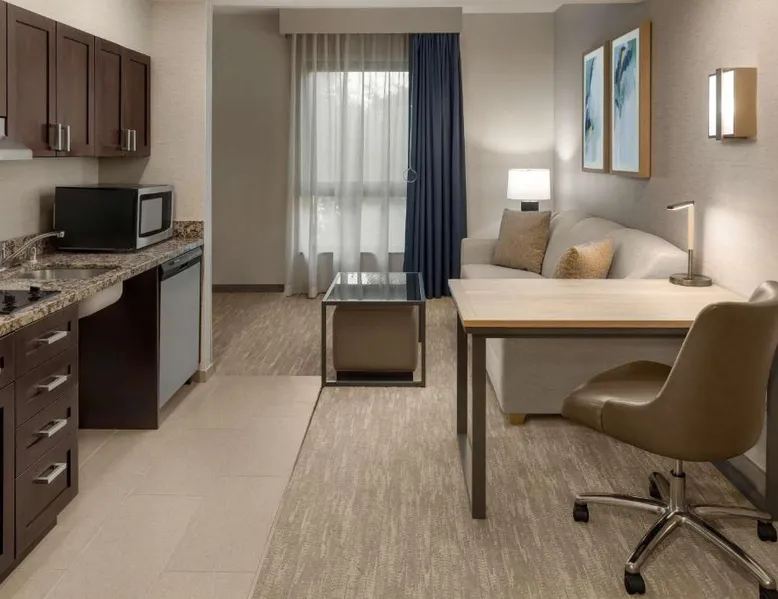 Offering an outdoor pool and a hot tub, Homewood Suites by Hilton Palo Alto is just 4.4 mi from Facebook's headquarters and 2.7 mi from Stanford University. Free WiFi is conveniently available onsite. Each room is comfortably air conditioned or heated. The kitchen comes fully equipped with a dishwasher and a microwave. Featuring a bath or shower, the private bathroom also comes with a hairdryer and free toiletries. A flat-screen cable TV offers in-room entertainment. Guests of Homewood Suites by Hilton Palo Alto can enjoy daily breakfast. Dinners with beer and wine beverages are available from Monday through Thursday. Guests also have access to the property's fitness center. Grocery deliveries are also offered for guest convenience. Free parking is available. The hotel is 10 minutes' drive from Palo Alto Farmers' Market. San Francisco International Airport is 21 mi away. This suite features air conditioning and cable TV.