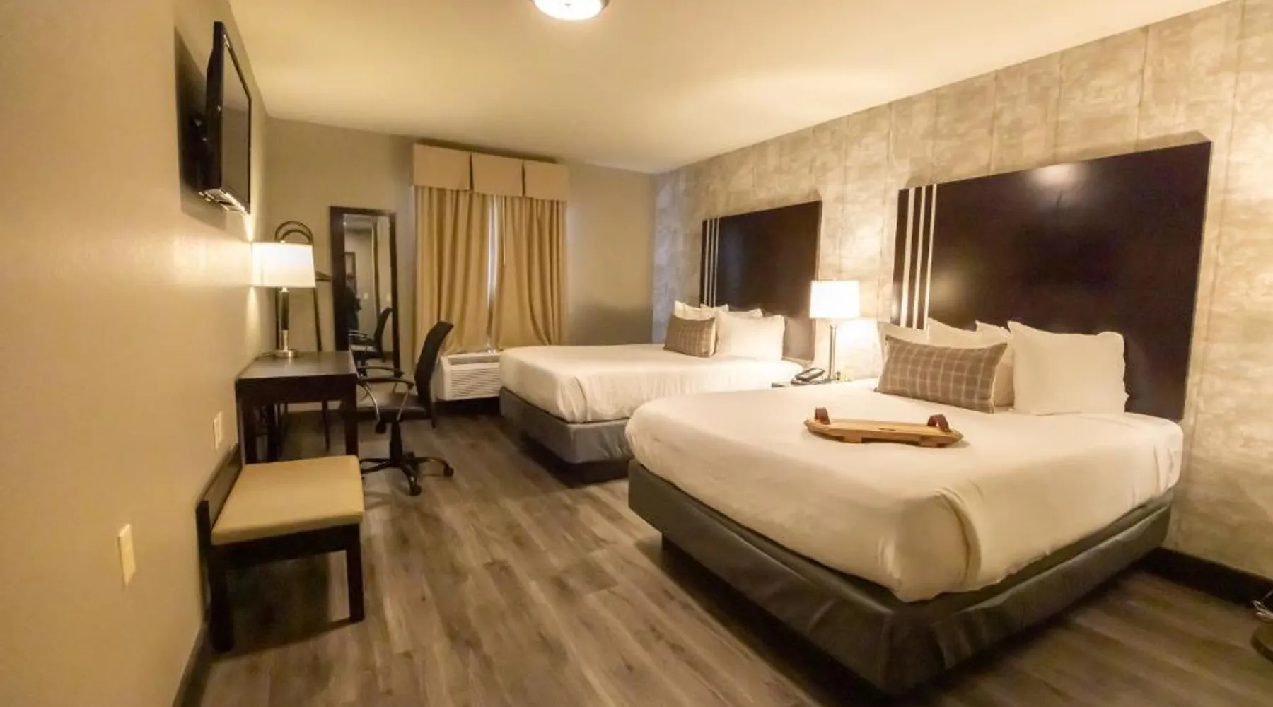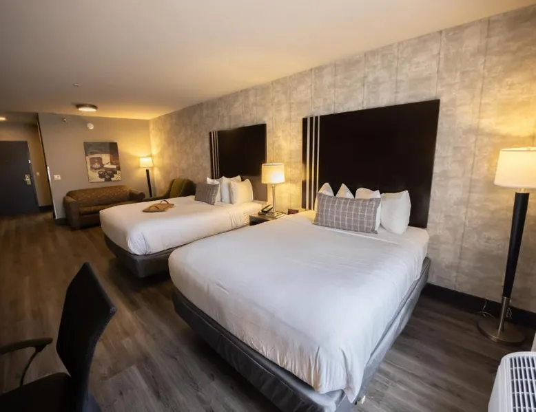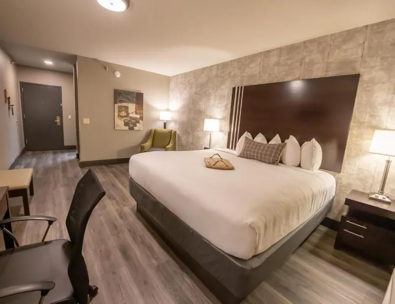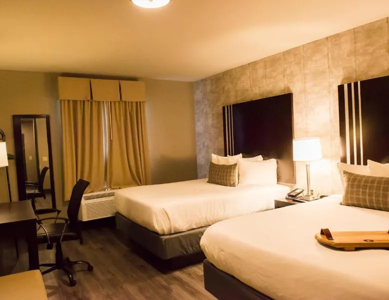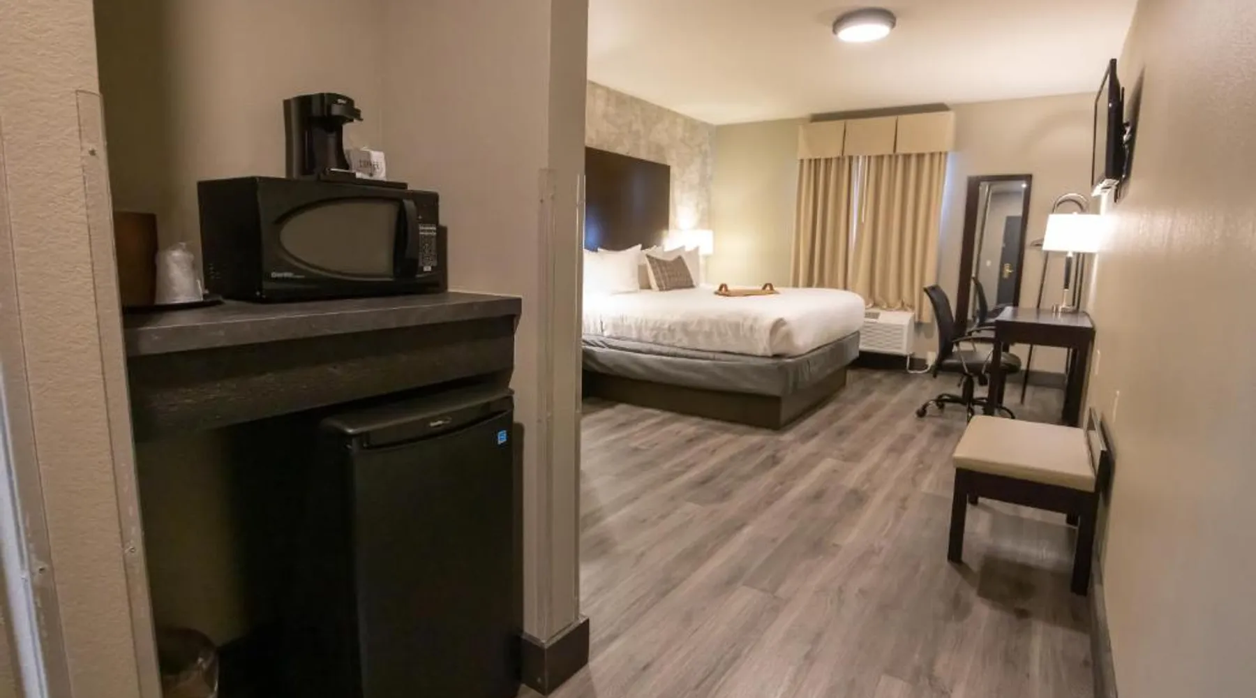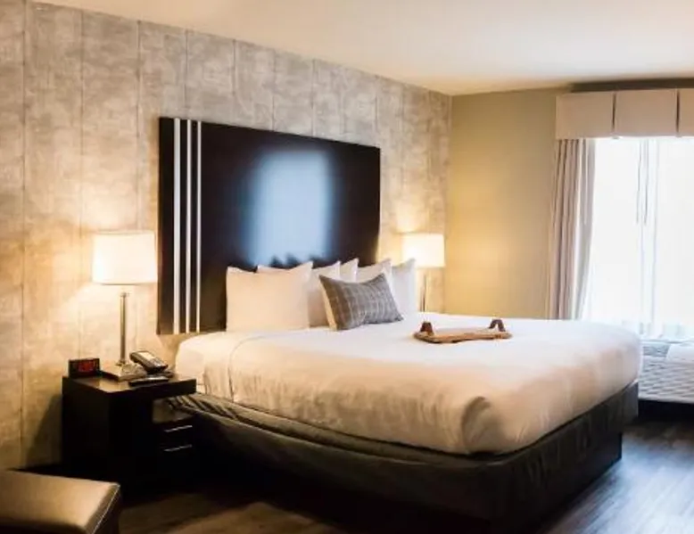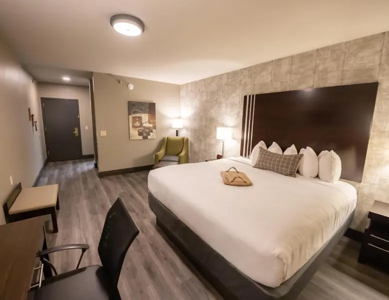 Comfortable Accommodations: Distill-Inn in Bardstown offers 3-star rooms with air-conditioning, private bathrooms, and free WiFi. Each room includes a tea and coffee maker, hairdryer, and work desk. Exceptional Facilities: Guests can enjoy a bar, coffee shop, and outdoor seating area. Additional amenities include a child-friendly buffet, express check-in and check-out, and free on-site private parking. Delicious Breakfast: A continental and American buffet breakfast is served daily, featuring warm dishes, fresh pastries, pancakes, cheese, fruits, and juice. Prime Location: Located 32 mi from Louisville International Airport, the hotel is near attractions such as My Old Kentucky Home State Park (3.1 mi) and Elizabethtown City Park (27 mi). Cycling activities are available. This suite features 1 living room, 1 separate bedroom and 1 bathroom with a bath and free toiletries. The air-conditioned suite features a flat-screen TV with cable channels, a tea and coffee maker, parquet floors and heating. The unit has 2 beds.