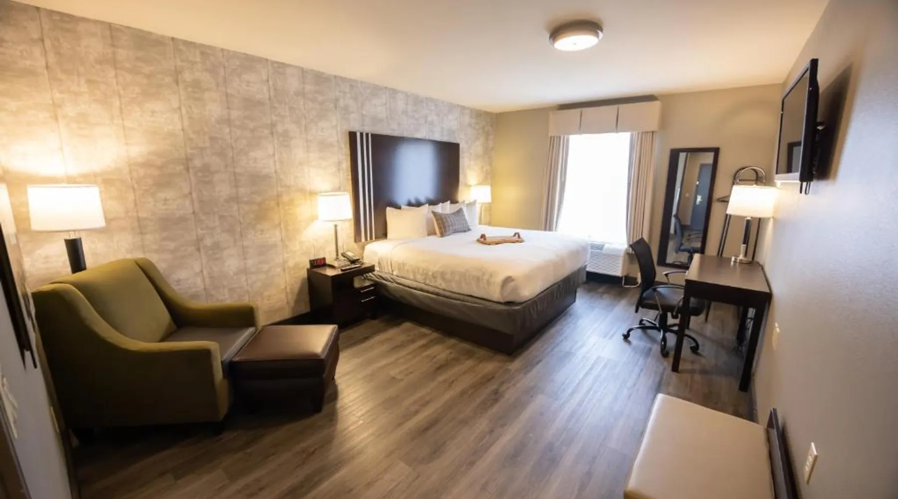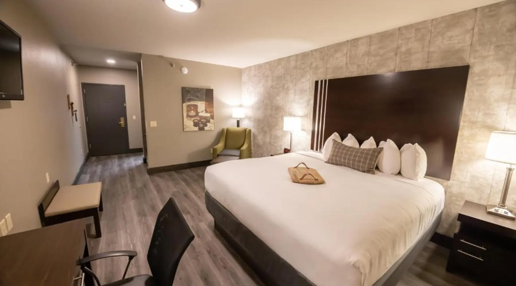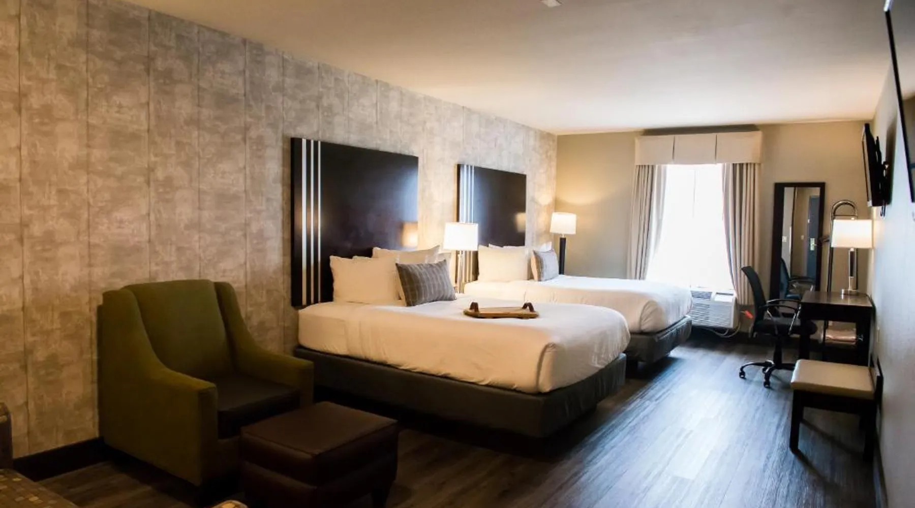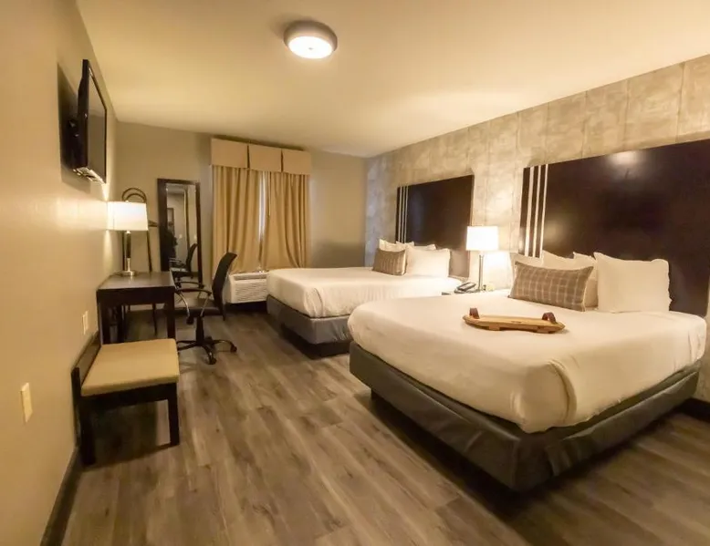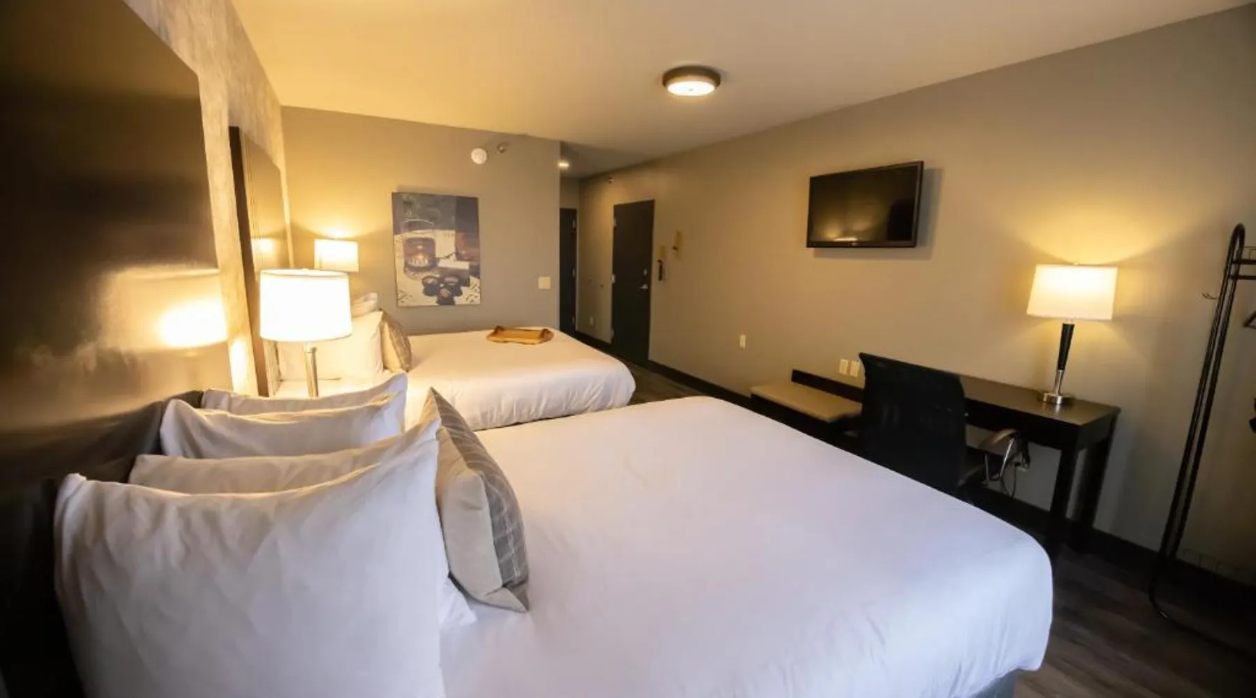 Comfortable Accommodations: Distill-Inn in Bardstown offers 3-star rooms with air-conditioning, private bathrooms, and free WiFi. Each room includes a tea and coffee maker, hairdryer, and work desk. Exceptional Facilities: Guests can enjoy a bar, coffee shop, and outdoor seating area. Additional amenities include a child-friendly buffet, express check-in and check-out, and free on-site private parking. Delicious Breakfast: A continental and American buffet breakfast is served daily, featuring warm dishes, fresh pastries, pancakes, cheese, fruits, and juice. Prime Location: Located 32 mi from Louisville International Airport, the hotel is near attractions such as My Old Kentucky Home State Park (3.1 mi) and Elizabethtown City Park (27 mi). Cycling activities are available. This suite features 1 living room, 1 separate bedroom and 1 bathroom with a bath and free toiletries. The air-conditioned suite features a flat-screen TV with cable channels, a tea and coffee maker, parquet floors and heating. The unit has 2 beds.