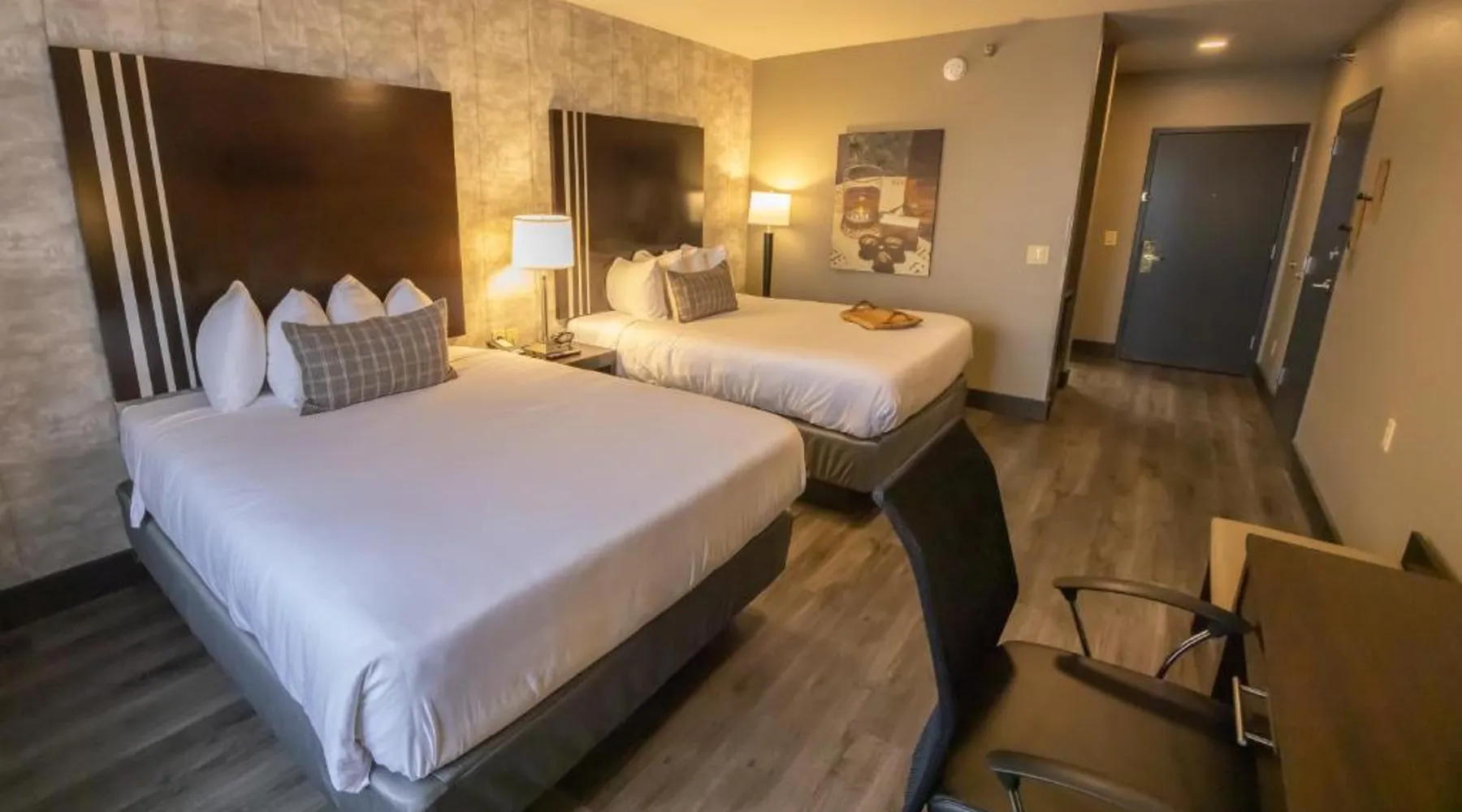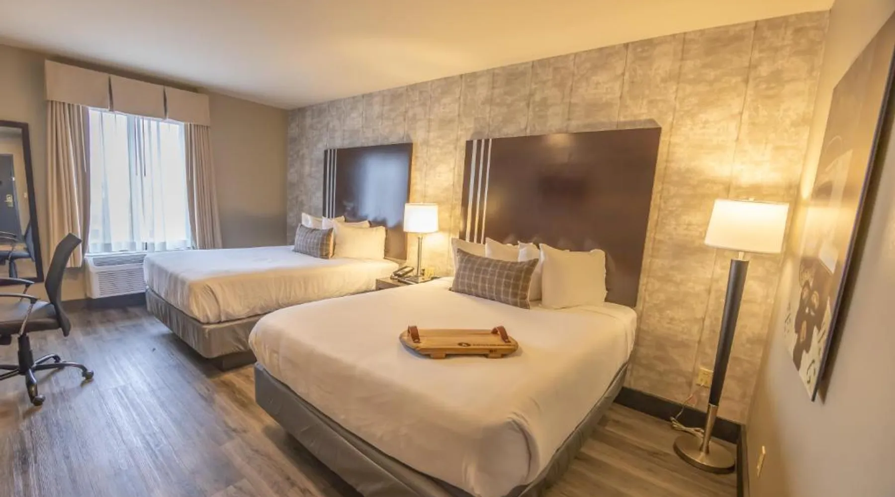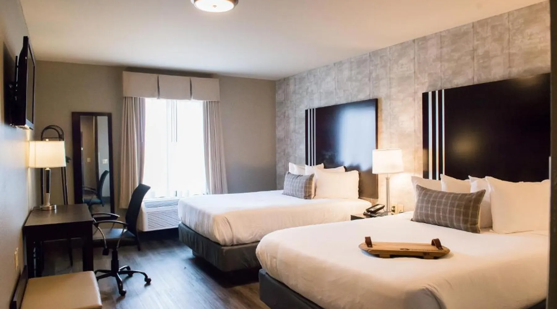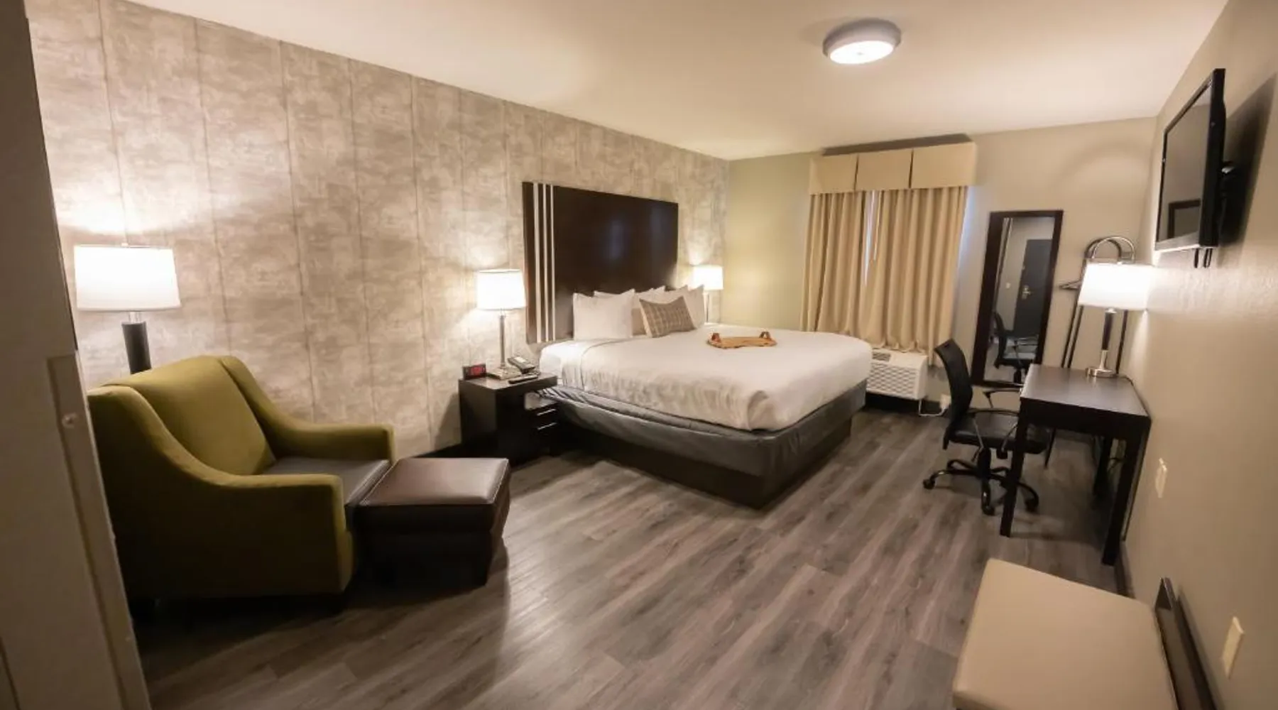 Comfortable Accommodations: Distill-Inn in Bardstown offers 3-star rooms with air-conditioning, private bathrooms, and free WiFi. Each room includes a tea and coffee maker, hairdryer, and work desk. Exceptional Facilities: Guests can enjoy a bar, coffee shop, and outdoor seating area. Additional amenities include a child-friendly buffet, express check-in and check-out, and free on-site private parking. Delicious Breakfast: A continental and American buffet breakfast is served daily, featuring warm dishes, fresh pastries, pancakes, cheese, fruits, and juice. Prime Location: Located 32 mi from Louisville International Airport, the hotel is near attractions such as My Old Kentucky Home State Park (3.1 mi) and Elizabethtown City Park (27 mi). Cycling activities are available. This suite features 1 living room, 1 separate bedroom and 1 bathroom with a bath and free toiletries. The air-conditioned suite features a flat-screen TV with cable channels, a tea and coffee maker, parquet floors and heating. The unit has 2 beds.