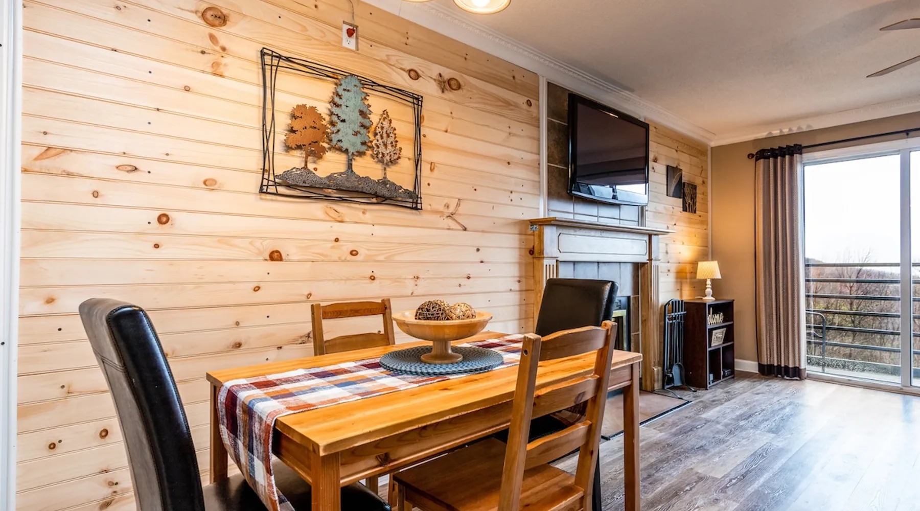 The Mountains are calling! Enjoy the breathtaking views of the beautiful Smoky Mountains during the day & the city lights at night, from the private balcony. The Summit condos are nestled high in the mountains over 3,000ft atop Ski Mountain Road for all the amazing views which are very close to popular downtown Gatlinburg strip! A perfect place to relax & enjoy your getaway in the Smokies! ✦Brand New! State of the Art! - Indoor Heated Pool & Jacuzzis✦ The space **Add my listing to your wishlist by clicking the ❤ in the upper-right corner** "This place was everything we wanted and more! Beautiful views and we saw bears almost daily!" - Stephanie *Downtown Gatlinburg → 15 Minutes *Dollywood Park → 20 Minutes *Ober Gatlinburg → 6 Minutes *Pigeon Forge → Drive: 20 Minutes *Ripley's Aquarium → 12 Minutes *Gatlinburg Pigeon Forge Airport (KGKT) → 30 Minutes Away Peaks of Happiness is a charming 1st floor cabin style condo that is your chance to get away and enjoy everything the outdoors has to offer! ✦Brand New State of the Art - Indoor Heated pool ✦Sleeps six: Queen Master Bedroom, 2 twin beds + queen sleeper sofa ✦NETFLIX login capability via SMART TV ✦2 indoor whirlpools/Hot Tubs ✦Arcade Games for Kids ✦Children’s playground ✦Fully equipped kitchen: stove, oven, full size refrigerator, microwave, coffee maker, toaster, blender, dishes, pots and pans ✦SMART Flat screen TV in living room and both bedrooms ✦Cozy wood burning fireplace ✦Cable TV with free wifi ✦Linens and starter amenities provided ✦Central air conditioning and heating ✦Large outdoor pool ✦Coin operated laundry in the main building ✦Picnic area w/ BBQ grills Please no pets / no smoking "Overall amazing experience! It Was my first time using airbnb and Jake as a host has really set the bar high for future stays" - Shane ☎ Don't see the dates you're looking for or they're booked? Please refer to our other place in the exact same resort ➛ https://www.airbnb.com/rooms/52934213