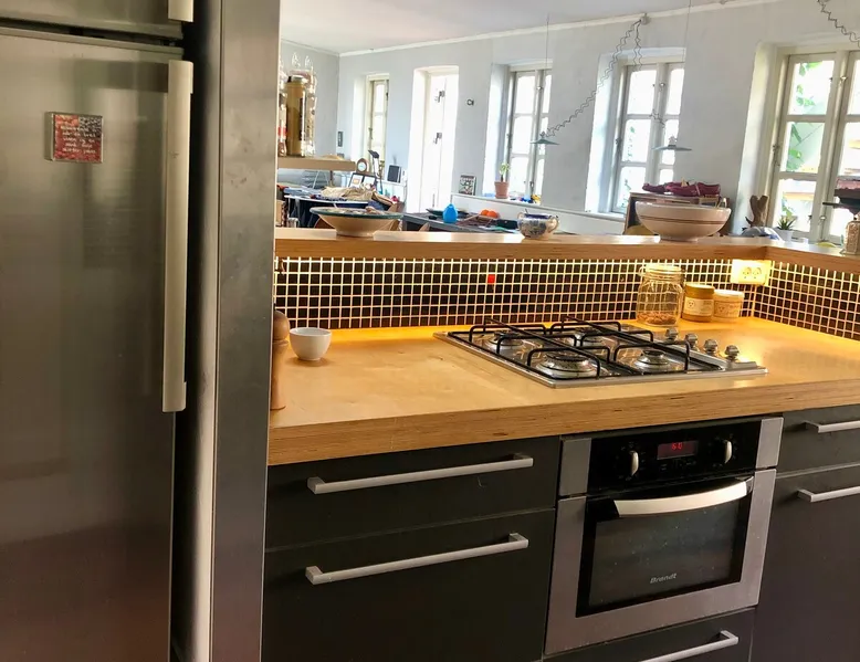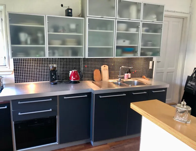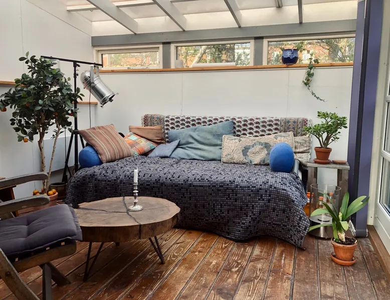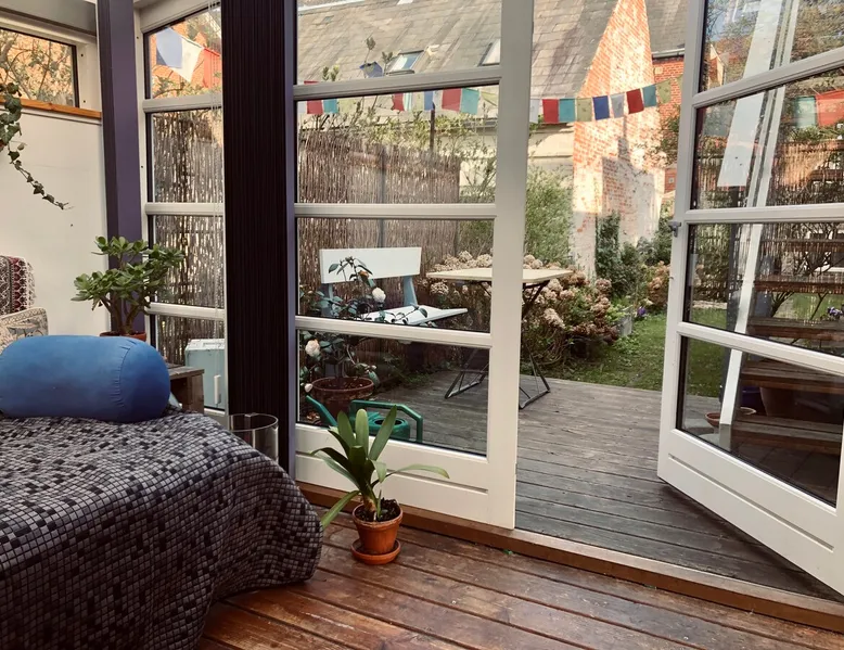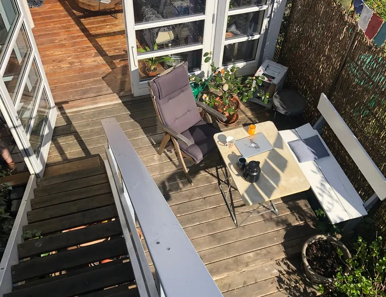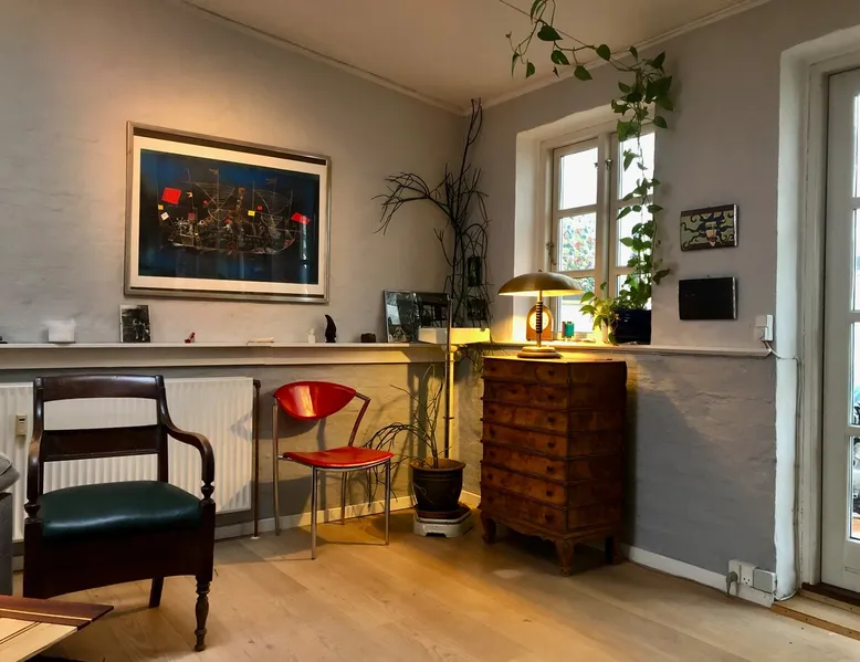 Unique apartment with 90 sqm, a former plumbing workshop, with your own terrace and roof terrace i closed backyards garden. Very close to the pedestrian streets with cafe life and shops. Very quiet! I welcome you in my own private home! The space The apartment is best suited for the couple or single person. A third person can sleep in the garden room. But access to bath/toilet with bathtub is only through bedroom. Bed is 140 x 220 cm. Large spacious living room/kitchen of 60 sqm. From the bright garden room, which can possibly be used as guest room, there is access to your own terrace and roof terrace as well as a shared garden! All in all you have about 90 sqm, plus garden room. Guest access You´l have the whole apartment with washing machine in the basement. Terrace and roof terrace. Other things to note There is free parking about 900 m from the address.