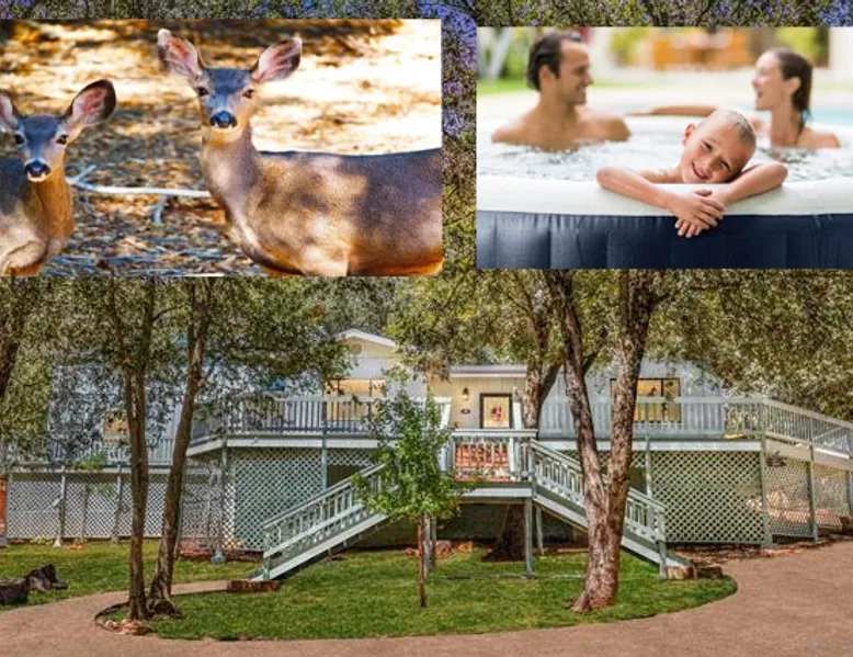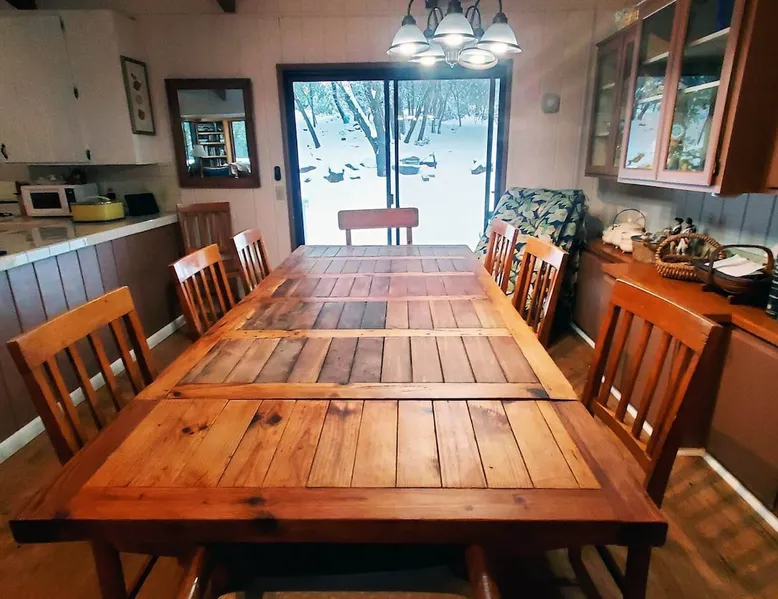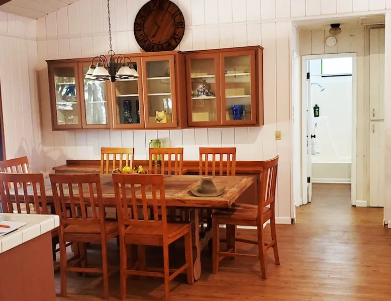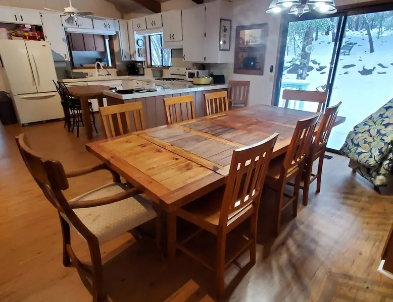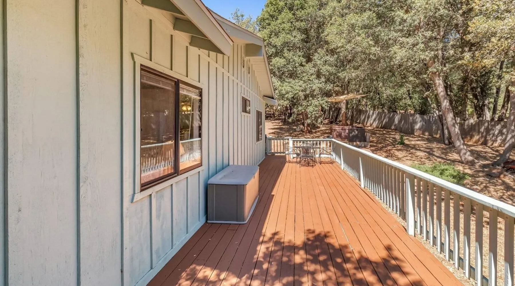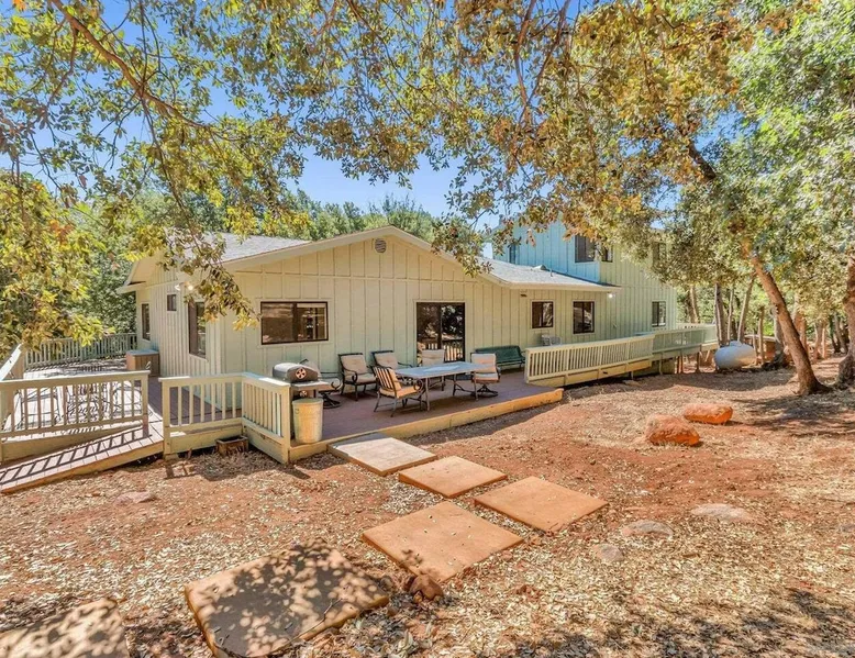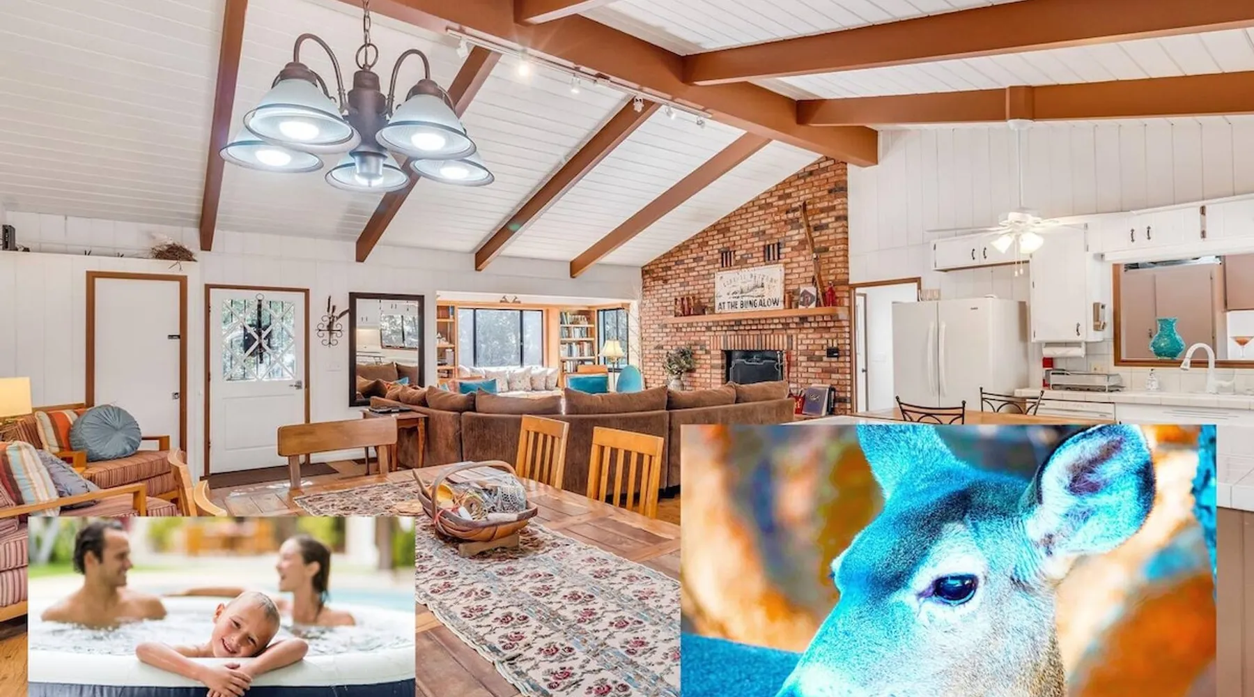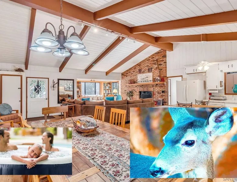 Home nestled in the woods with a spa and wrap-around deck! We closed off 1/2 the home, which no one lives in and are offering you the rest of the house! Peaceful surroundings with deer, turkey, & songbirds. It is very close to town & William Heiss Park. Large fireplace & living room tastefully remodelled in 2021. Kids will love the swing set & large yard & trails to explore! Please take a look at our other listing for full house. You will fall in love with this special house! The space Looking for the perfect getaway? Look no further than Julian Cabins! Nestled in the heart of the picturesque Julian countryside, our cabins offer the perfect blend of rustic charm and modern convenience. Each of our cabins is expertly crafted from the finest materials, featuring luxurious amenities such as plush bedding, fully-equipped kitchens, and stunning views of the surrounding wilderness. Whether you're looking for a romantic retreat or a family-friendly escape, our cabins provide the ideal setting for your next vacation. And with a wide range of activities available just steps from your door, there's never a shortage of things to do. From hiking and biking to fishing and horseback riding, our cabins offer something for everyone. So why wait? Book your stay at Julian Cabins today and experience the ultimate in relaxation and rejuvenation. Our friendly staff (me!) is standing by to help you plan your perfect getaway, so contact us today to reserve your spot in paradise! This 2-bedroom, 2-bath home features a full kitchen. A vast living room and a cozy nook area with games and books galore. Also, a large flat screen TV is in the front room. There is a separate laundry room with a large washer and dryer. The kitchen is large and open. While in the kitchen, you can talk to everyone in the front room by the massive fireplace. It has everything that you need to prepare your gourmet dishes! Pots, pans, silverware, cups, utensils, dishwasher, microwave, oven and stove. Large Refrigerator with an icemaker too. There is a window that looks out to the jungle gym and fountain. You can see the deer as they frequent the yard. The media room also has a large couch and a 70" new TV that has YouTube TV and Amazon Prime for your enjoyment. The front room is vast and has a massive, beautiful brick fireplace. It also has a large, super-L-shaped, comfortable couch. The game area features a variety of kids' toys and games. There are also books and a record player with a nice selection of kids' and adult records. The wraparound deck is just amazing. All around the property, there is something to see and enjoy. The outside area is very private and quiet. There are many places to sit and enjoy the quiet, with the birds to serenade you! There is a jungle gym for small kids and a pond with running water, which deer, turkeys, foxes, and birds love to visit. There are many trees and sticks for the kids to enjoy! The location is home to a variety of wildlife, including deer, wild turkeys, blue jays, falcons, hawks, woodpeckers, roadrunners, hummingbirds, and many other species. Length of Stay: We gladly welcome longer stays. Please feel free to send an inquiry! In front of the house, we have a horseshoe pit that is a lot of fun. There is a huge driveway, and the garage is not accessible. This large home has 2 bedrooms. All beds are less than a year old Bedroom one has a queen-size bed with plush bedding. The window looks out to the smaller water feature, which is frequented by deer and turkey. It has a large closet and a sitting chair too. Bedroom two features two super-comfortable queen-size beds in a spacious room. The bedroom has a large closet and sitting chairs. The room is very bright and cheerful with a view of the oaks and wildlife. NOTE (Additional Fee): This upstairs bedroom is not included with this listing. You are renting only the downstairs area. If you use this area, there is a $225 minimum extra fee or the price of renting the entire home on our other listing. The additional nightly fee is $100 per night if you disturb this area. Bedroom Three is located upstairs and offers fantastic views of the forest and surrounding wildlife. It is like a lookout looking out over the trees. Two super plush queen-size beds and a separate bathroom and shower. There is also a walk-in closet and a sitting chair. Would you be interested in renting the whole house? The additional downstairs area also features a large media room. It also has a clawfoot tub. The bathroom screams "serenity now"! If so just ask. Pet fee is $55 per pet Guest access You will get exclusive use of the house except for 1/2 the house that is locked and no one else will be ever using. So no part of the house is shared and you have exclusive of the house and the yard. We just blocked access to the upstairs to keep the cleaning fees lower saving smaller groups money on their stay. If you want to rent the entire 2500 foot home for additional guests just ask. We will give you a quote. You will have access to 2 bedrooms with 3 queen beds and a large great room with a Fire TV and large fireplace. Also a full bathroom and large open full kitchen. Other things to note A wheelchair ramp is available if needed. Also, an Alexa that answers to the word "Echo" to play music, tell you the news, and much more. If you use the upstairs, an additional minimum fee of $250 applies for renting the entire house or $100 per night. If additional people are invited who were not initially booked, a $30 per-day fee applies per added guest, regardless of whether they stay overnight or not. If there are more than 5 people, see above. The pet fee of $55 applies to each pet, up to a maximum of three pets. You must clean up after your pet, inside and out. Pets are not allowed on the beds or furniture. If hair or dirt is found on the bedspreads or furniture, an additional cleaning fee will be charged. There is a fenced pet area in the yard if needed. You must not smoke inside; otherwise, an ad