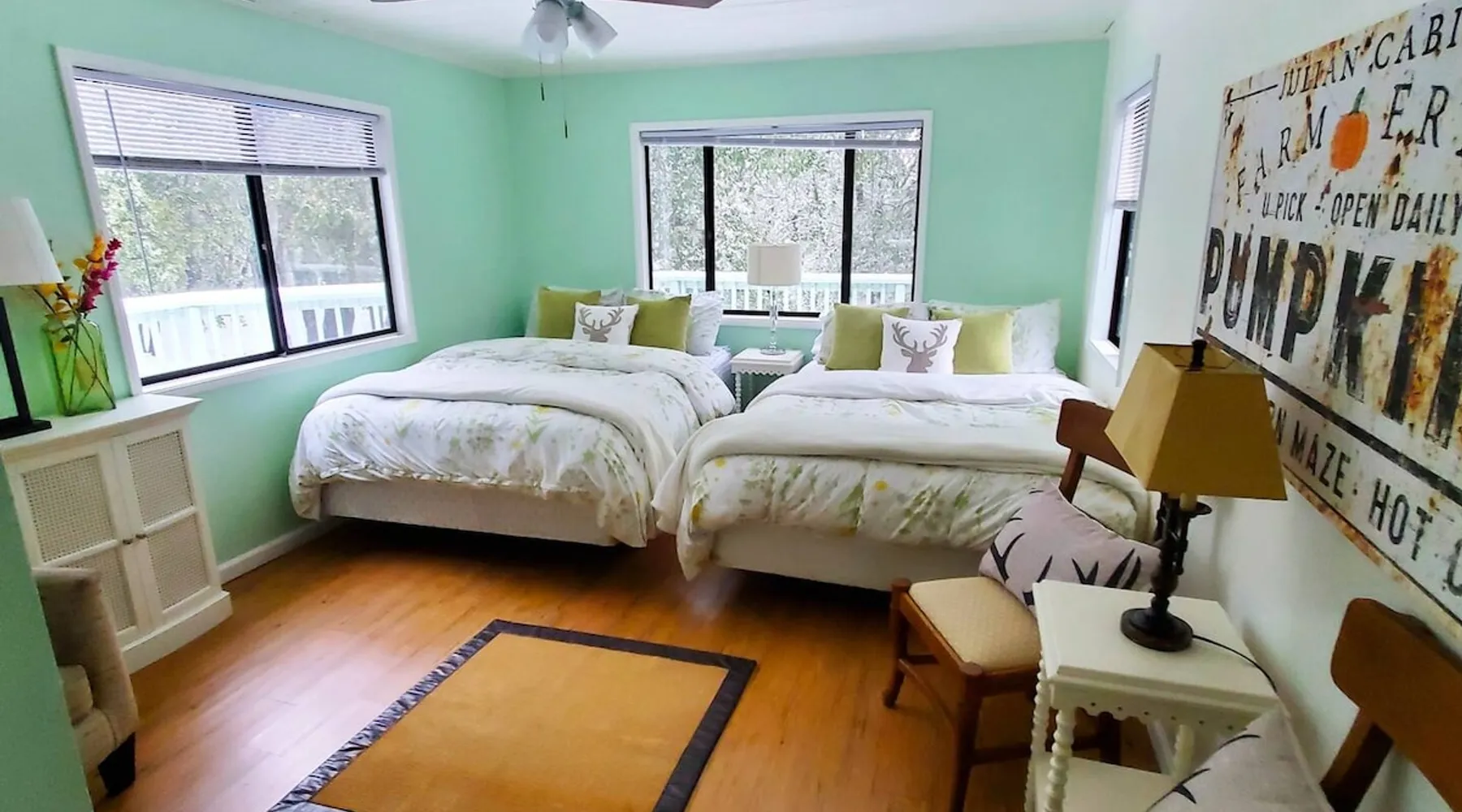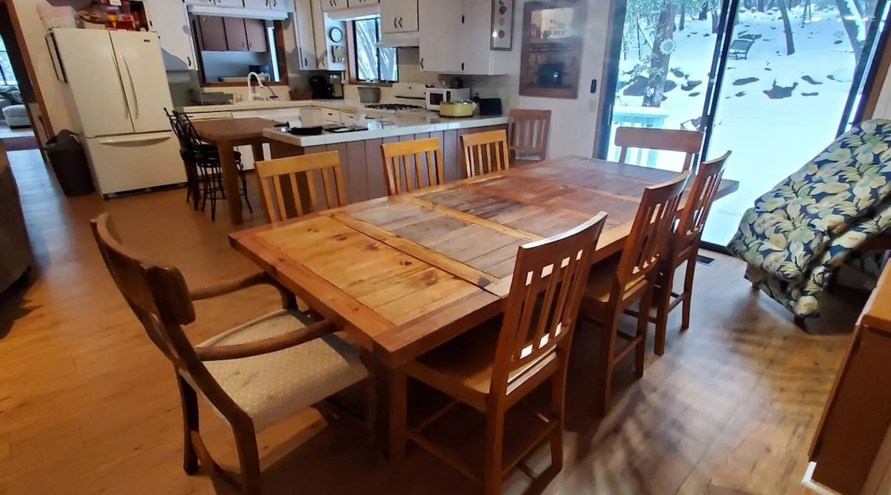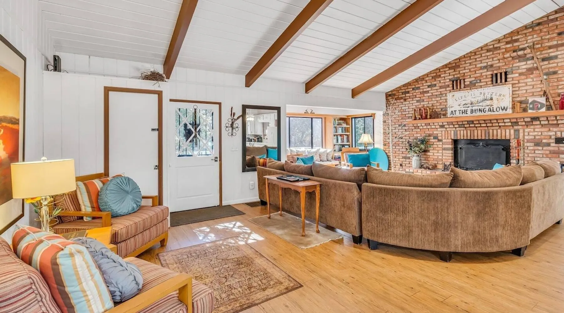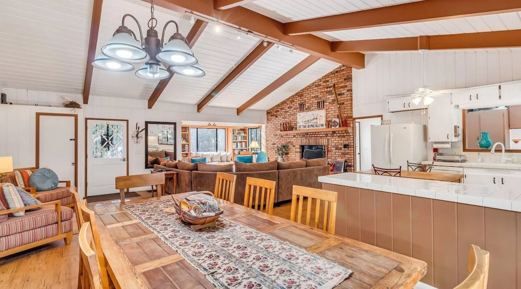 Home nestled in the woods with a spa and wrap-around deck! We closed off 1/2 the home, which no one lives in and are offering you the rest of the house! Peaceful surroundings with deer, turkey, & songbirds. It is very close to town & William Heiss Park. Large fireplace & living room tastefully remodelled in 2021. Kids will love the swing set & large yard & trails to explore! Please take a look at our other listing for full house. You will fall in love with this special house! The space Looking for the perfect getaway? Look no further than Julian Cabins! Nestled in the heart of the picturesque Julian countryside, our cabins offer the perfect blend of rustic charm and modern convenience. Each of our cabins is expertly crafted from the finest materials, featuring luxurious amenities such as plush bedding, fully-equipped kitchens, and stunning views of the surrounding wilderness. Whether you're looking for a romantic retreat or a family-friendly escape, our cabins provide the ideal setting for your next vacation. And with a wide range of activities available just steps from your door, there's never a shortage of things to do. From hiking and biking to fishing and horseback riding, our cabins offer something for everyone. So why wait? Book your stay at Julian Cabins today and experience the ultimate in relaxation and rejuvenation. Our friendly staff (me!) is standing by to help you plan your perfect getaway, so contact us today to reserve your spot in paradise! This 2-bedroom, 2-bath home features a full kitchen. A vast living room and a cozy nook area with games and books galore. Also, a large flat screen TV is in the front room. There is a separate laundry room with a large washer and dryer. The kitchen is large and open. While in the kitchen, you can talk to everyone in the front room by the massive fireplace. It has everything that you need to prepare your gourmet dishes! Pots, pans, silverware, cups, utensils, dishwasher, microwave, oven and stove. Large Refrigerator with an icemaker too. There is a window that looks out to the jungle gym and fountain. You can see the deer as they frequent the yard. The media room also has a large couch and a 70" new TV that has YouTube TV and Amazon Prime for your enjoyment. The front room is vast and has a massive, beautiful brick fireplace. It also has a large, super-L-shaped, comfortable couch. The game area features a variety of kids' toys and games. There are also books and a record player with a nice selection of kids' and adult records. The wraparound deck is just amazing. All around the property, there is something to see and enjoy. The outside area is very private and quiet. There are many places to sit and enjoy the quiet, with the birds to serenade you! There is a jungle gym for small kids and a pond with running water, which deer, turkeys, foxes, and birds love to visit. There are many trees and sticks for the kids to enjoy! The location is home to a variety of wildlife, including deer, wild turkeys, blue jays, falcons, hawks, woodpeckers, roadrunners, hummingbirds, and many other species. Length of Stay: We gladly welcome longer stays. Please feel free to send an inquiry! In front of the house, we have a horseshoe pit that is a lot of fun. There is a huge driveway, and the garage is not accessible. This large home has 2 bedrooms. All beds are less than a year old Bedroom one has a queen-size bed with plush bedding. The window looks out to the smaller water feature, which is frequented by deer and turkey. It has a large closet and a sitting chair too. Bedroom two features two super-comfortable queen-size beds in a spacious room. The bedroom has a large closet and sitting chairs. The room is very bright and cheerful with a view of the oaks and wildlife. NOTE (Additional Fee): This upstairs bedroom is not included with this listing. You are renting only the downstairs area. If you use this area, there is a $225 minimum extra fee or the price of renting the entire home on our other listing. The additional nightly fee is $100 per night if you disturb this area. Bedroom Three is located upstairs and offers fantastic views of the forest and surrounding wildlife. It is like a lookout looking out over the trees. Two super plush queen-size beds and a separate bathroom and shower. There is also a walk-in closet and a sitting chair. Would you be interested in renting the whole house? The additional downstairs area also features a large media room. It also has a clawfoot tub. The bathroom screams "serenity now"! If so just ask. Pet fee is $55 per pet Guest access You will get exclusive use of the house except for 1/2 the house that is locked and no one else will be ever using. So no part of the house is shared and you have exclusive of the house and the yard. We just blocked access to the upstairs to keep the cleaning fees lower saving smaller groups money on their stay. If you want to rent the entire 2500 foot home for additional guests just ask. We will give you a quote. You will have access to 2 bedrooms with 3 queen beds and a large great room with a Fire TV and large fireplace. Also a full bathroom and large open full kitchen. Other things to note A wheelchair ramp is available if needed. Also, an Alexa that answers to the word "Echo" to play music, tell you the news, and much more. If you use the upstairs, an additional minimum fee of $250 applies for renting the entire house or $100 per night. If additional people are invited who were not initially booked, a $30 per-day fee applies per added guest, regardless of whether they stay overnight or not. If there are more than 5 people, see above. The pet fee of $55 applies to each pet, up to a maximum of three pets. You must clean up after your pet, inside and out. Pets are not allowed on the beds or furniture. If hair or dirt is found on the bedspreads or furniture, an additional cleaning fee will be charged. There is a fenced pet area in the yard if needed. You must not smoke inside; otherwise, an ad