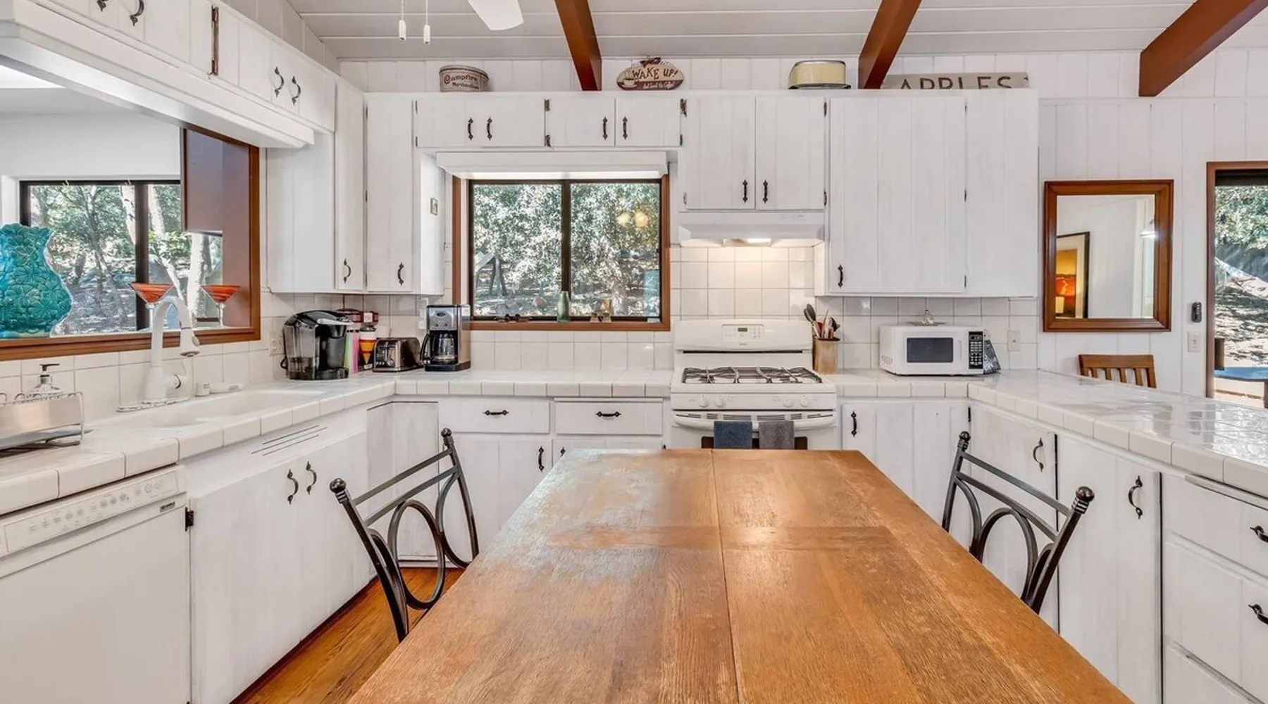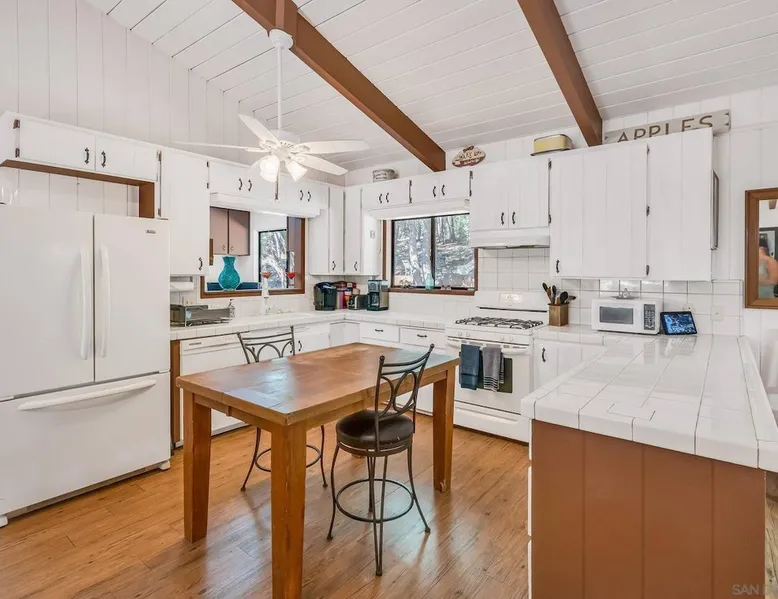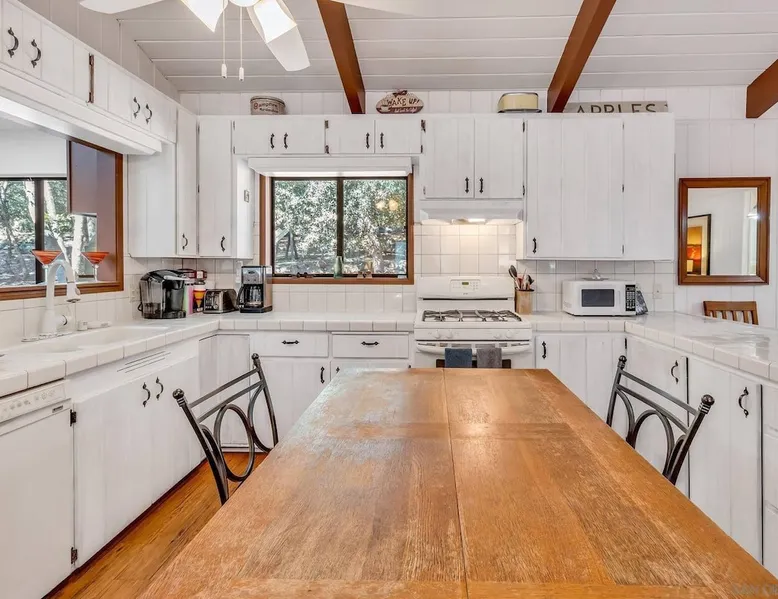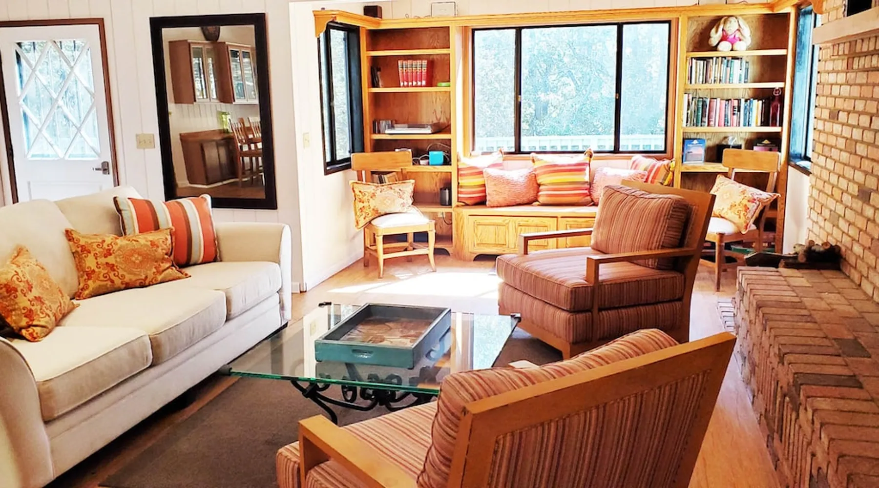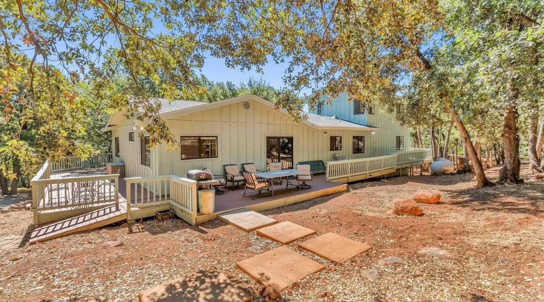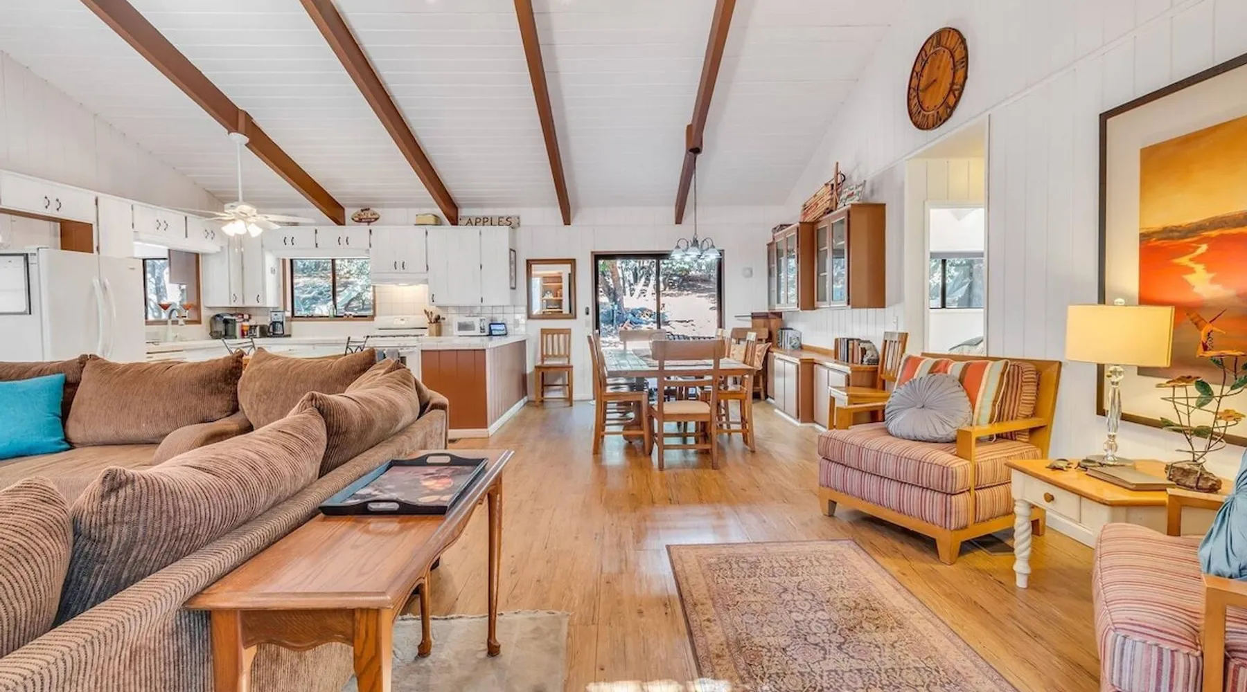 Home nestled in the woods with a spa and wrap-around deck! We closed off 1/2 the home, which no one lives in and are offering you the rest of the house! Peaceful surroundings with deer, turkey, & songbirds. It is very close to town & William Heiss Park. Large fireplace & living room tastefully remodelled in 2021. Kids will love the swing set & large yard & trails to explore! Please take a look at our other listing for full house. You will fall in love with this special house! The space Looking for the perfect getaway? Look no further than Julian Cabins! Nestled in the heart of the picturesque Julian countryside, our cabins offer the perfect blend of rustic charm and modern convenience. Each of our cabins is expertly crafted from the finest materials, featuring luxurious amenities such as plush bedding, fully-equipped kitchens, and stunning views of the surrounding wilderness. Whether you're looking for a romantic retreat or a family-friendly escape, our cabins provide the ideal setting for your next vacation. And with a wide range of activities available just steps from your door, there's never a shortage of things to do. From hiking and biking to fishing and horseback riding, our cabins offer something for everyone. So why wait? Book your stay at Julian Cabins today and experience the ultimate in relaxation and rejuvenation. Our friendly staff (me!) is standing by to help you plan your perfect getaway, so contact us today to reserve your spot in paradise! This 2-bedroom, 2-bath home features a full kitchen. A vast living room and a cozy nook area with games and books galore. Also, a large flat screen TV is in the front room. There is a separate laundry room with a large washer and dryer. The kitchen is large and open. While in the kitchen, you can talk to everyone in the front room by the massive fireplace. It has everything that you need to prepare your gourmet dishes! Pots, pans, silverware, cups, utensils, dishwasher, microwave, oven and stove. Large Refrigerator with an icemaker too. There is a window that looks out to the jungle gym and fountain. You can see the deer as they frequent the yard. The media room also has a large couch and a 70" new TV that has YouTube TV and Amazon Prime for your enjoyment. The front room is vast and has a massive, beautiful brick fireplace. It also has a large, super-L-shaped, comfortable couch. The game area features a variety of kids' toys and games. There are also books and a record player with a nice selection of kids' and adult records. The wraparound deck is just amazing. All around the property, there is something to see and enjoy. The outside area is very private and quiet. There are many places to sit and enjoy the quiet, with the birds to serenade you! There is a jungle gym for small kids and a pond with running water, which deer, turkeys, foxes, and birds love to visit. There are many trees and sticks for the kids to enjoy! The location is home to a variety of wildlife, including deer, wild turkeys, blue jays, falcons, hawks, woodpeckers, roadrunners, hummingbirds, and many other species. Length of Stay: We gladly welcome longer stays. Please feel free to send an inquiry! In front of the house, we have a horseshoe pit that is a lot of fun. There is a huge driveway, and the garage is not accessible. This large home has 2 bedrooms. All beds are less than a year old Bedroom one has a queen-size bed with plush bedding. The window looks out to the smaller water feature, which is frequented by deer and turkey. It has a large closet and a sitting chair too. Bedroom two features two super-comfortable queen-size beds in a spacious room. The bedroom has a large closet and sitting chairs. The room is very bright and cheerful with a view of the oaks and wildlife. NOTE (Additional Fee): This upstairs bedroom is not included with this listing. You are renting only the downstairs area. If you use this area, there is a $225 minimum extra fee or the price of renting the entire home on our other listing. The additional nightly fee is $100 per night if you disturb this area. Bedroom Three is located upstairs and offers fantastic views of the forest and surrounding wildlife. It is like a lookout looking out over the trees. Two super plush queen-size beds and a separate bathroom and shower. There is also a walk-in closet and a sitting chair. Would you be interested in renting the whole house? The additional downstairs area also features a large media room. It also has a clawfoot tub. The bathroom screams "serenity now"! If so just ask. Pet fee is $55 per pet Guest access You will get exclusive use of the house except for 1/2 the house that is locked and no one else will be ever using. So no part of the house is shared and you have exclusive of the house and the yard. We just blocked access to the upstairs to keep the cleaning fees lower saving smaller groups money on their stay. If you want to rent the entire 2500 foot home for additional guests just ask. We will give you a quote. You will have access to 2 bedrooms with 3 queen beds and a large great room with a Fire TV and large fireplace. Also a full bathroom and large open full kitchen. Other things to note A wheelchair ramp is available if needed. Also, an Alexa that answers to the word "Echo" to play music, tell you the news, and much more. If you use the upstairs, an additional minimum fee of $250 applies for renting the entire house or $100 per night. If additional people are invited who were not initially booked, a $30 per-day fee applies per added guest, regardless of whether they stay overnight or not. If there are more than 5 people, see above. The pet fee of $55 applies to each pet, up to a maximum of three pets. You must clean up after your pet, inside and out. Pets are not allowed on the beds or furniture. If hair or dirt is found on the bedspreads or furniture, an additional cleaning fee will be charged. There is a fenced pet area in the yard if needed. You must not smoke inside; otherwise, an ad