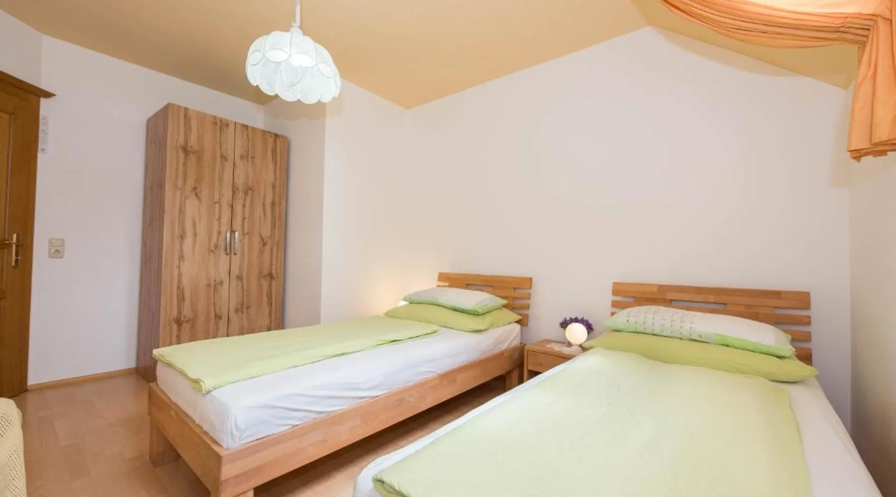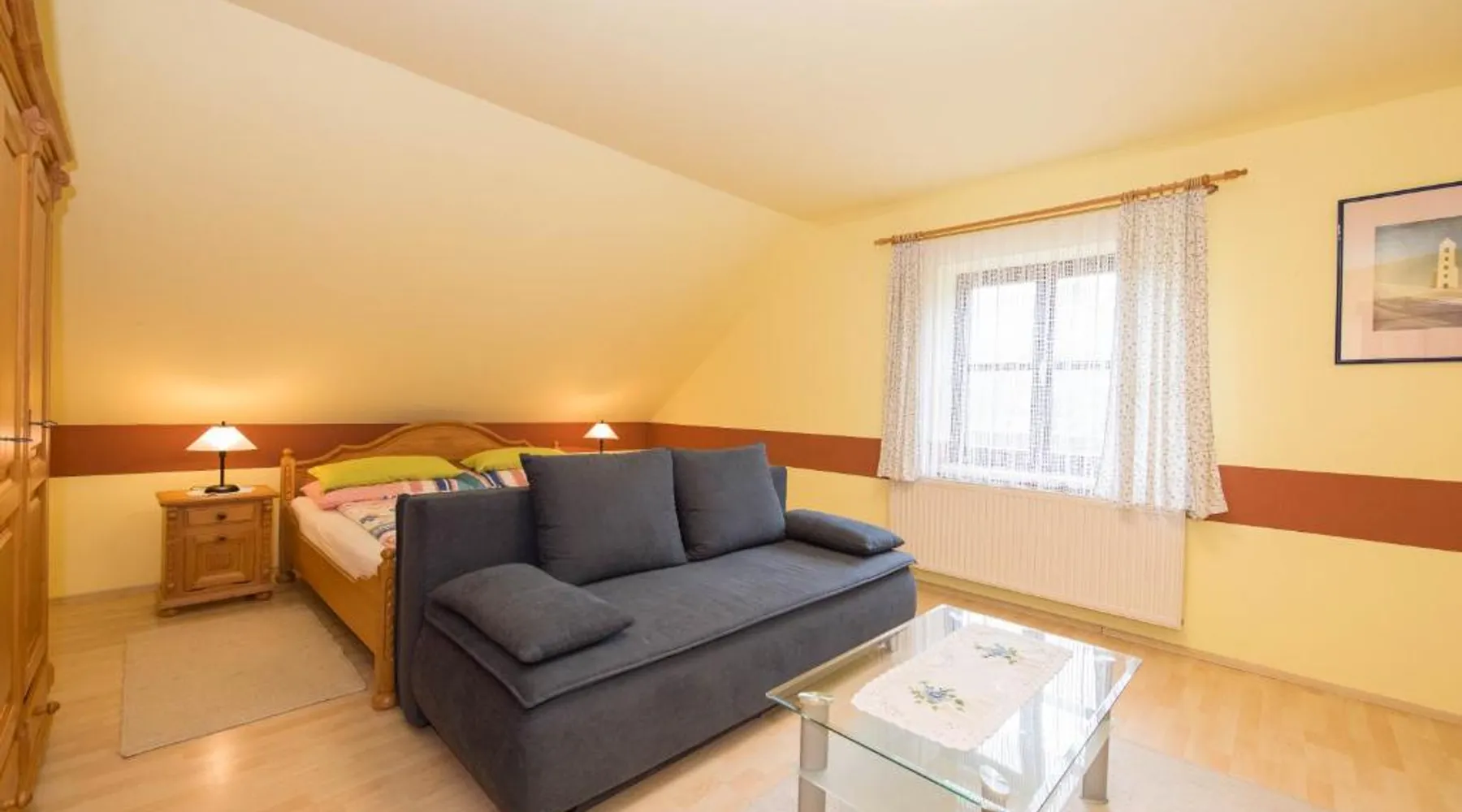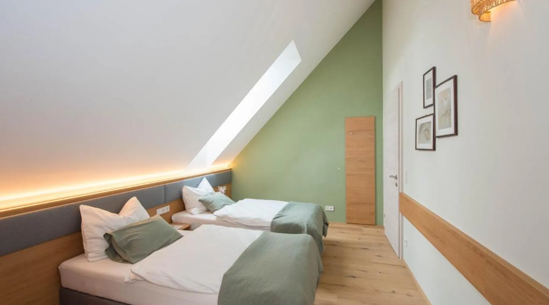 Comfortable Accommodations: Naturparkbauernhof Pöltl in Pöllau offers a family room with a private bathroom, hypoallergenic bedding, and soundproofing. Each apartment includes a sofa bed, work desk, and a seating area. Modern Amenities: Guests enjoy free WiFi, a fully equipped kitchenette, balcony with garden views, and a washing machine. Additional features include a dining area, TV, and parquet floors. Outdoor Spaces: The property features a garden and outdoor dining area with furniture. Free on-site private parking is available. Local Attractions: Schlaining Castle is 25 mi away, and Graz Airport is 35 mi from the apartment. Cycling enthusiasts can explore the surrounding area. Guest Favorites: Guests highly rate the breakfast provided by the property. Featuring a private entrance, this spacious apartment also consists of 1 living room, 2 separate bedrooms and 1 bathroom with a shower. The fully equipped kitchen features a stovetop, a refrigerator, a dishwasher and kitchenware. The apartment provides a flat-screen TV with satellite channels, a washing machine, soundproof walls, a tea and coffee maker as well as garden views. The unit offers 3 beds.