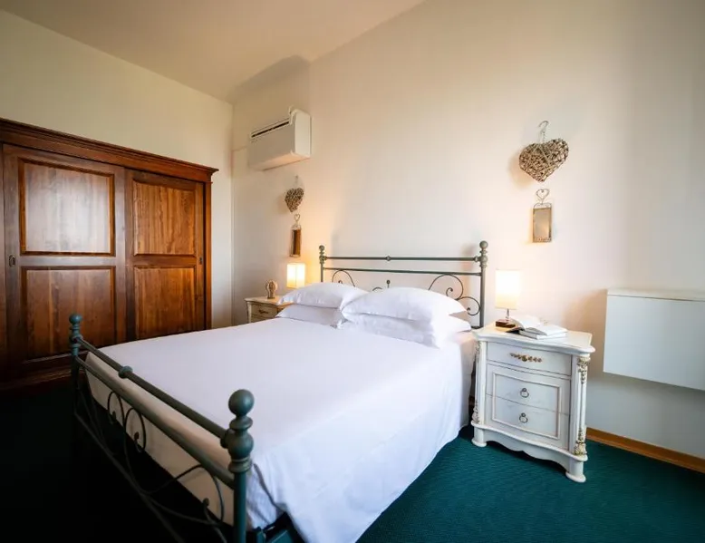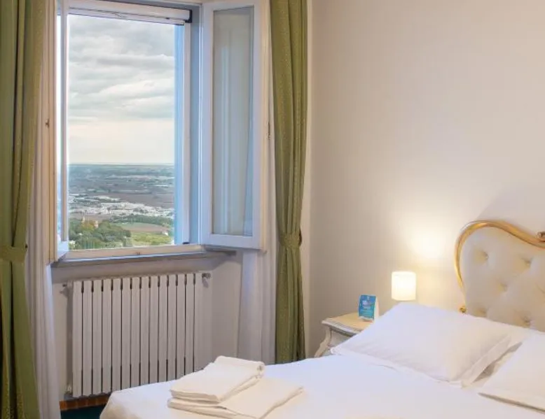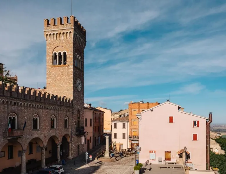 Comfortable Accommodations: Hotel Panorama in Bertinoro offers family rooms with private bathrooms, air-conditioning, and free WiFi. Each room includes a TV, wardrobe, and work desk, ensuring a pleasant stay. Exceptional Facilities: Guests can enjoy a bar and lounge, daily housekeeping service, and free off-site parking. Additional amenities include bicycle parking, bike hire, and luggage storage. Prime Location: Located 8.1 mi from Forlì Airport, the hotel is near attractions such as Cesena Fiera (6.2 mi) and Porta Fiume (6.8 mi). Guests appreciate the central location and scenic views. Offering free Wi-Fi, this spacious room includes an LCD TV, safe, and private bathroom. Some rooms overlook the main square and town hall, while others offer views of the countryside.