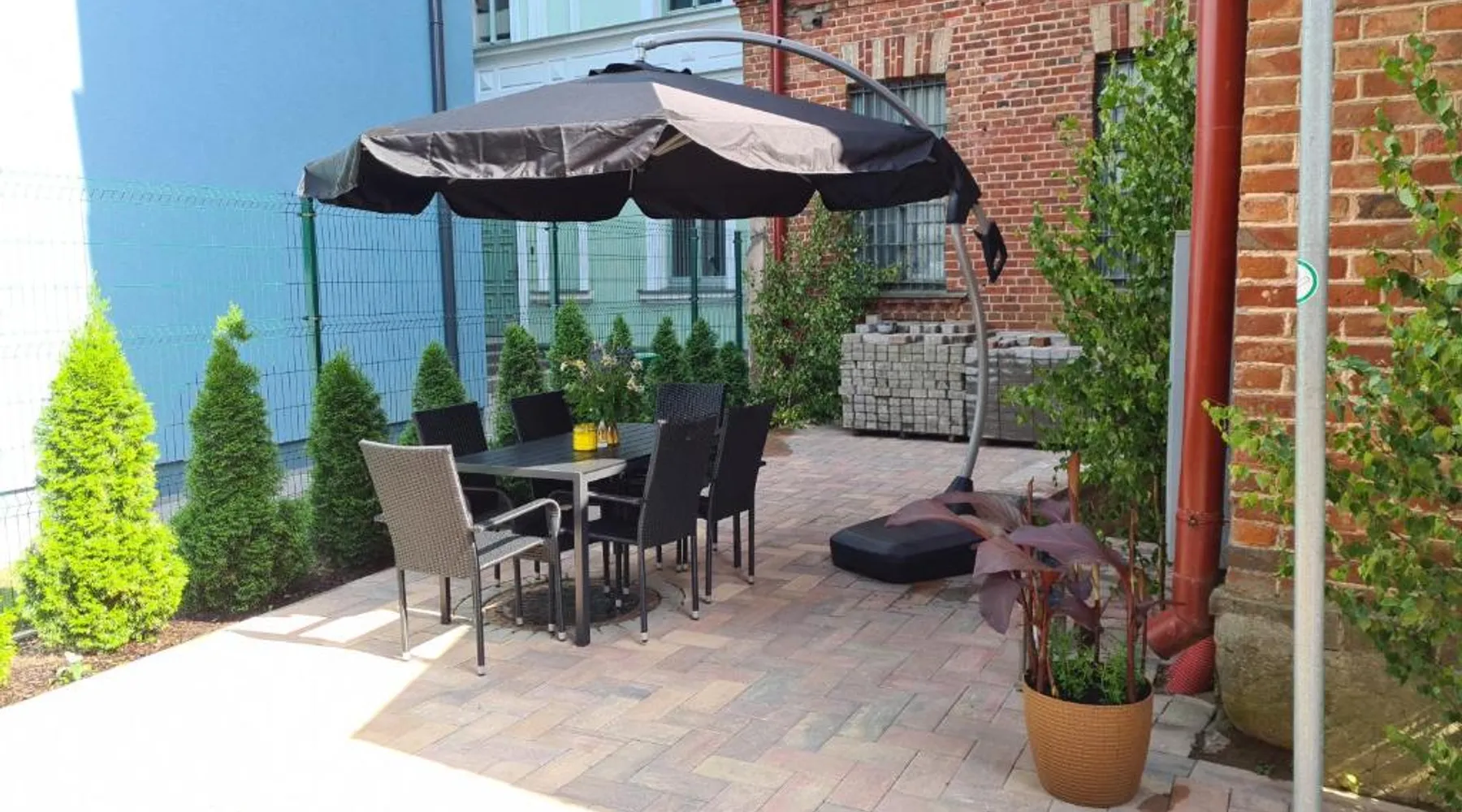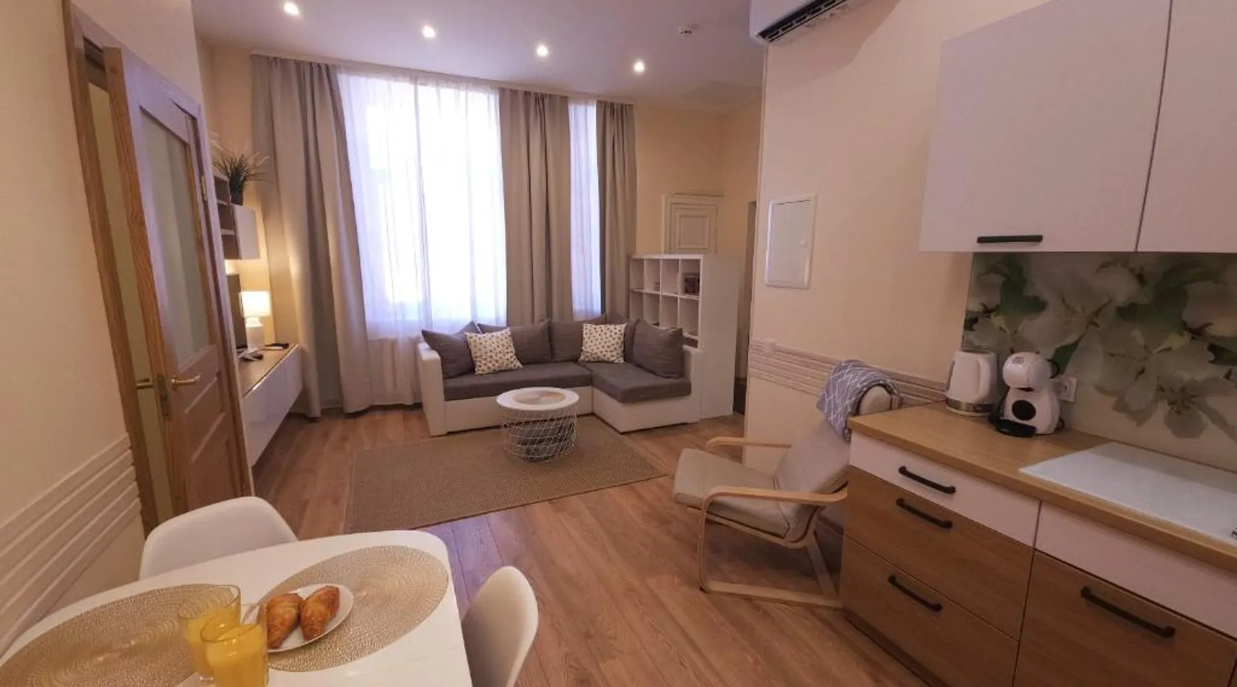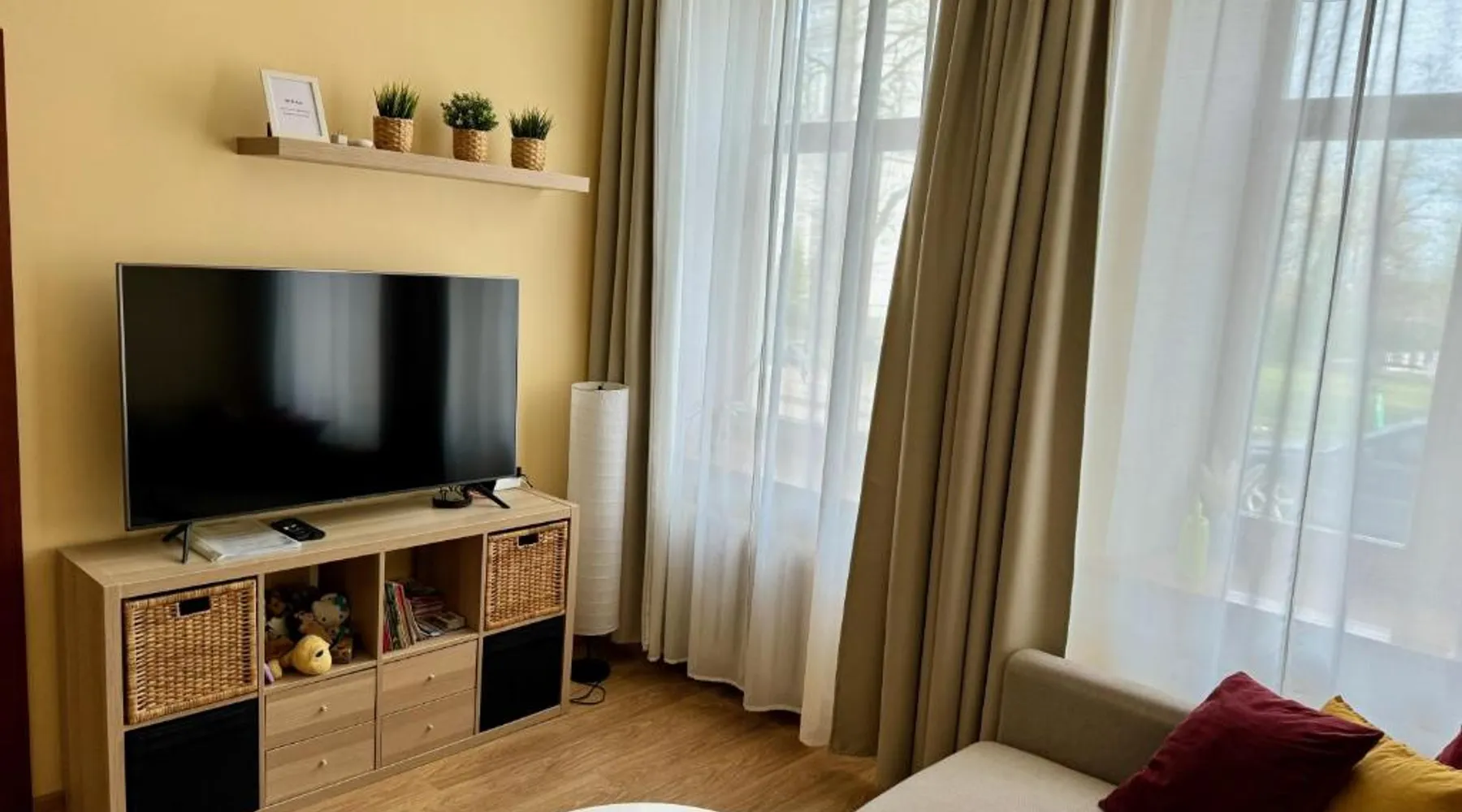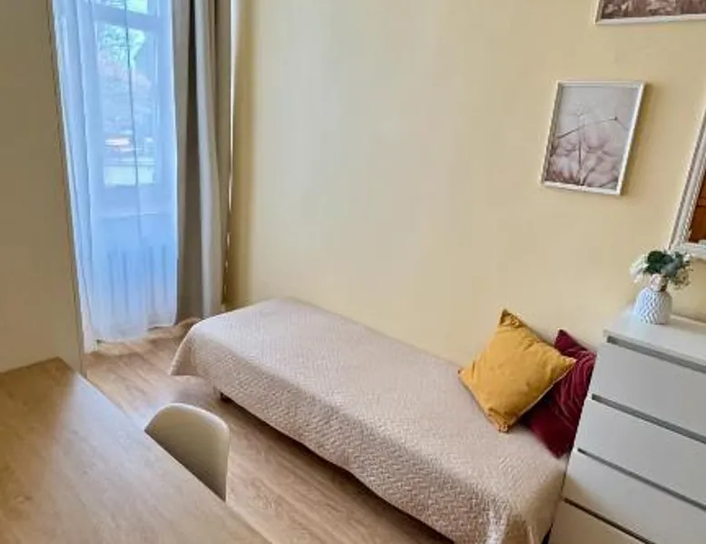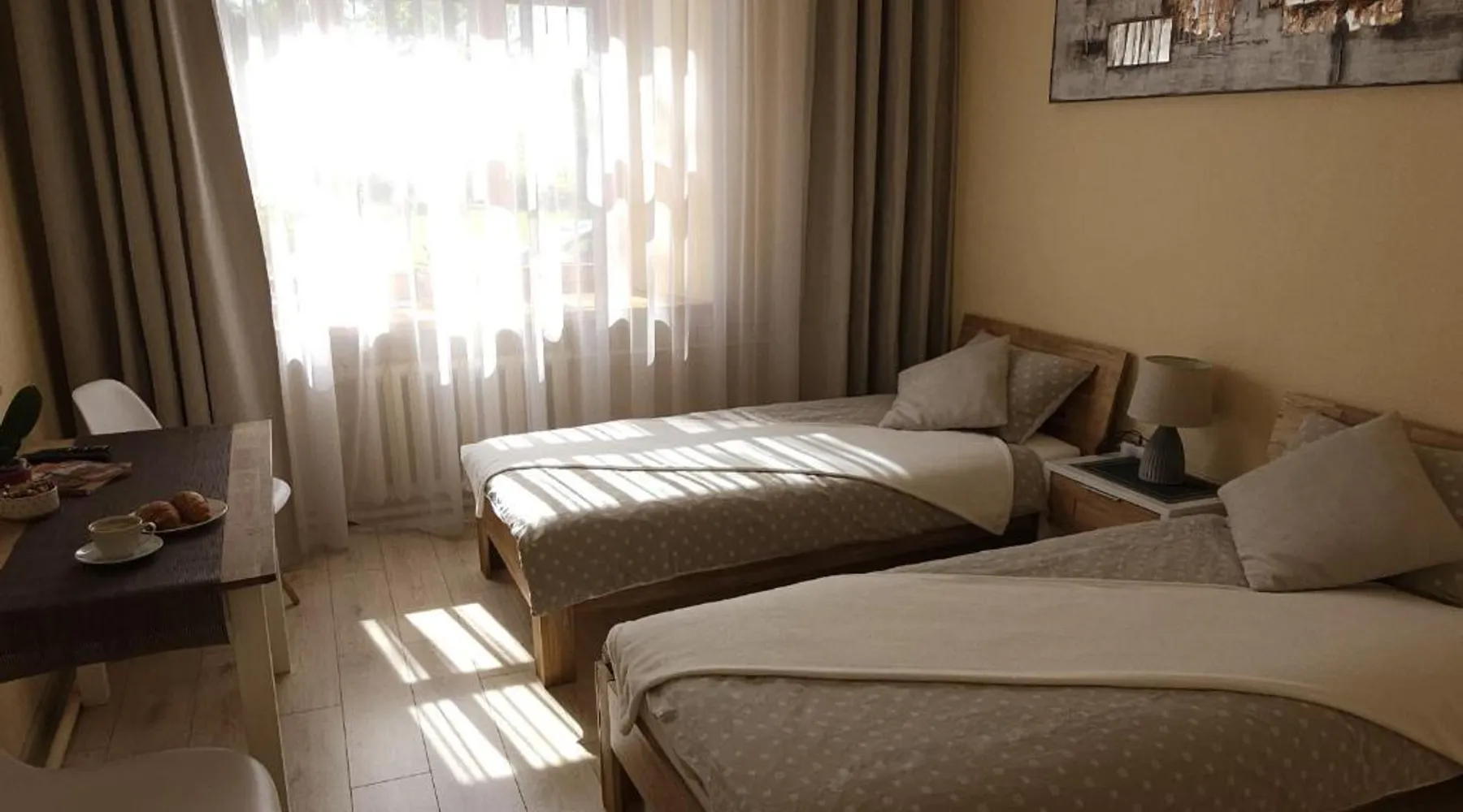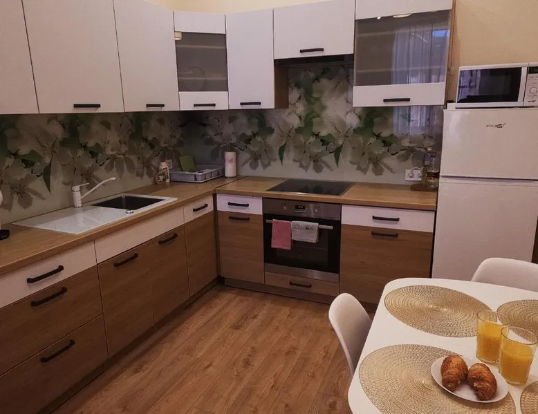 Comfortable Accommodations: Center Apartments Tukums in Tukums offers spacious apartments with private bathrooms, air-conditioning, and free WiFi. Each room includes a kitchenette, washing machine, and work desk. Outdoor Spaces: Guests can relax on the terrace or in the outdoor seating area. The property features a picnic area and free on-site private parking. Convenient Facilities: Private check-in and check-out services, a paid airport shuttle, and streaming services enhance the stay. Nearby Attractions: Riga International Airport is 36 mi away. Points of interest include Majori (27 mi), Livu Aqua Park (30 mi), and The Mežīte Castle Mound (29 mi). Guest Satisfaction: Highly rated for its host, room comfort, and cleanliness. In the well-equipped kitchen, guests will find a stovetop, a refrigerator, kitchenware and an oven. The spacious family room features air conditioning, a washing machine, a terrace with an inner courtyard view as well as a private bathroom boasting a walk-in shower. The unit has 2 beds.