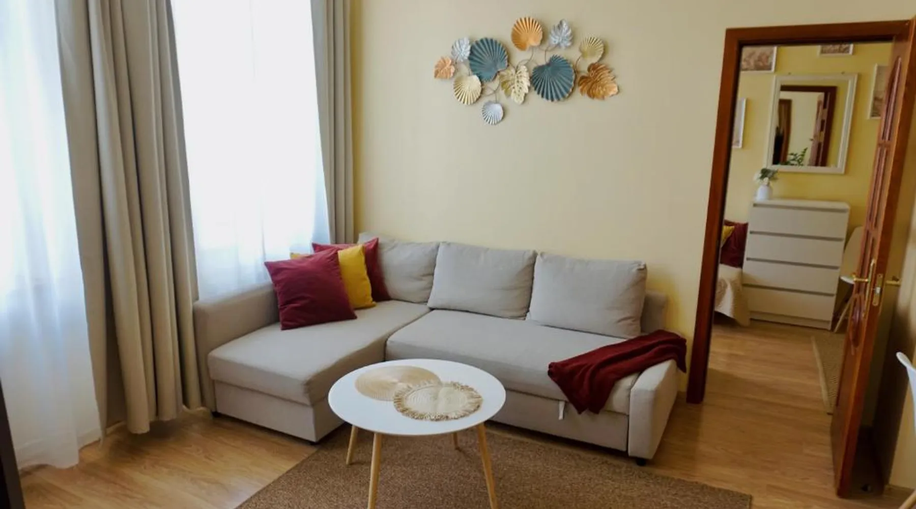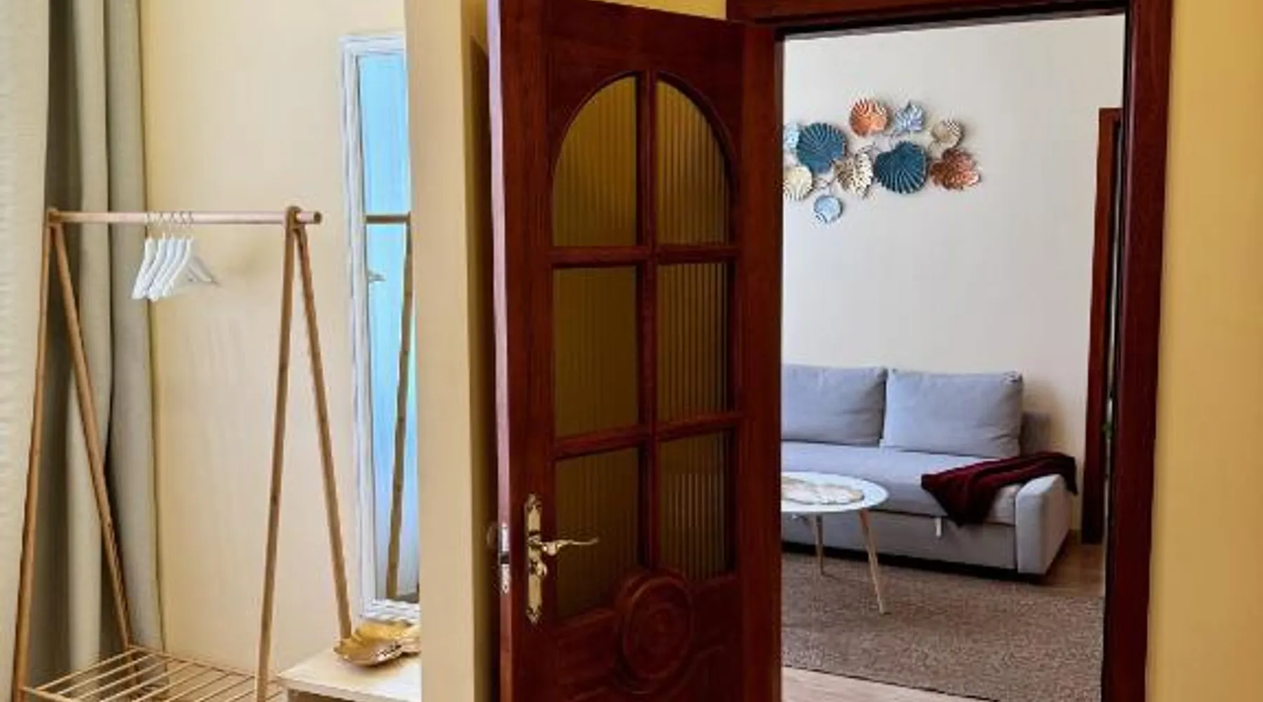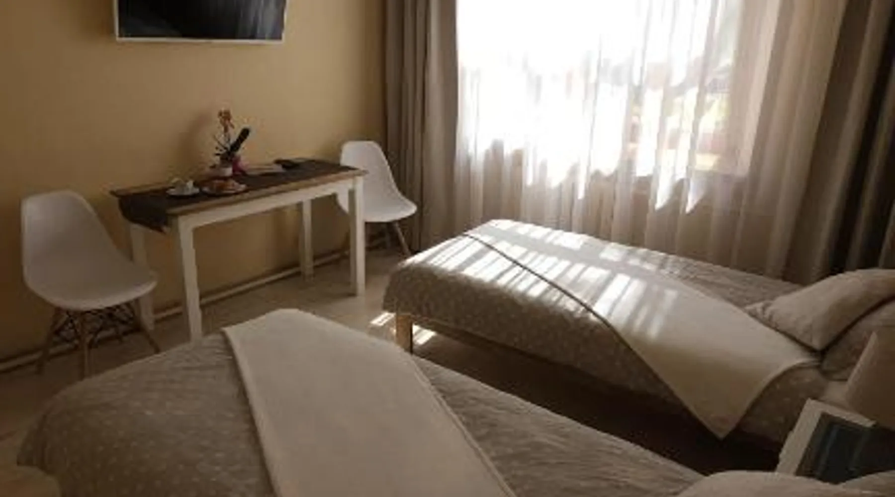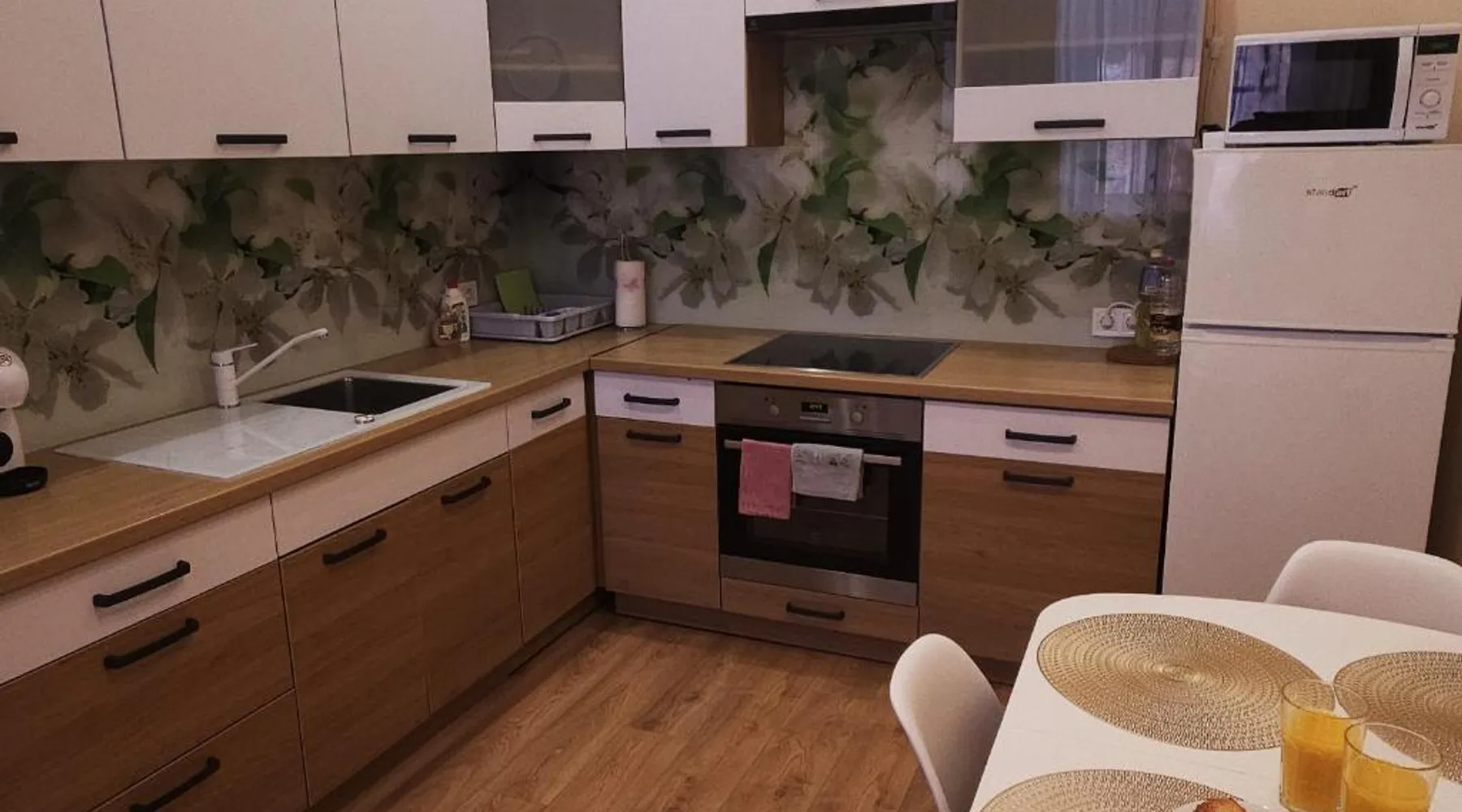 Comfortable Accommodations: Center Apartments Tukums in Tukums offers spacious apartments with private bathrooms, air-conditioning, and free WiFi. Each room includes a kitchenette, washing machine, and work desk. Outdoor Spaces: Guests can relax on the terrace or in the outdoor seating area. The property features a picnic area and free on-site private parking. Convenient Facilities: Private check-in and check-out services, a paid airport shuttle, and streaming services enhance the stay. Nearby Attractions: Riga International Airport is 36 mi away. Points of interest include Majori (27 mi), Livu Aqua Park (30 mi), and The Mežīte Castle Mound (29 mi). Guest Satisfaction: Highly rated for its host, room comfort, and cleanliness. In the well-equipped kitchen, guests will find a stovetop, a refrigerator, kitchenware and an oven. The spacious family room features air conditioning, a washing machine, a terrace with an inner courtyard view as well as a private bathroom boasting a walk-in shower. The unit has 2 beds.