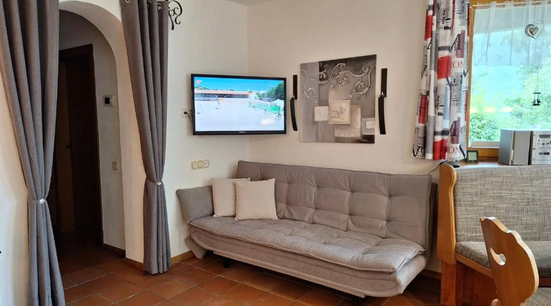 Comfortable Living Space: Appartement Sybille by NV-Appartements in Kirchberg in Tirol offers a one-bedroom apartment with a living room. The property features a terrace and free WiFi, ensuring a pleasant stay. Modern Amenities: The apartment includes a fully equipped kitchen with a coffee machine, dishwasher, and microwave. Guests can relax in the living room with a sofa bed and TV. Additional amenities include a fireplace, mountain views, and a dining table. Outdoor Spaces: An outdoor seating area provides a comfortable space to enjoy the terrace and mountain views. The property is highly rated for its excellent facilities and scenic surroundings. Local Attractions: Located 50 mi from Salzburg W. A. Mozart Airport, the apartment is near winter sports activities such as skiing. Nearby attractions include Golfclub Kitzbühel Schwarzsee (3.7 mi) and Casino Kitzbühel (5 mi). This apartment's special feature is the fireplace. This apartment consists of 1 living room, 1 separate bedroom and 1 bathroom with a shower and a hairdryer. Meals can be prepared in the well-fitted kitchen, which is equipped with a stovetop, a refrigerator, a dishwasher and kitchenware. Featuring a terrace with mountain views, this apartment also provides a coffee machine and a TV. The unit offers 2 beds.