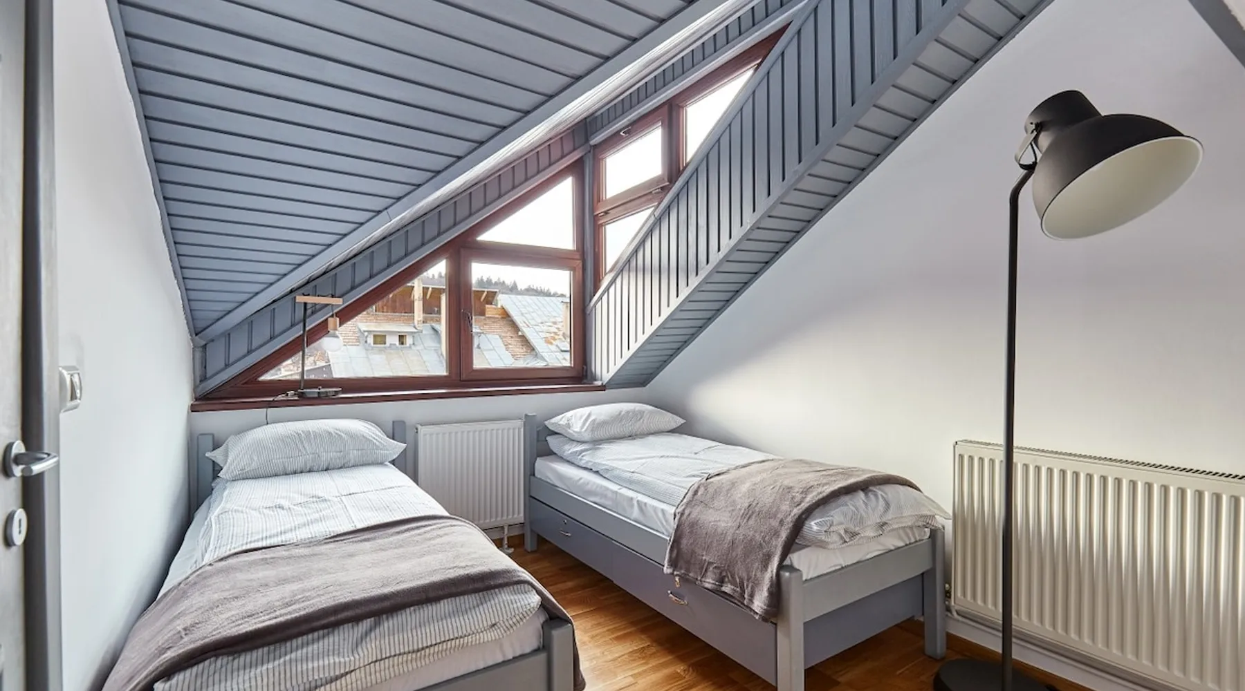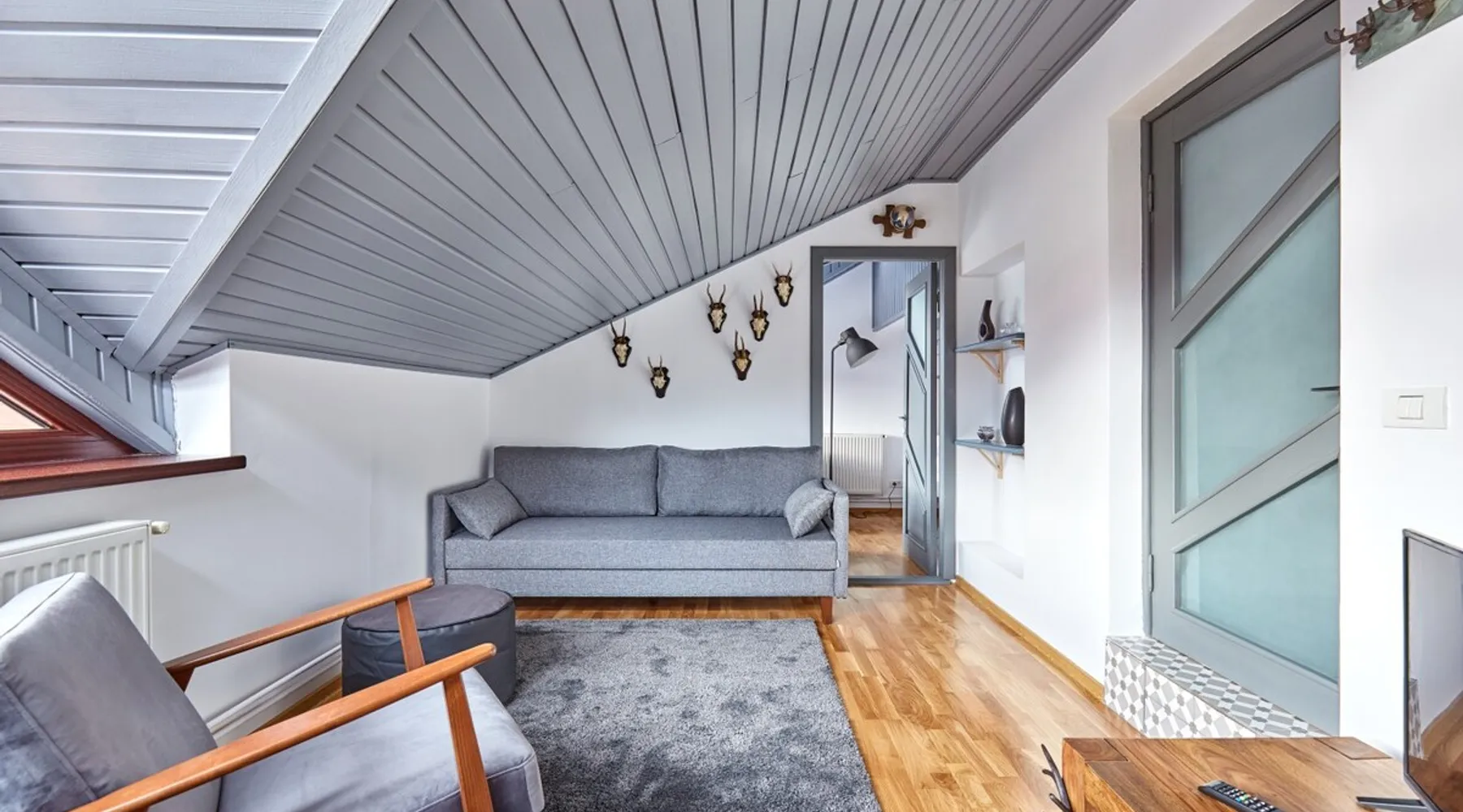 In the heart of the Carpathian Mountains, in one of Romania’s top skiing resorts, our loft brings the traveler a sense of warmth and peace. It is but 10 minutes away from the city center and the train station, and 15 minutes away from the sky slope. The wooden floors and ceilings, customary to the local architecture, give the flat a lofty feeling, submersing you into the mountain vibe.