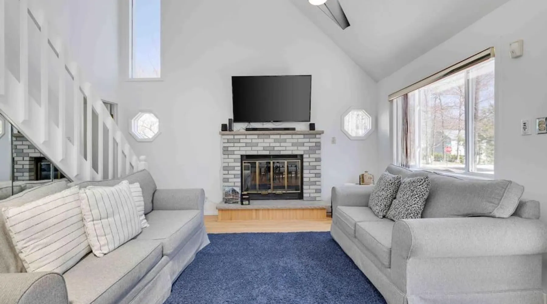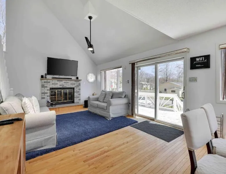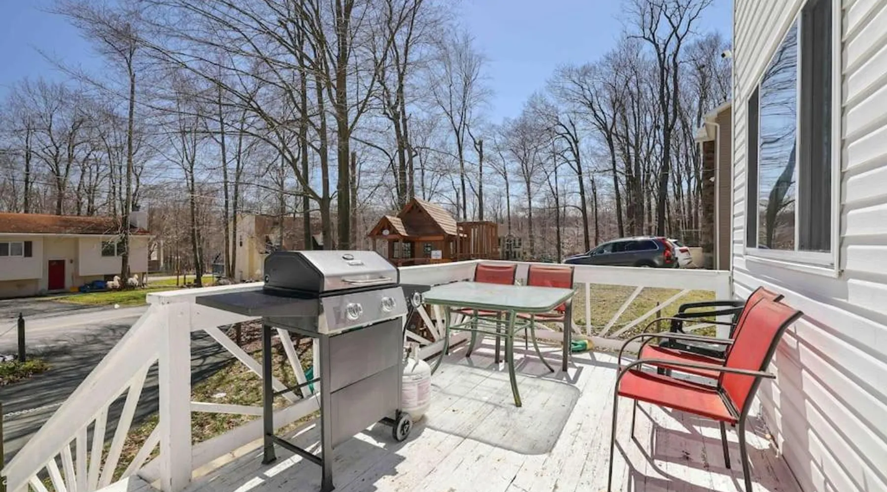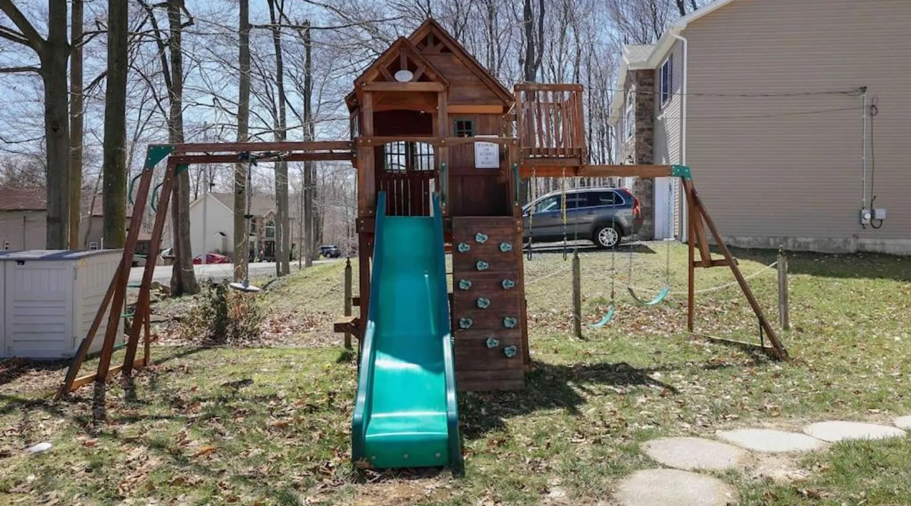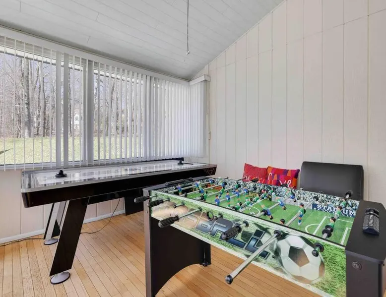 Spacious Accommodations: Cozy Poconos Mountain House in Tobyhanna offers three bedrooms and two bathrooms. The living room features a fireplace and balcony with garden and mountain views. Modern Amenities: Guests enjoy free WiFi, air-conditioning, and a fully equipped kitchen. Additional facilities include a garden, indoor and outdoor play areas, games room, and outdoor seating. Convenient Location: Located 39 mi from Wilkes-Barre/Scranton International Airport, the property is near attractions such as Kalahari Waterpark (6.2 mi) and Delaware Water Gap National Recreation Area (22 mi). Guest Satisfaction: Highly rated for room cleanliness, comfort, and attentive host. This holiday home's special feature is the fireplace. Boasting a private entrance, this air-conditioned holiday home includes 2 living rooms, 3 separate bedrooms and 2 bathrooms with a bath and a hairdryer. In the fully equipped kitchen, guests will find a stovetop, a refrigerator, a dishwasher and kitchenware. The spacious holiday home offers a washing machine, soundproof walls, a tea and coffee maker, a flat-screen TV with streaming services, as well as garden views. The unit has 6 beds and 1 futon.