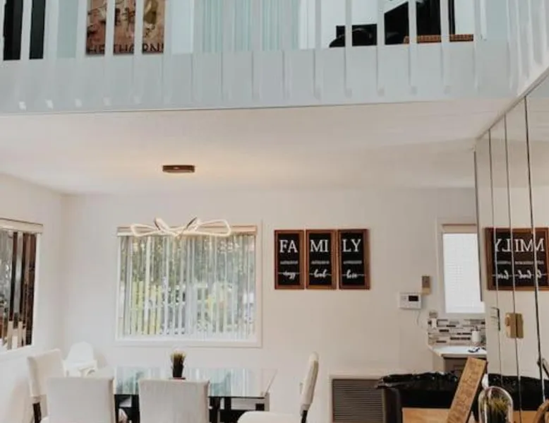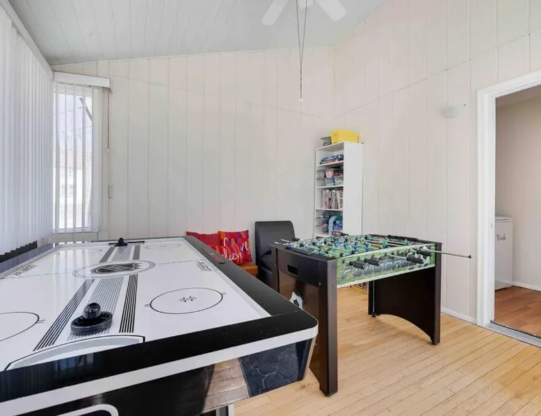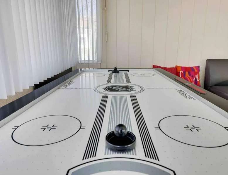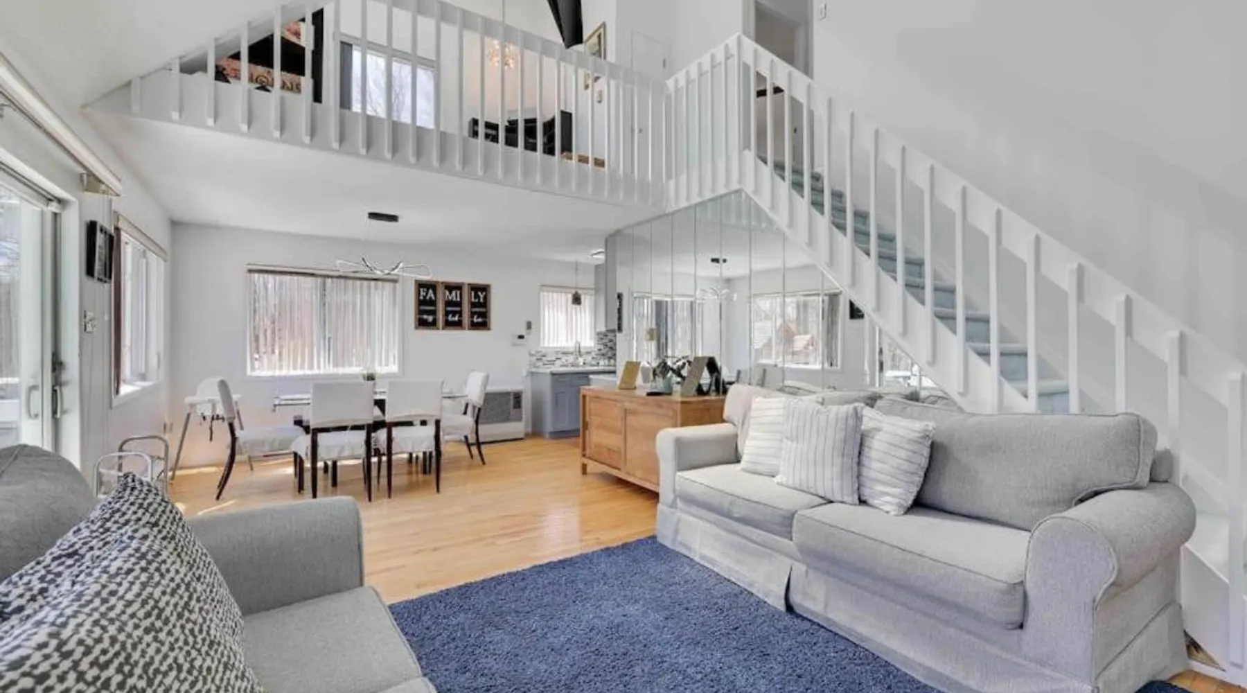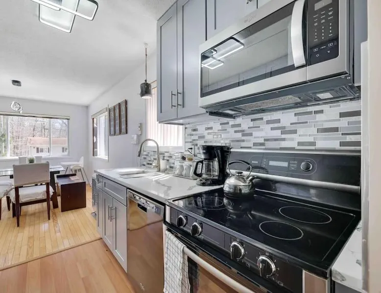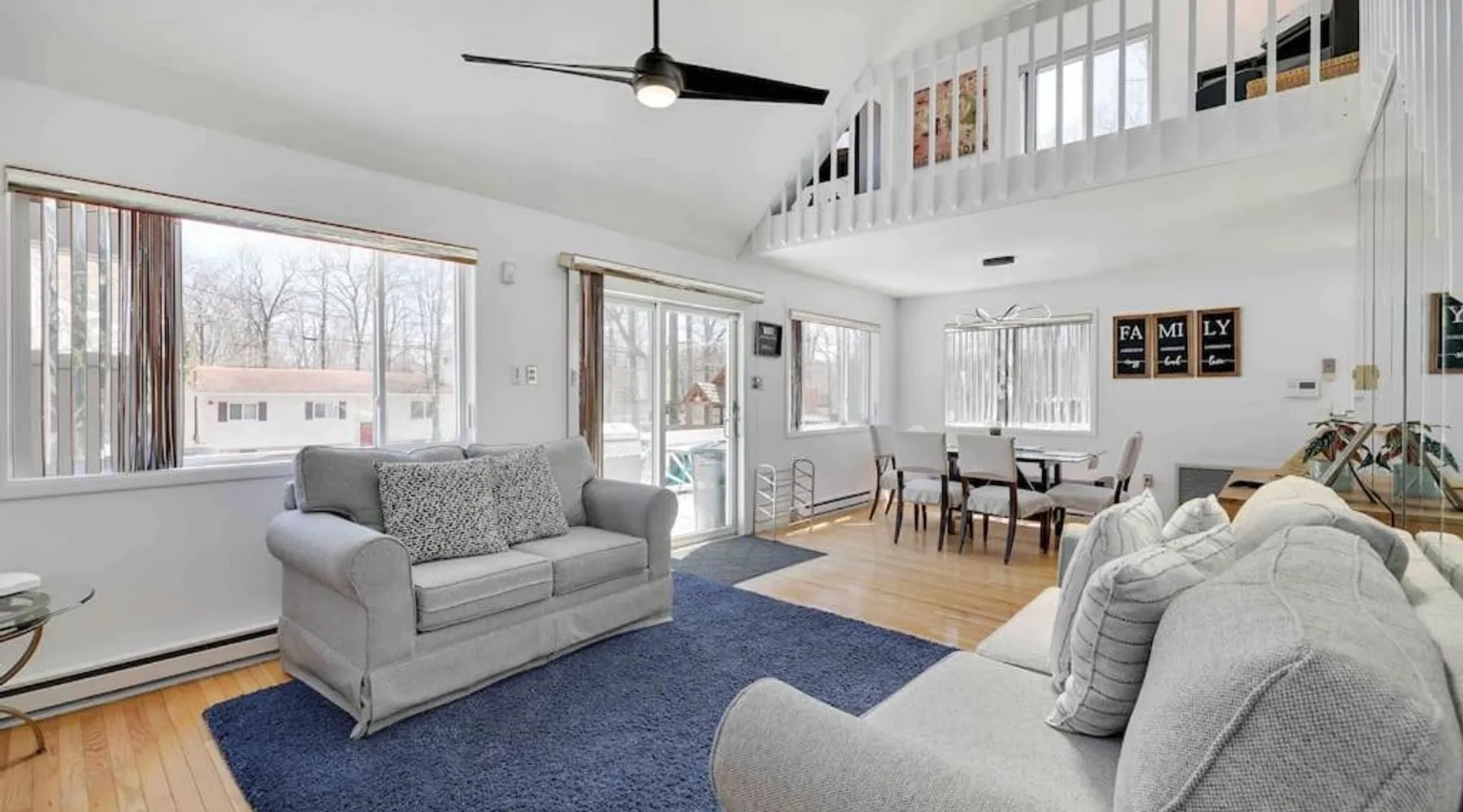 Spacious Accommodations: Cozy Poconos Mountain House in Tobyhanna offers three bedrooms and two bathrooms. The living room features a fireplace and balcony with garden and mountain views. Modern Amenities: Guests enjoy free WiFi, air-conditioning, and a fully equipped kitchen. Additional facilities include a garden, indoor and outdoor play areas, games room, and outdoor seating. Convenient Location: Located 39 mi from Wilkes-Barre/Scranton International Airport, the property is near attractions such as Kalahari Waterpark (6.2 mi) and Delaware Water Gap National Recreation Area (22 mi). Guest Satisfaction: Highly rated for room cleanliness, comfort, and attentive host. This holiday home's special feature is the fireplace. Boasting a private entrance, this air-conditioned holiday home includes 2 living rooms, 3 separate bedrooms and 2 bathrooms with a bath and a hairdryer. In the fully equipped kitchen, guests will find a stovetop, a refrigerator, a dishwasher and kitchenware. The spacious holiday home offers a washing machine, soundproof walls, a tea and coffee maker, a flat-screen TV with streaming services, as well as garden views. The unit has 6 beds and 1 futon.
