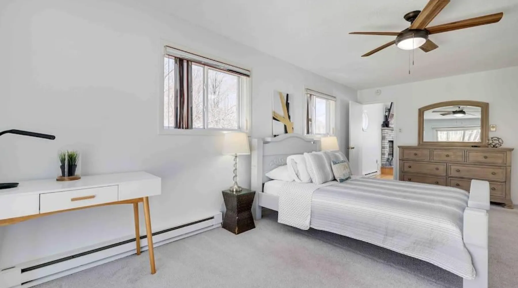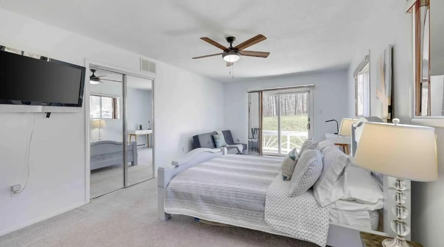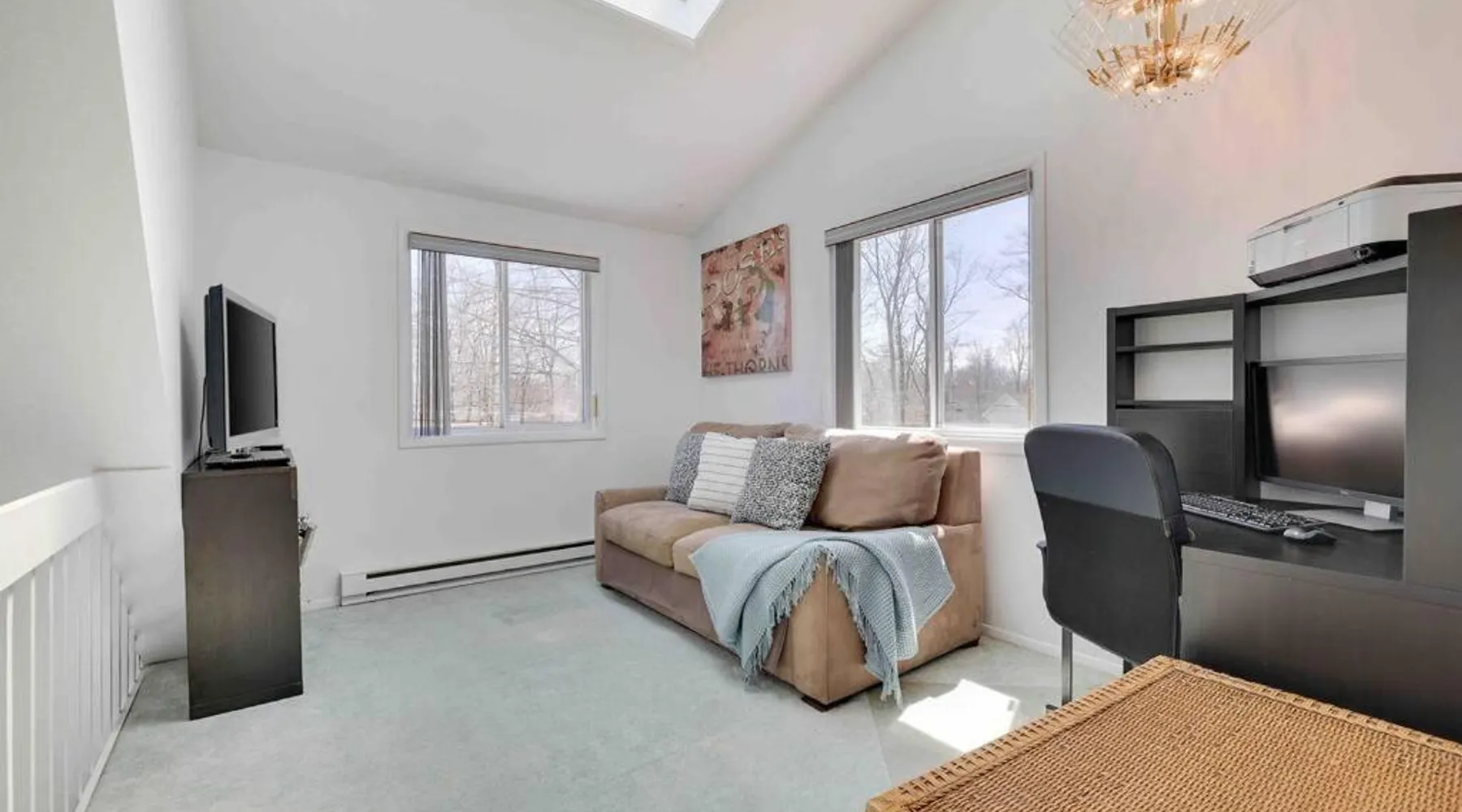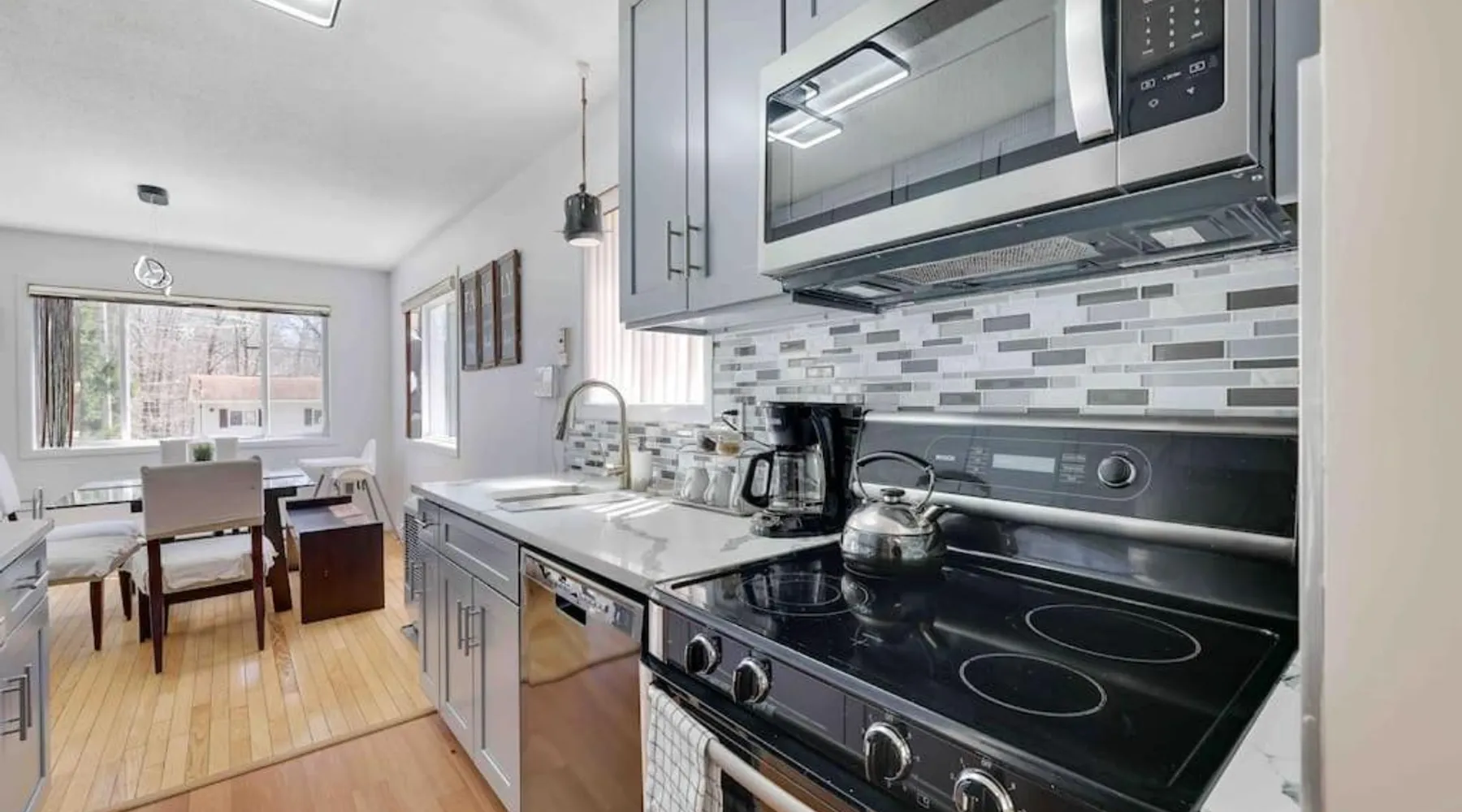 Spacious Accommodations: Cozy Poconos Mountain House in Tobyhanna offers three bedrooms and two bathrooms. The living room features a fireplace and balcony with garden and mountain views. Modern Amenities: Guests enjoy free WiFi, air-conditioning, and a fully equipped kitchen. Additional facilities include a garden, indoor and outdoor play areas, games room, and outdoor seating. Convenient Location: Located 39 mi from Wilkes-Barre/Scranton International Airport, the property is near attractions such as Kalahari Waterpark (6.2 mi) and Delaware Water Gap National Recreation Area (22 mi). Guest Satisfaction: Highly rated for room cleanliness, comfort, and attentive host. This holiday home's special feature is the fireplace. Boasting a private entrance, this air-conditioned holiday home includes 2 living rooms, 3 separate bedrooms and 2 bathrooms with a bath and a hairdryer. In the fully equipped kitchen, guests will find a stovetop, a refrigerator, a dishwasher and kitchenware. The spacious holiday home offers a washing machine, soundproof walls, a tea and coffee maker, a flat-screen TV with streaming services, as well as garden views. The unit has 6 beds and 1 futon.