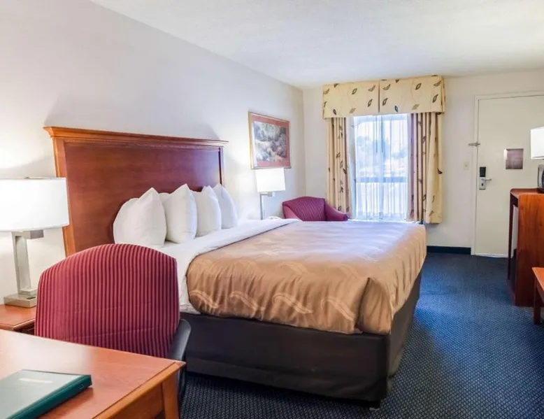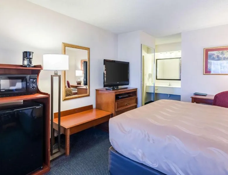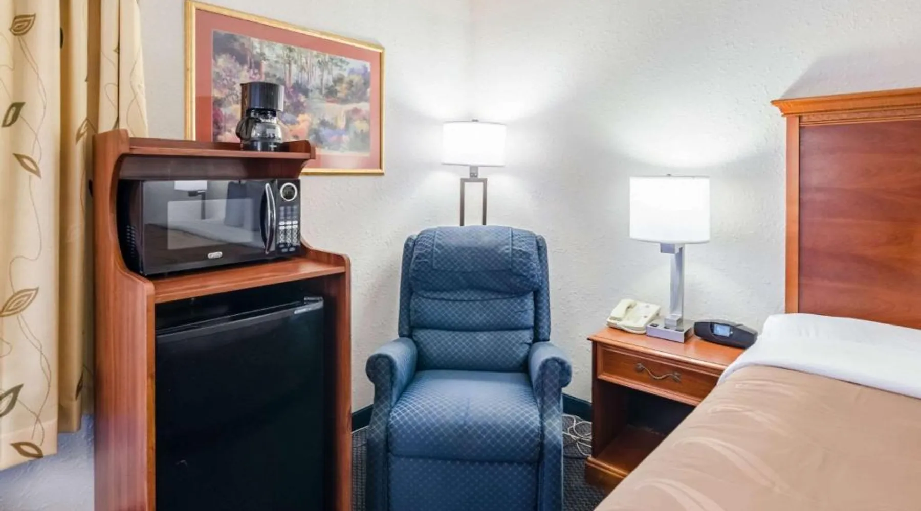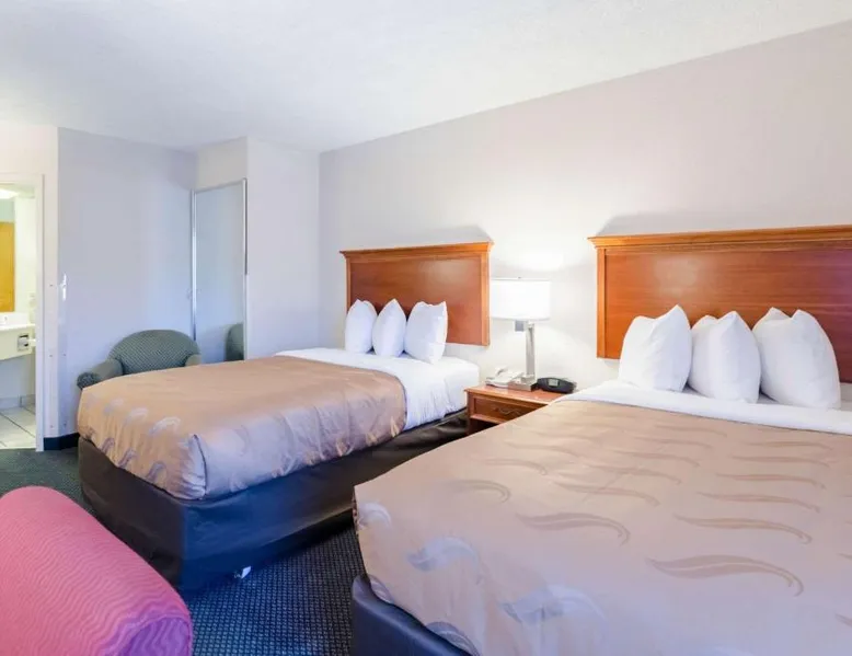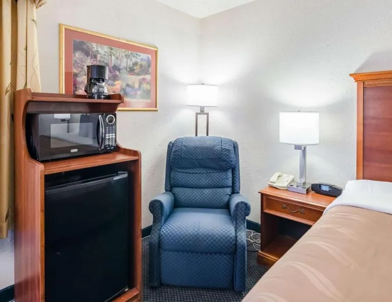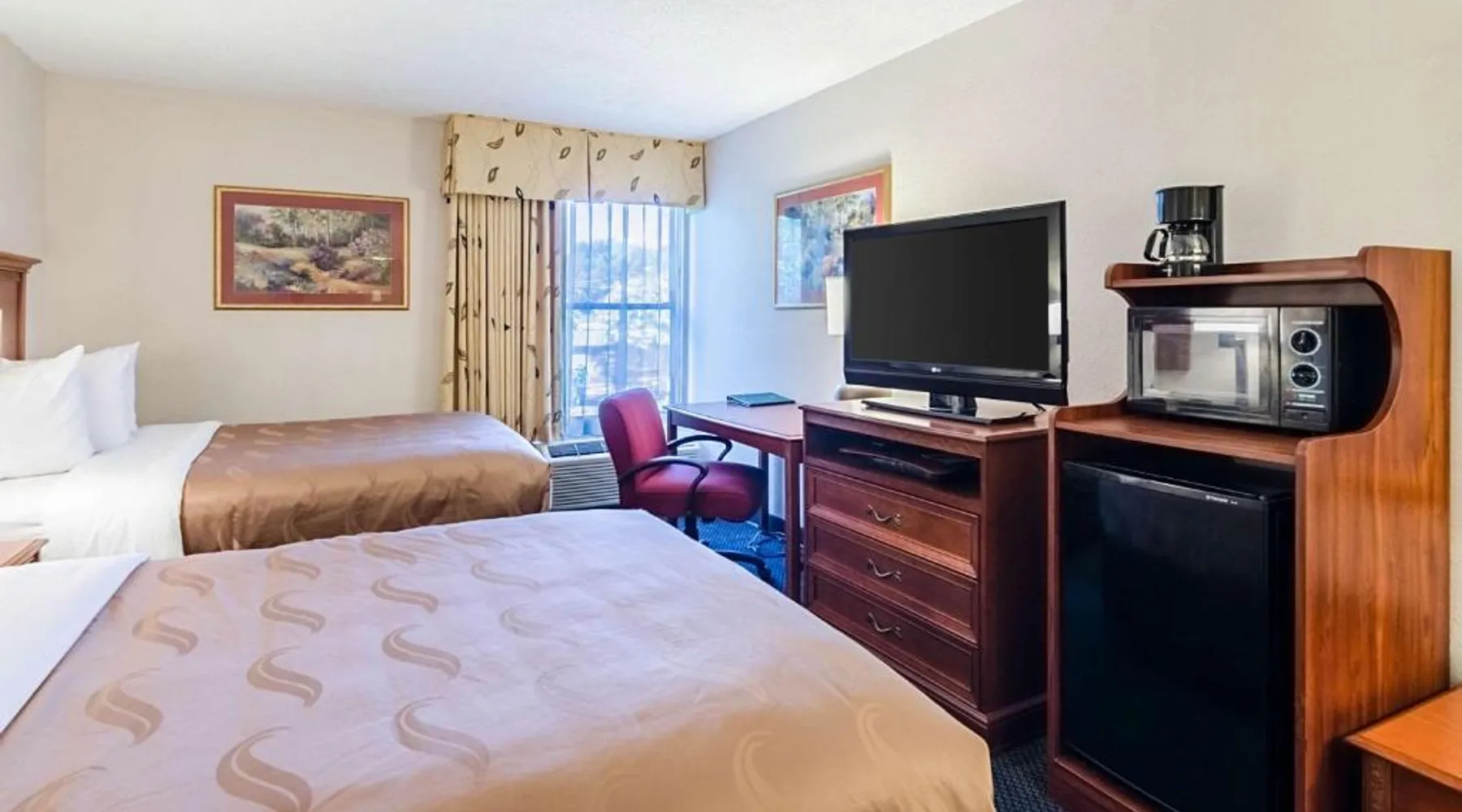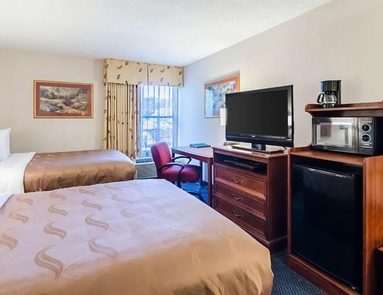 Comfortable Accommodations: Quality Inn Lynchburg near University in Lynchburg offers comfortable rooms with free WiFi, a fitness center, and a 24-hour front desk. Guests can enjoy amenities such as a tea and coffee maker, hairdryer, refrigerator, work desk, seating area, microwave, and TV. Convenient Facilities: The inn provides free on-site parking, bicycle parking, and a breakfast provided by the property. Additional facilities include a bath and a seating area, ensuring a pleasant stay. Prime Location: Located 2.5 mi from Lynchburg Regional Airport, the property is close to Liberty University (1.9 mi), Lynchburg Stadium (2.5 mi), Lynchburg College (3.1 mi), and other attractions. Guests appreciate the friendly staff and excellent service support. This family room features a tea and coffee maker, a seating area and a TV. The unit offers 2 beds.