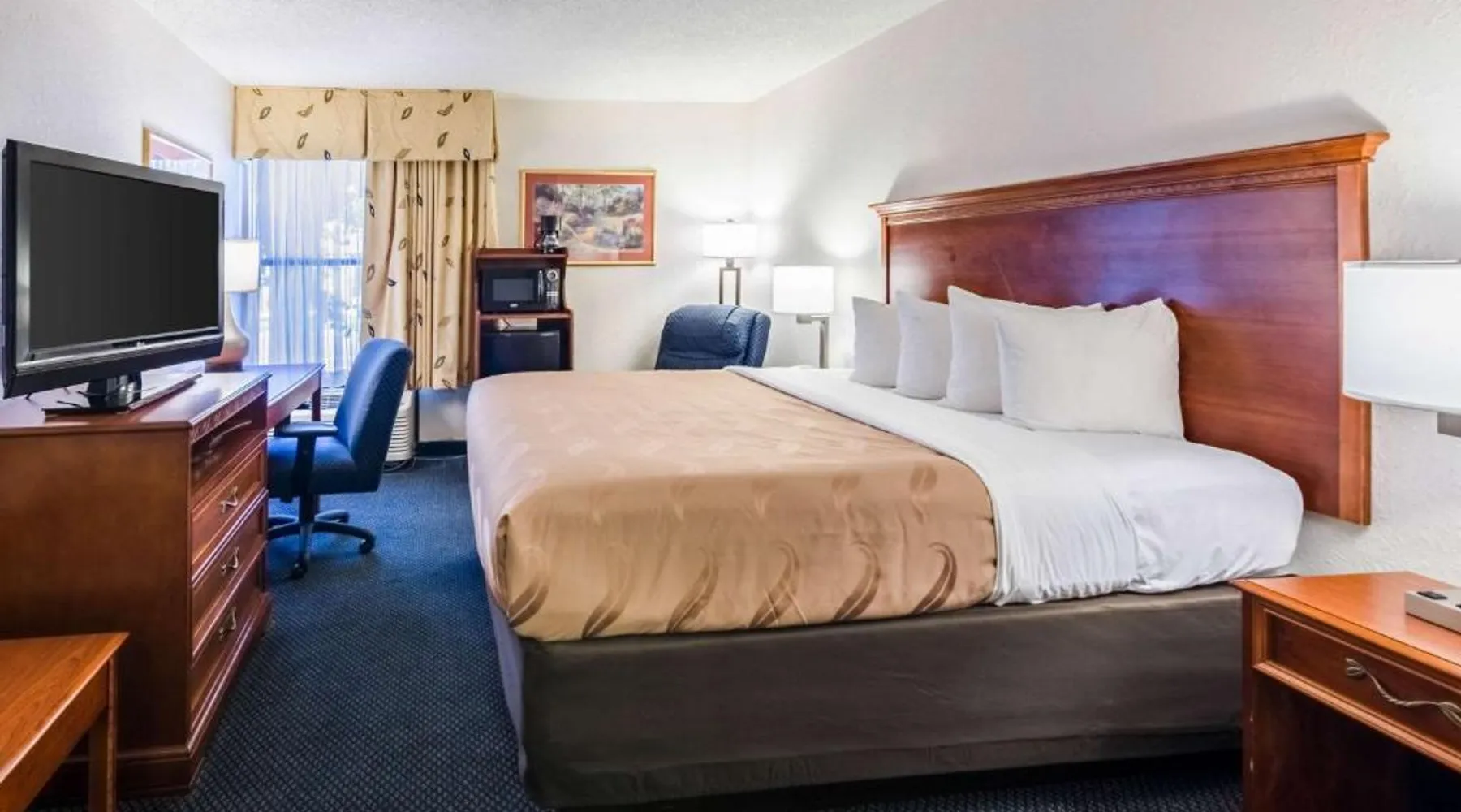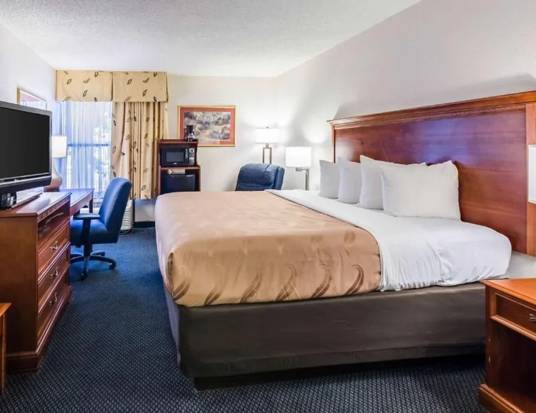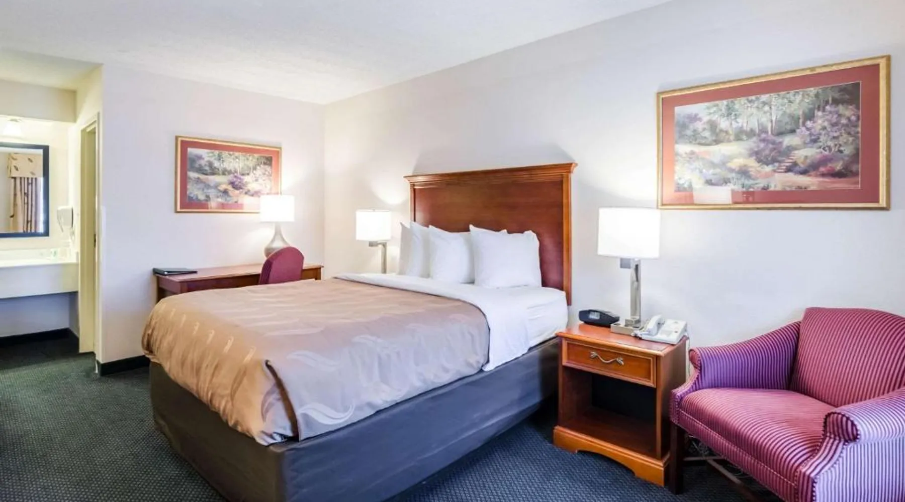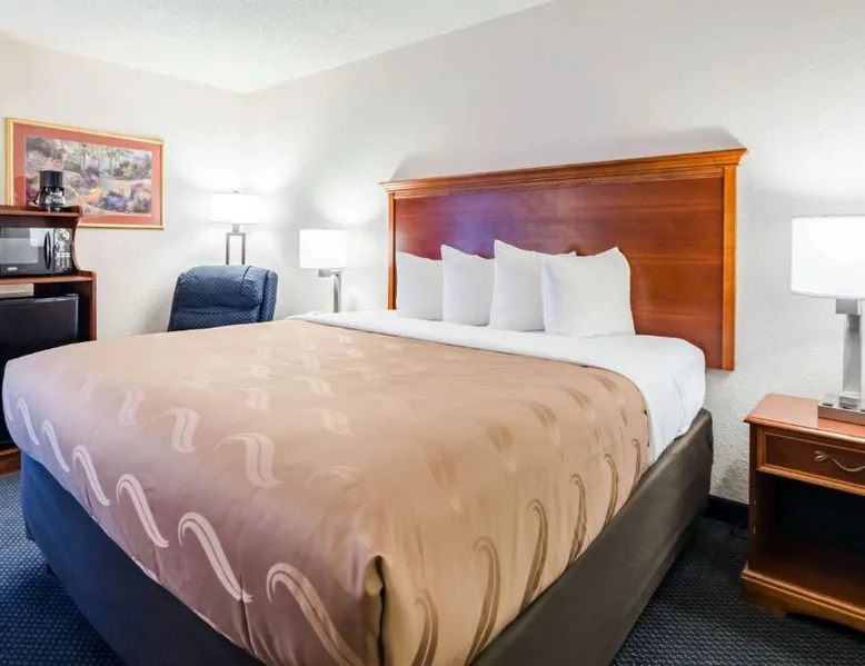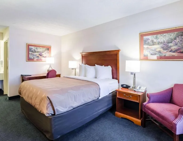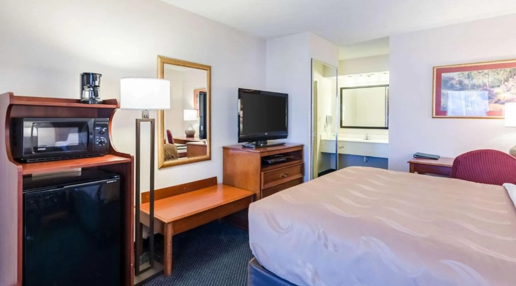 Comfortable Accommodations: Quality Inn Lynchburg near University in Lynchburg offers comfortable rooms with free WiFi, a fitness center, and a 24-hour front desk. Guests can enjoy amenities such as a tea and coffee maker, hairdryer, refrigerator, work desk, seating area, microwave, and TV. Convenient Facilities: The inn provides free on-site parking, bicycle parking, and a breakfast provided by the property. Additional facilities include a bath and a seating area, ensuring a pleasant stay. Prime Location: Located 2.5 mi from Lynchburg Regional Airport, the property is close to Liberty University (1.9 mi), Lynchburg Stadium (2.5 mi), Lynchburg College (3.1 mi), and other attractions. Guests appreciate the friendly staff and excellent service support. This family room features a tea and coffee maker, a seating area and a TV. The unit offers 2 beds.