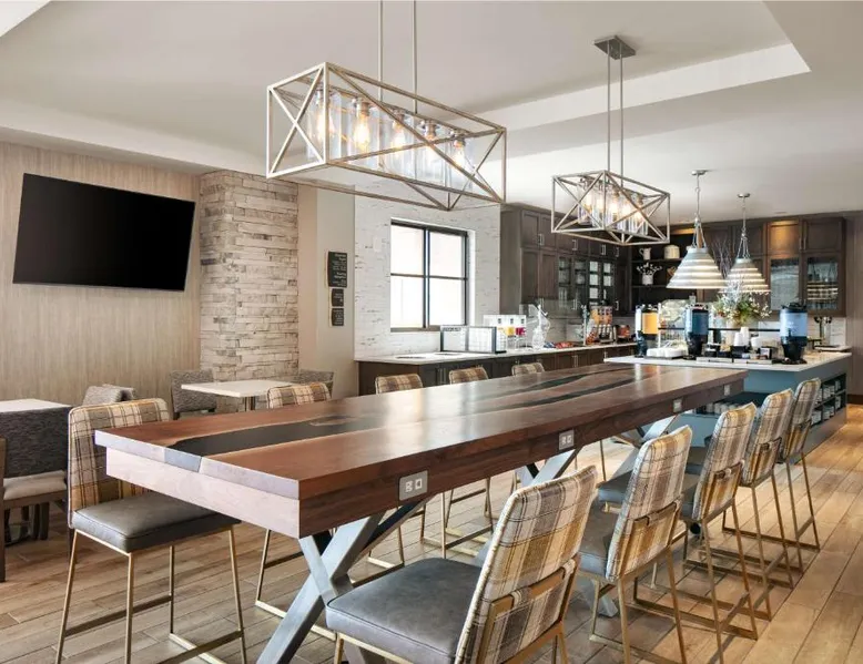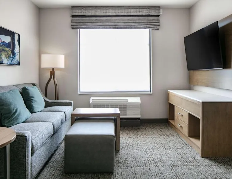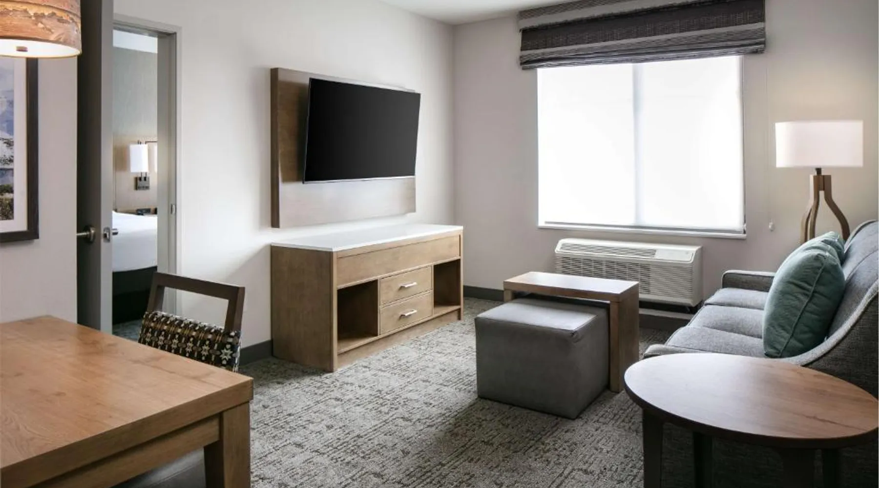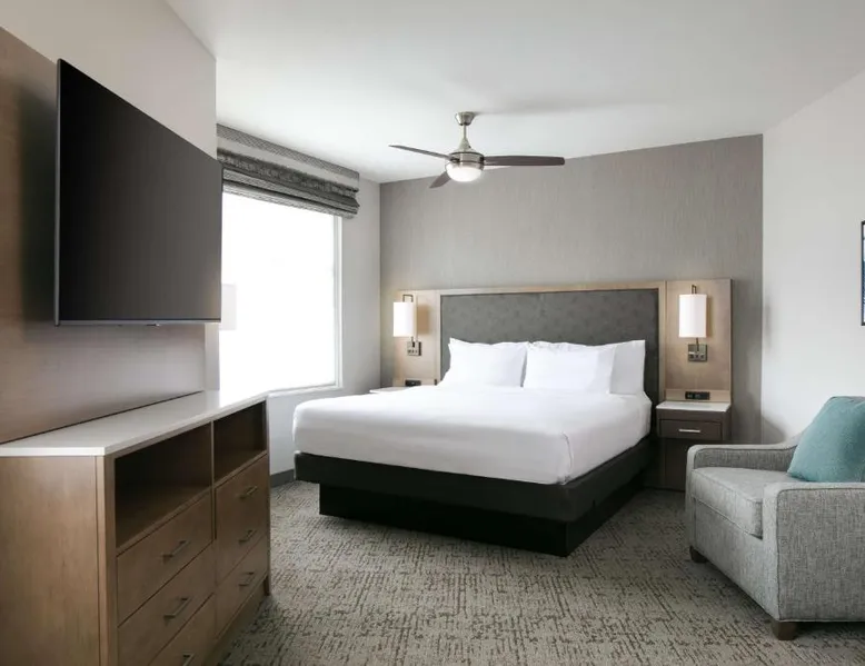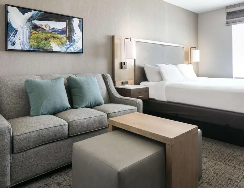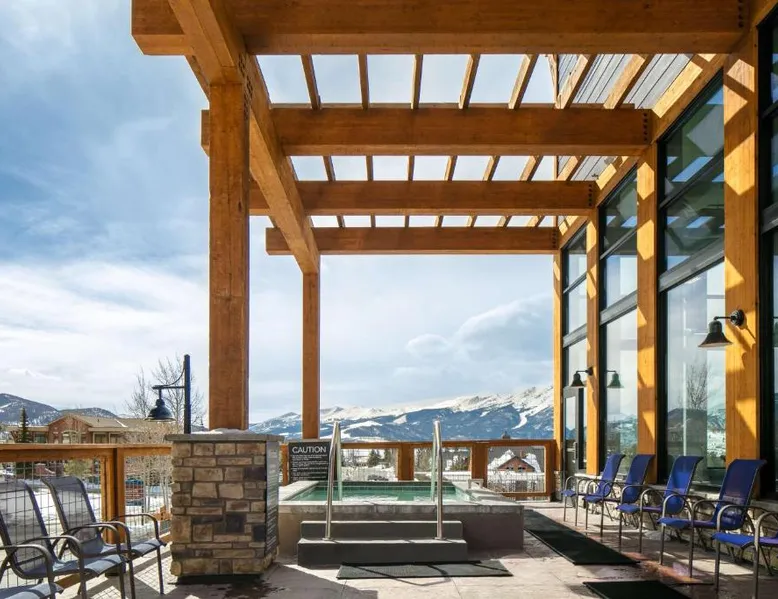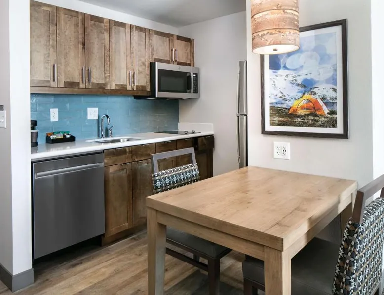 Comfortable Accommodations: Homewood Suites By Hilton Dillon in Dillon offers comfortable rooms with air-conditioning, kitchenettes, and modern amenities. Each room includes a refrigerator, microwave, and free toiletries. Leisure Facilities: Guests can enjoy a saltwater swimming pool, indoor pool, fitness center, terrace, and hot tub. Additional facilities include an outdoor fireplace, fitness room, and barbecue areas. Dining Experience: The modern restaurant serves American cuisine with vegetarian, vegan, and gluten-free options. Breakfast is provided by the property, and a bar offers a variety of beverages. Location and Attractions: Located 65 mi from Eagle County Regional Airport, the hotel is near Frisco Historic Park (6.8 mi) and Vail Nordic Center and Vail Golf Club (30 mi each). Skiing and cycling activities are available. The unit has 2 beds.