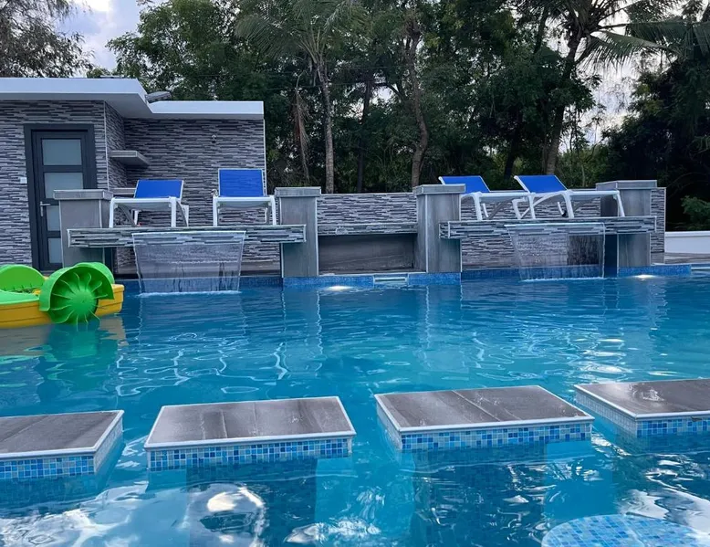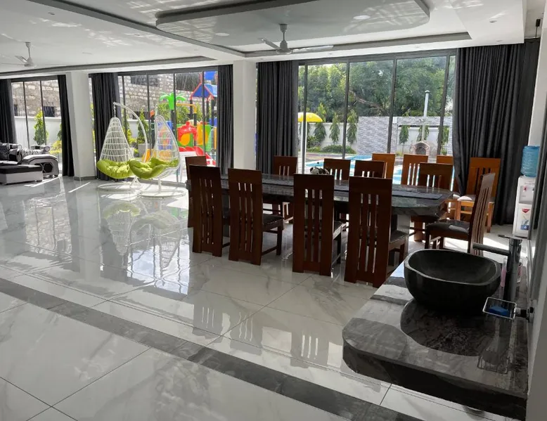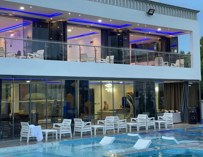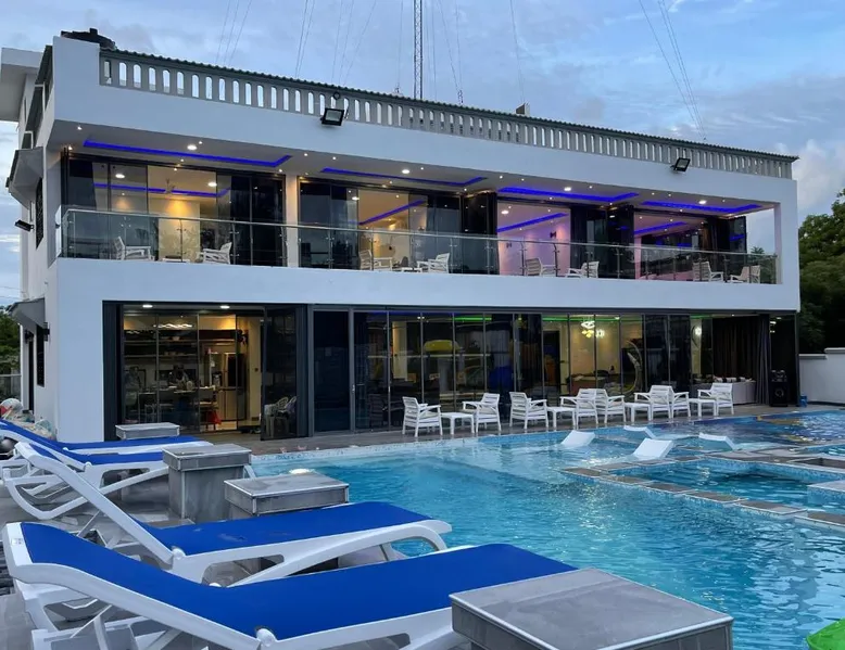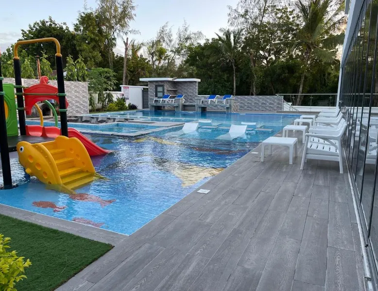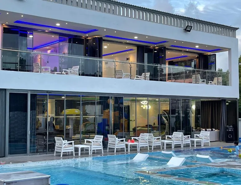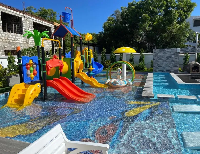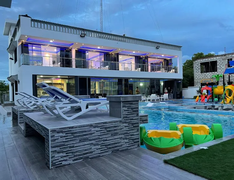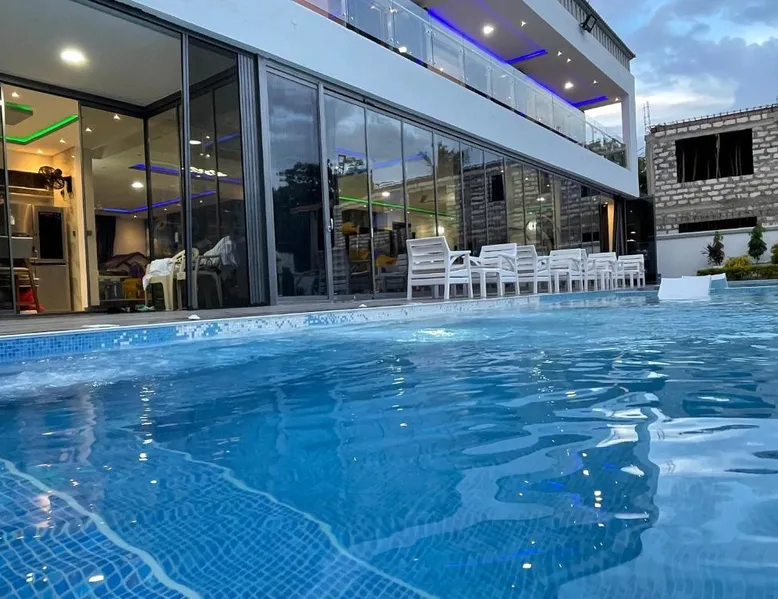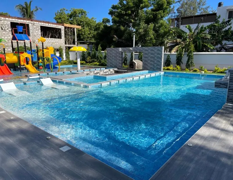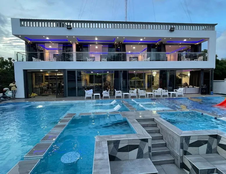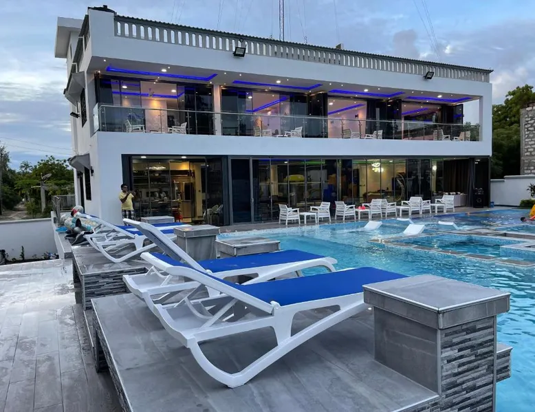 Spacious Accommodations: Bingo House Watamu in Watamu offers a spacious villa with five bedrooms and seven bathrooms. The property features a living room, family rooms, and a fully equipped kitchen. Outdoor Amenities: Guests can enjoy a sun terrace, garden, and a year-round outdoor swimming pool. Free WiFi is available throughout the villa. Convenient Facilities: The villa includes a hot tub, lounge, games room, and children's playground. Additional amenities include a shared kitchen, outdoor seating area, and barbecue facilities. Nearby Attractions: Turtle Bay Beach is a 5-minute walk away, while Bio-Ken Snake Farm lies 1.2 mi from the property. Malindi Airport is 13 mi distant. The private pool and fireplace are the standout features of this villa. Boasting a private entrance, this air-conditioned villa comes with 1 living room, 5 separate bedrooms and 7 bathrooms with a bath and a shower. Guests will find a stovetop, a refrigerator, kitchenware and an oven in the fully equipped kitchen. The villa also includes a barbecue. The spacious villa features a washing machine, soundproof walls, a tea and coffee maker as well as a terrace with garden views. The unit has 11 beds.