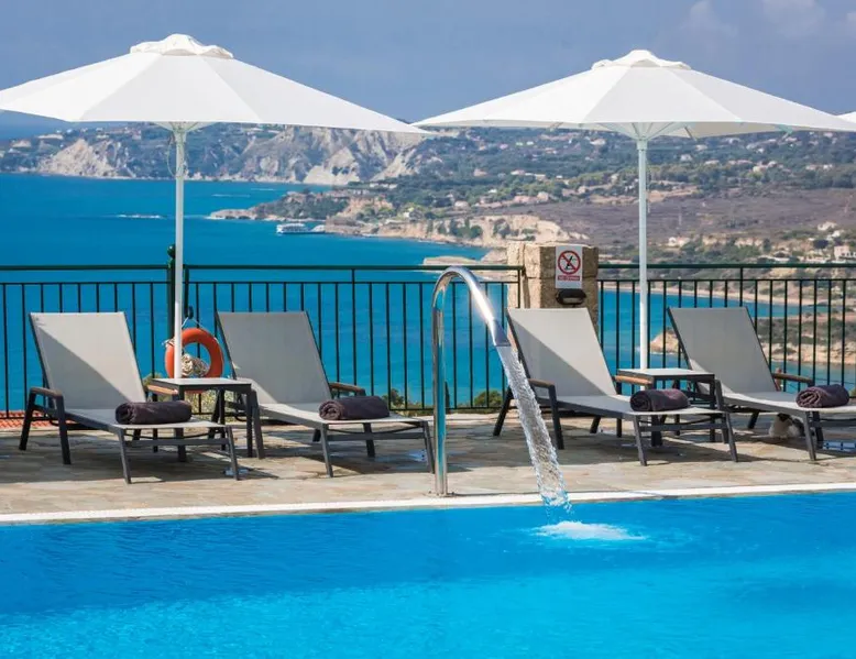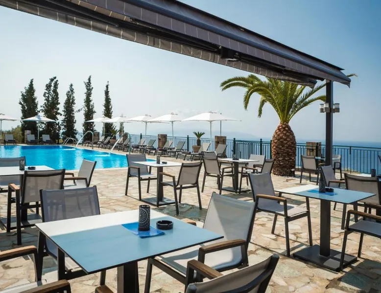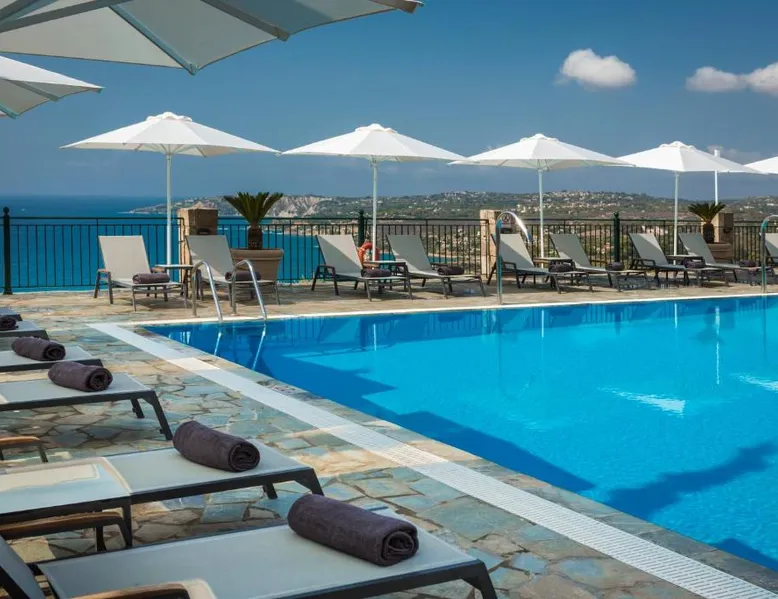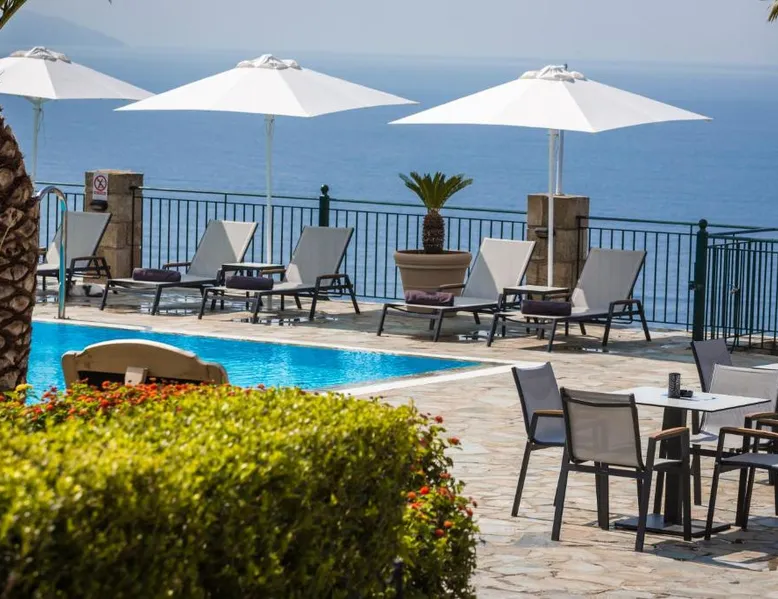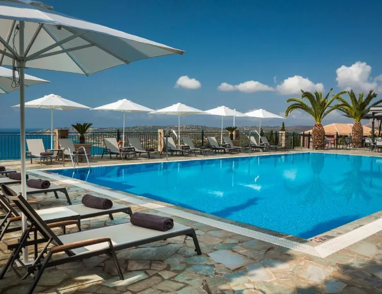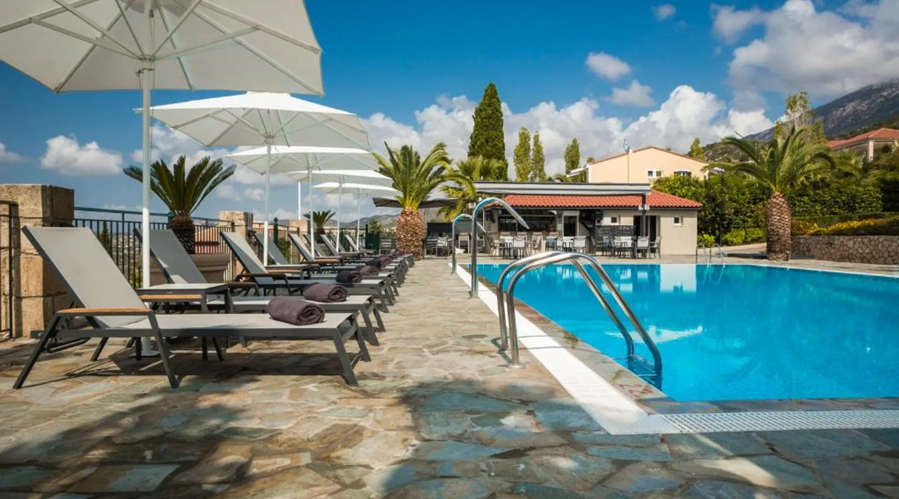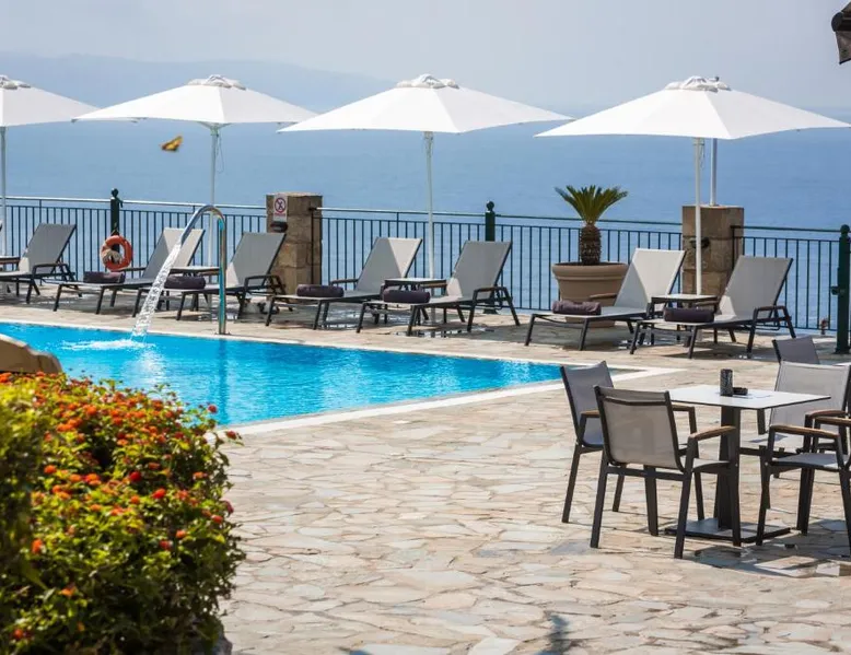 Elegant Accommodations: Antonia Hotel in Lourdata offers a swimming pool with stunning views, a lush garden, and a spacious terrace. Guests can relax at the bar or enjoy free WiFi throughout the property. Comfortable Amenities: The hotel features a 24-hour front desk, pool bar, outdoor seating area, room service, and luggage storage. Free on-site private parking is available for guests. Prime Location: Located 8.1 mi from Kefalonia Airport, Antonia Hotel is a short walk from Kanali Beach. Nearby attractions include the Byzantine Ecclesiastical Museum and Monastery of Agios Andreas Milapidias, each 5 mi away. Guest Favorites: Guests highly rate the hotel for its scenic location, pool with a view, and swimming pool. Guests will have a special experience as this double room features a pool with a view. The spacious double room offers air conditioning, a dining area, as well as a private bathroom featuring a walk-in shower and a hairdryer. The double room features a wardrobe, a patio and sea views. The unit offers 3 beds.
