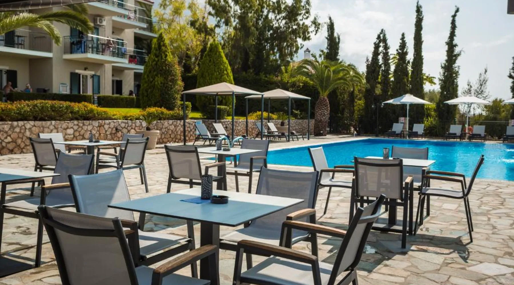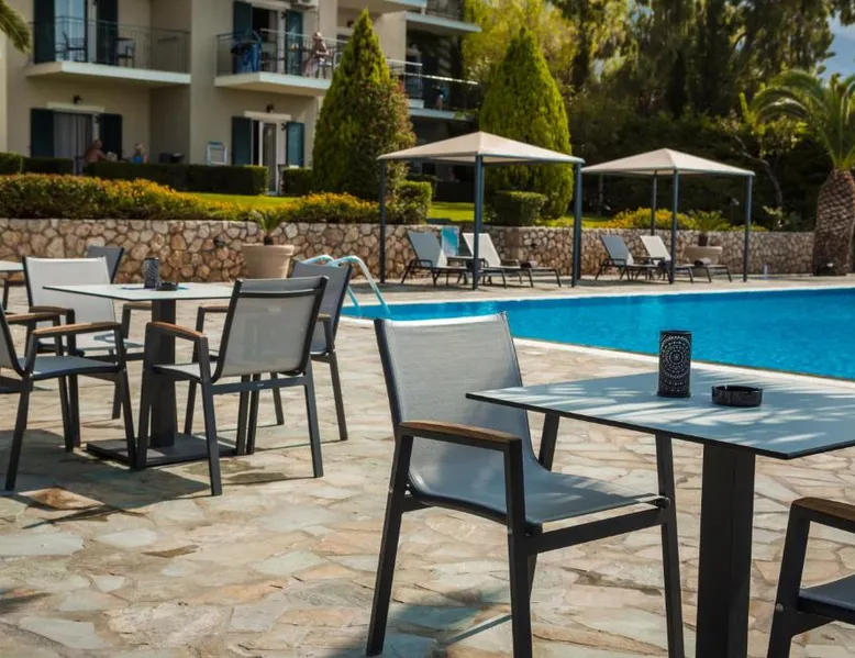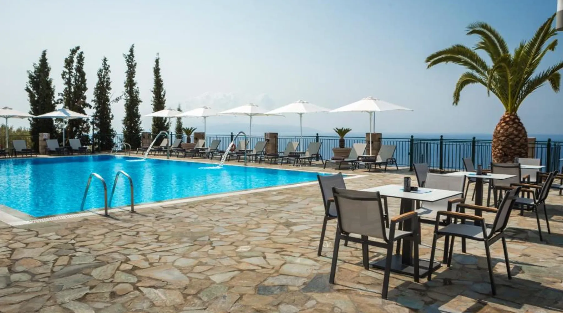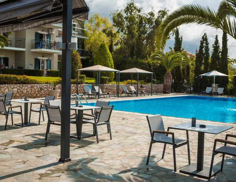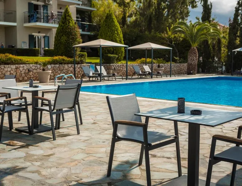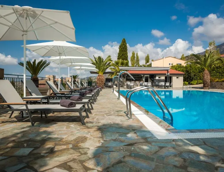 Elegant Accommodations: Antonia Hotel in Lourdata offers a swimming pool with stunning views, a lush garden, and a spacious terrace. Guests can relax at the bar or enjoy free WiFi throughout the property. Comfortable Amenities: The hotel features a 24-hour front desk, pool bar, outdoor seating area, room service, and luggage storage. Free on-site private parking is available for guests. Prime Location: Located 8.1 mi from Kefalonia Airport, Antonia Hotel is a short walk from Kanali Beach. Nearby attractions include the Byzantine Ecclesiastical Museum and Monastery of Agios Andreas Milapidias, each 5 mi away. Guest Favorites: Guests highly rate the hotel for its scenic location, pool with a view, and swimming pool. Guests will have a special experience as this double room features a pool with a view. The spacious double room offers air conditioning, a dining area, as well as a private bathroom featuring a walk-in shower and a hairdryer. The double room features a wardrobe, a patio and sea views. The unit offers 3 beds.