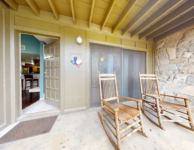 This condo is the perfect getaway for couple or families. The ranch features many activities on property including swimming, tennis, or simply strolling along the many stone-lined paths through beautiful oak trees. The space Spacious Hill Country Condo on the Beautiful T Bar M Ranch! This complex is the perfect getaway for couples or families. The ranch features many activities on property including swimming, tennis, or simply strolling along the many stone-lined paths through beautiful oak trees. T-Bar- M 101 is a large spacious condo offering 4 bedrooms and 2.5 baths that sleeps and allows 10 guests maximum. Master: King -downstairs- 2nd Bedroom: Queen with Twin Trundle -downstairs- 3rd Bedroom: 2 Double Beds -upstairs- 4th Bedroom: Queen -upstairs- This gorgeous condo has a full kitchen, access to tennis courts, swimming, and grills by pool area. Nestled in the Texas Hill Country, and only minutes from the Comal/Guadalupe Rivers and Schlitterbahn. T Bar M Ranch is conveniently located only minutes from New Braunfels' charming downtown district, dancing and dining in historic Gruene, splashing at world famous Schlitterbahn Waterpark and tubing down the crystal blue waters of the Comal River. Must be 25 or older to book, kids are welcome with a parent/legal guardian. Renter's ID and Credit Card must be presented to receive check-in information. Occupancy is not to be exceeded at any time. This unit is NOT Pet-Friendly. Monthly Rates in our Low Season are available! Guest access Each unit is equipped with a Schlage lock system. You will be provided with a 4 digit access code in your check-in email. Using the Schlage lock system- To Unlock the Door: Press the Schlage button to wake up the lock. Enter the 4-digit “Door Code”, when the light turns green, (within 5 seconds) manually turn and unlock the deadbolt using the spinning locking mechanism. To Lock the Door: Press the Schlage button and turn the locking mechanism towards the door frame.