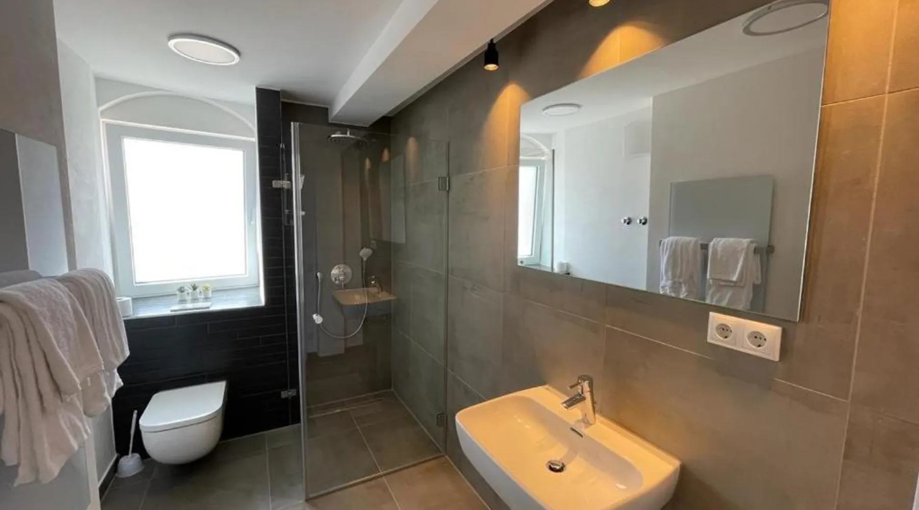 Comfortable Accommodations: Gästehaus Hirsch 93 in Straubenhardt offers a spacious apartment with family rooms. Free WiFi is available throughout the property. Modern Amenities: The apartment includes a washing machine, private bathroom, fully equipped kitchen, and a balcony. Additional features include a sofa bed, microwave, dishwasher, and TV. Convenient Location: Located 34 mi from Karlsruhe/Baden-Baden Airport, the property is near attractions such as Culture House Osterfeld (8.1 mi) and Pforzheim Central Station (8.7 mi). Hiking enthusiasts can explore the surrounding area. Guest Satisfaction: Highly rated by guests, Gästehaus Hirsch 93 provides free on-site private parking and reception services in German and English. This apartment features 1 bedroom, a kitchen and 1 bathroom with a shower and a hairdryer. In the kitchen, guests will find a stovetop, a refrigerator, kitchenware and a microwave. The apartment features a washing machine, a coffee machine, a dining area, a wardrobe and a flat-screen TV. The unit has 2 beds.