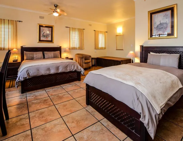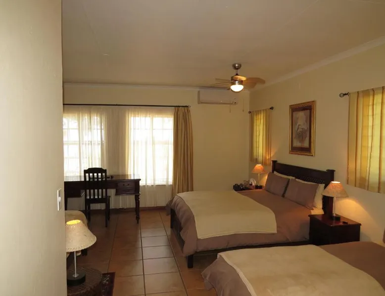 Perfect for exploring Kruger National Park and the Panorama Route, close to the city of Mbombela, this lodge features stunning views of the surrounding farmlands. Nestled on a mountain top, White House Lodge impresses with its combination of luxury indoor and outdoor living. Enjoy a relaxing swim in the rock pool, followed by a traditional German meal and a glass of South African wine. Whether you are staying in a guest room or the cottage, the only source of disturbance is the sound of birds. The lounge and bar area are the ideal spot to enjoy a refreshing drink and chat with family or friends. In addition, your attentive hosts are happy to assist you with transfers to and from nearby airports or the organization of tours and rental cars. Two bedroom cottage with one bathroom (shower only), open plan kitchen-, dining- and living area. Private veranda.