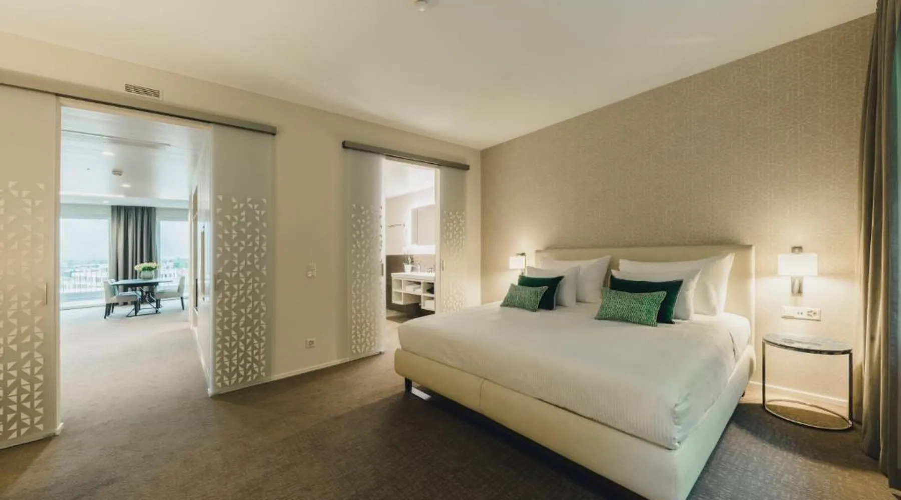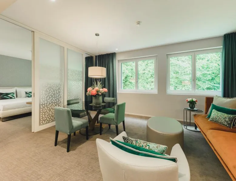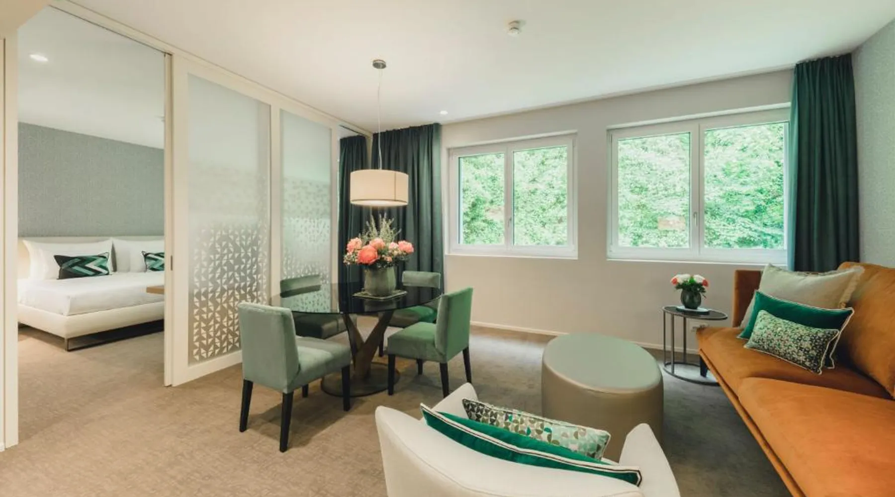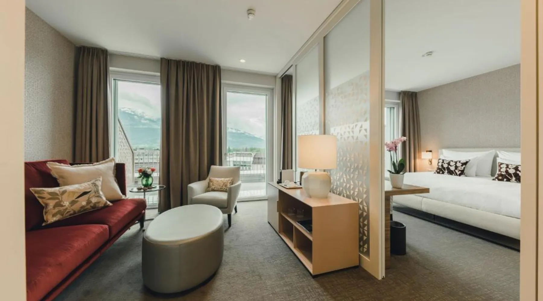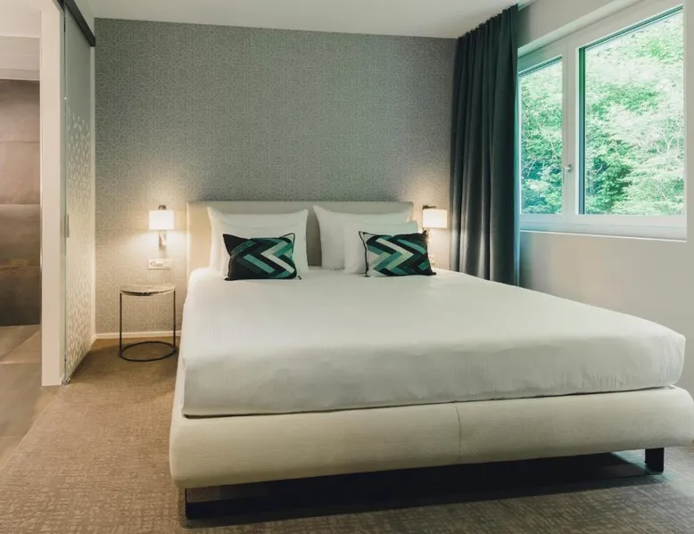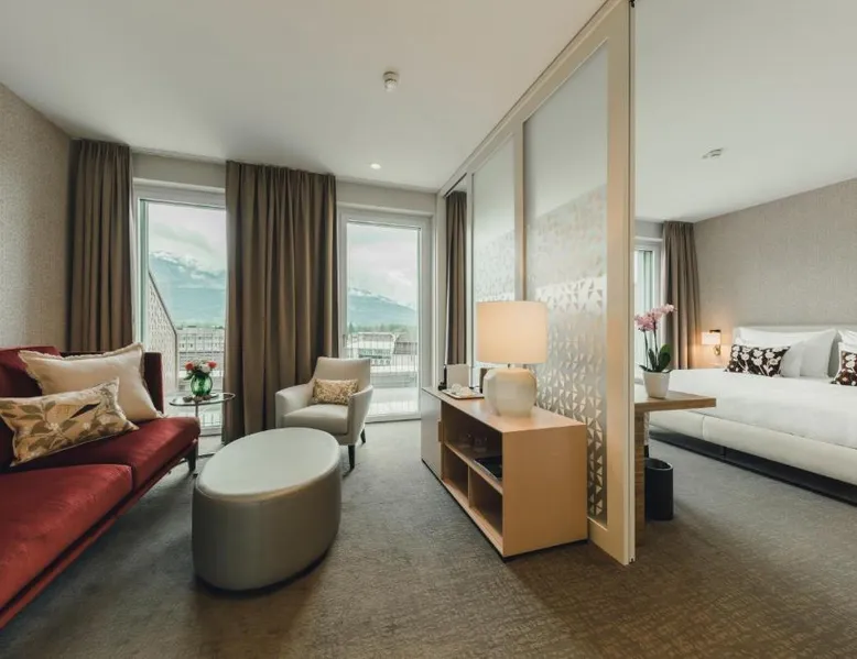 Comfortable Accommodations: Central by Residence Hotel in Vaduz offers 4-star comfort with private check-in and check-out, a fitness center, sun terrace, and free WiFi. Guests enjoy amenities such as bathrobes, private bathrooms, and balconies with garden or mountain views. Dining Experience: The family-friendly restaurant serves international cuisine with vegetarian, vegan, and gluten-free options. Breakfast includes continental, buffet, and high tea, while dinner features brunch, lunch, and cocktails in a traditional or modern setting. Leisure Activities: Guests can participate in yoga classes, skiing, hiking, and cycling. The hotel provides free bicycles, a fitness room, and an electric vehicle charging station. Nearby attractions include the Liechtenstein Museum of Fine Arts and Salginatobel Bridge. The spacious double room provides air conditioning, soundproof walls, a terrace with mountain views as well as a private bathroom featuring a walk-in shower. The unit offers 1 bed.