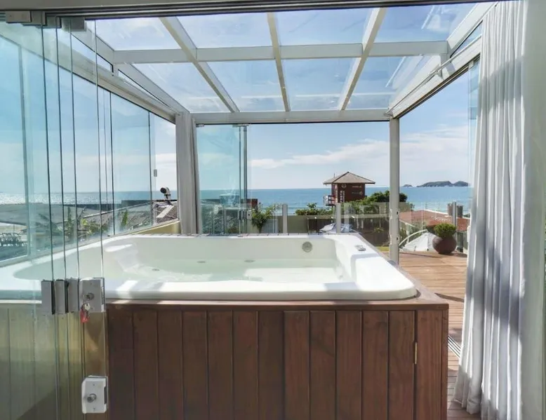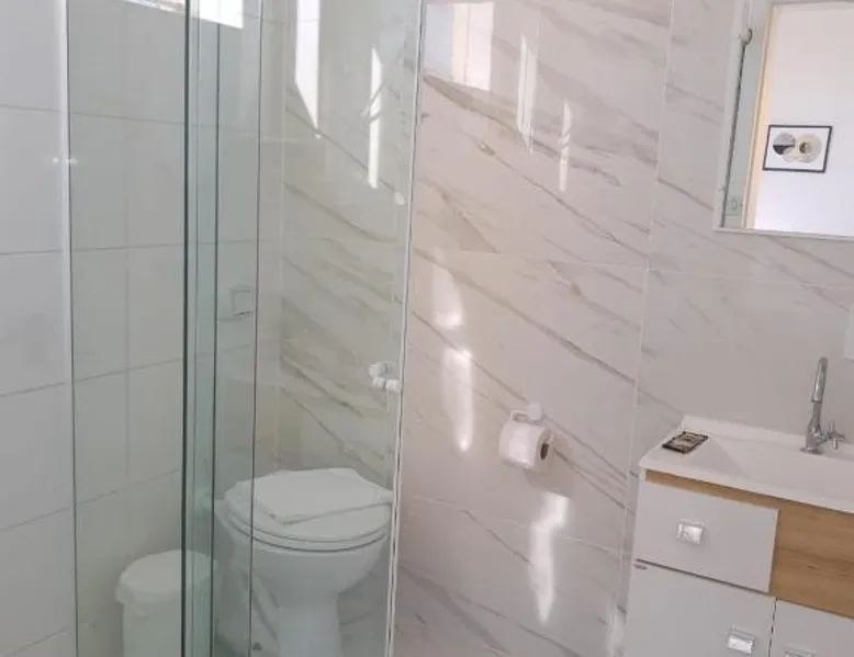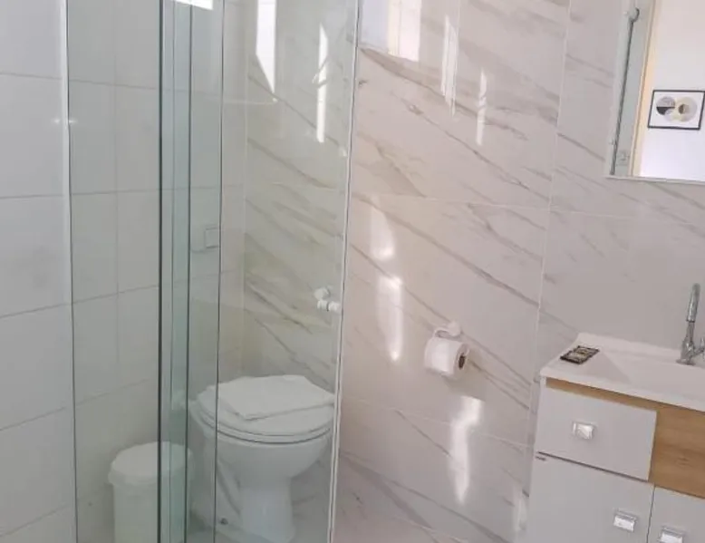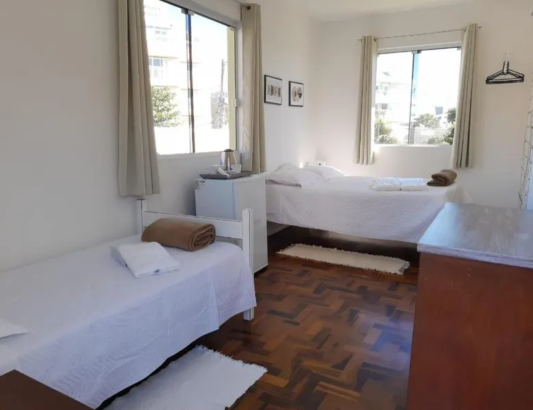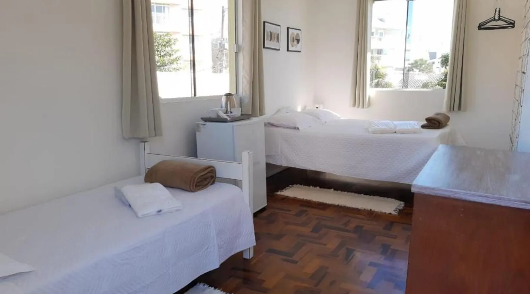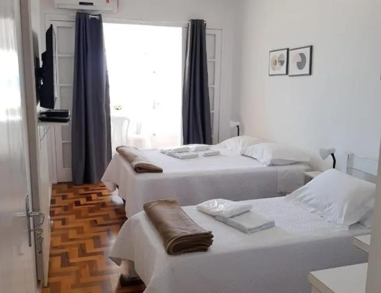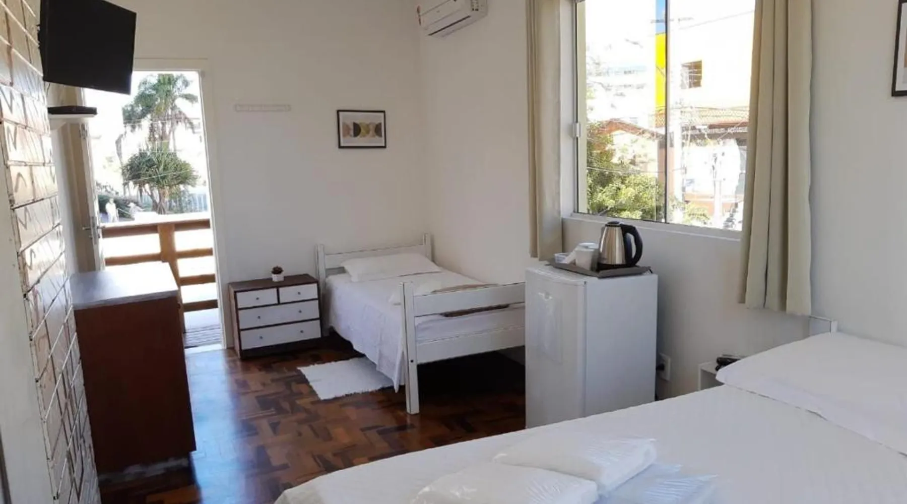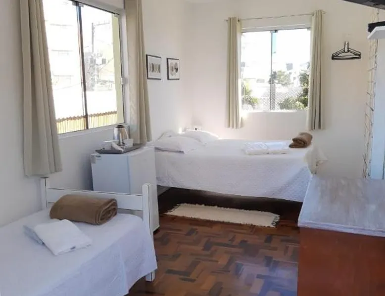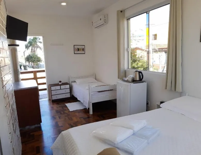Comfortable Accommodations: Pousada Ingleses Beach in Florianópolis offers air-conditioned rooms with private bathrooms. Each room includes a balcony, kitchen, and free WiFi. Leisure Facilities: Guests can enjoy an outdoor swimming pool, hot tub, and barbecue area. The inn provides free on-site private parking and a seating area with a sofa bed. Convenient Location: Located a few steps from Ingleses Beach, the inn is 24 mi from Florianopolis-Hercilio Luz International Airport. Nearby attractions include Waterpark Água Show (3.1 mi) and Floripa Mall (14 mi). This triple room is air-conditioned and has a private bathroom and a seating area. The unit has 2 beds.