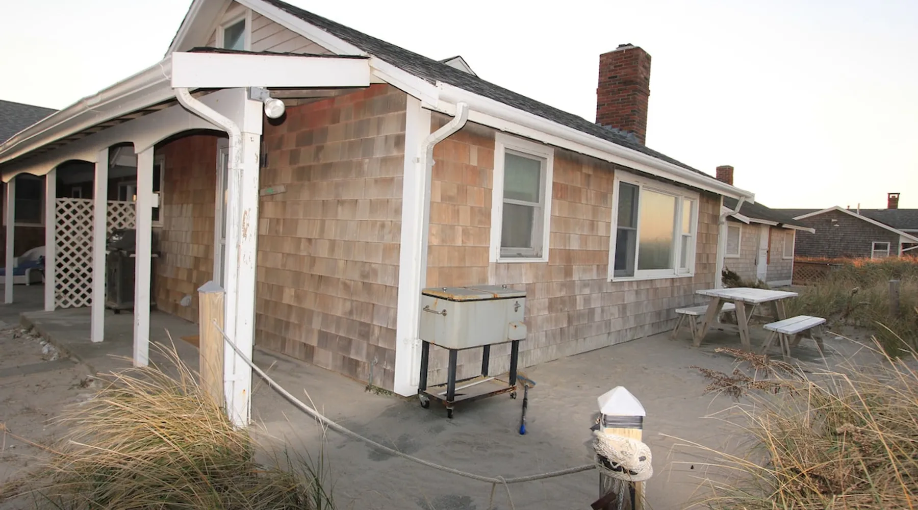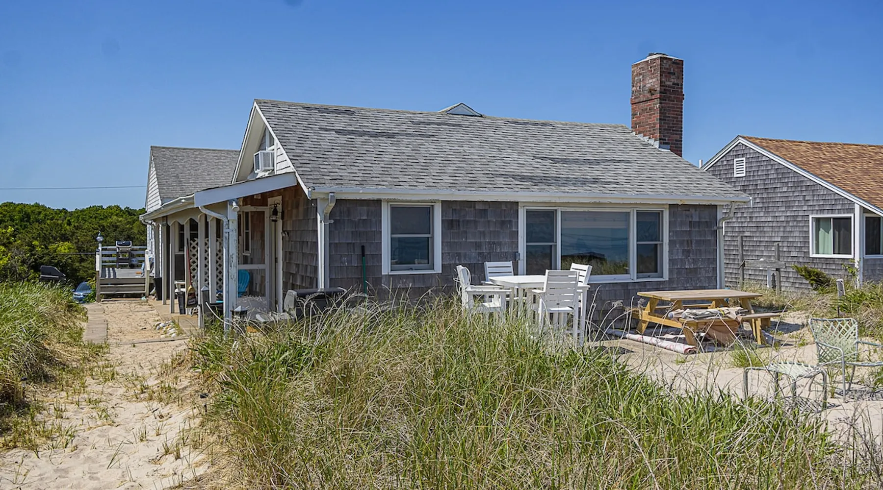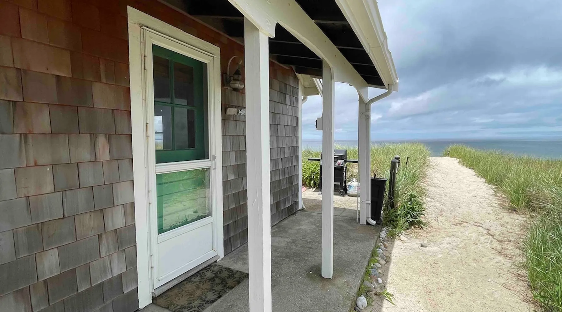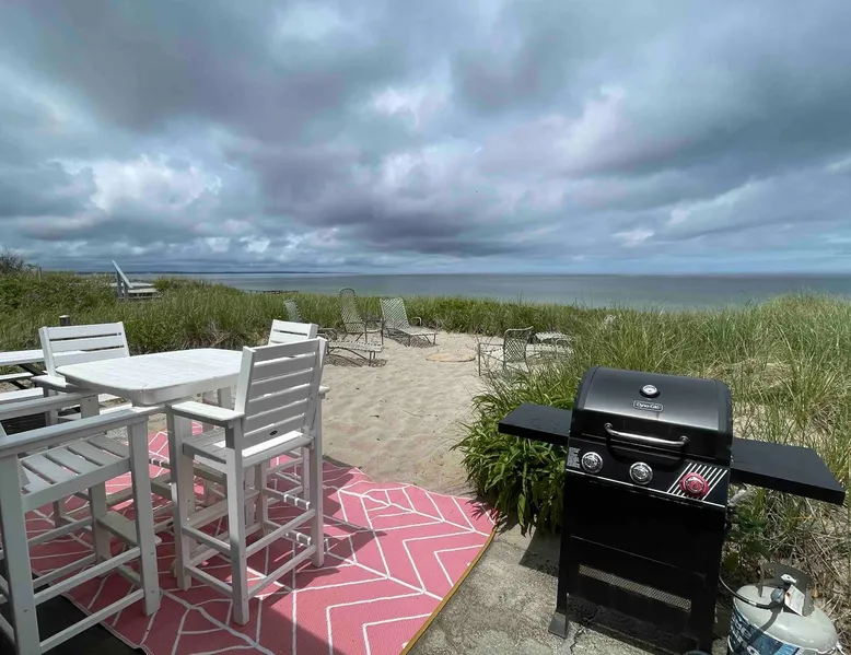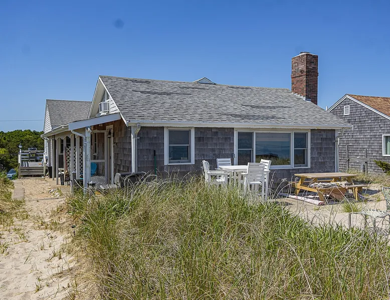 Adorable waterfront unit of a three unit property located right on East Sandwich beach. 2 Bedrooms, bath with shower, laundry and internet. Enjoy the great view of beautiful Cape Cod Bay and private pathway to the beach. The space Adorable waterfront unit of a three unit property located right on East Sandwich beach. Enjoy the great view of beautiful Cape Cod Bay. Waterfront patio, outside shower and huge sandbar makes this a perfect vacation spot. Bright and white. Cable television, DVD player and a fireplace for indoor use. Great outside seating with views of the ocean and private path to have an evening bon fire. Wireless High-Speed internet available. Window A/C unit to cut down the humidity on some of those hot days. Parking for 2 cars, shared enclosed outside shower, private patio with picnic table, benches and gas grill for cooking out. Private pathway to the beach. Enjoy long walks, sunsets and roasting marshmallows at the beach. Bedroom 1 - Queen Bedroom 2 - Two Twins Other things to note Sheets and towels are not included and may be brought or rented locally. Lookup dunetootin linen rentals for pricing.