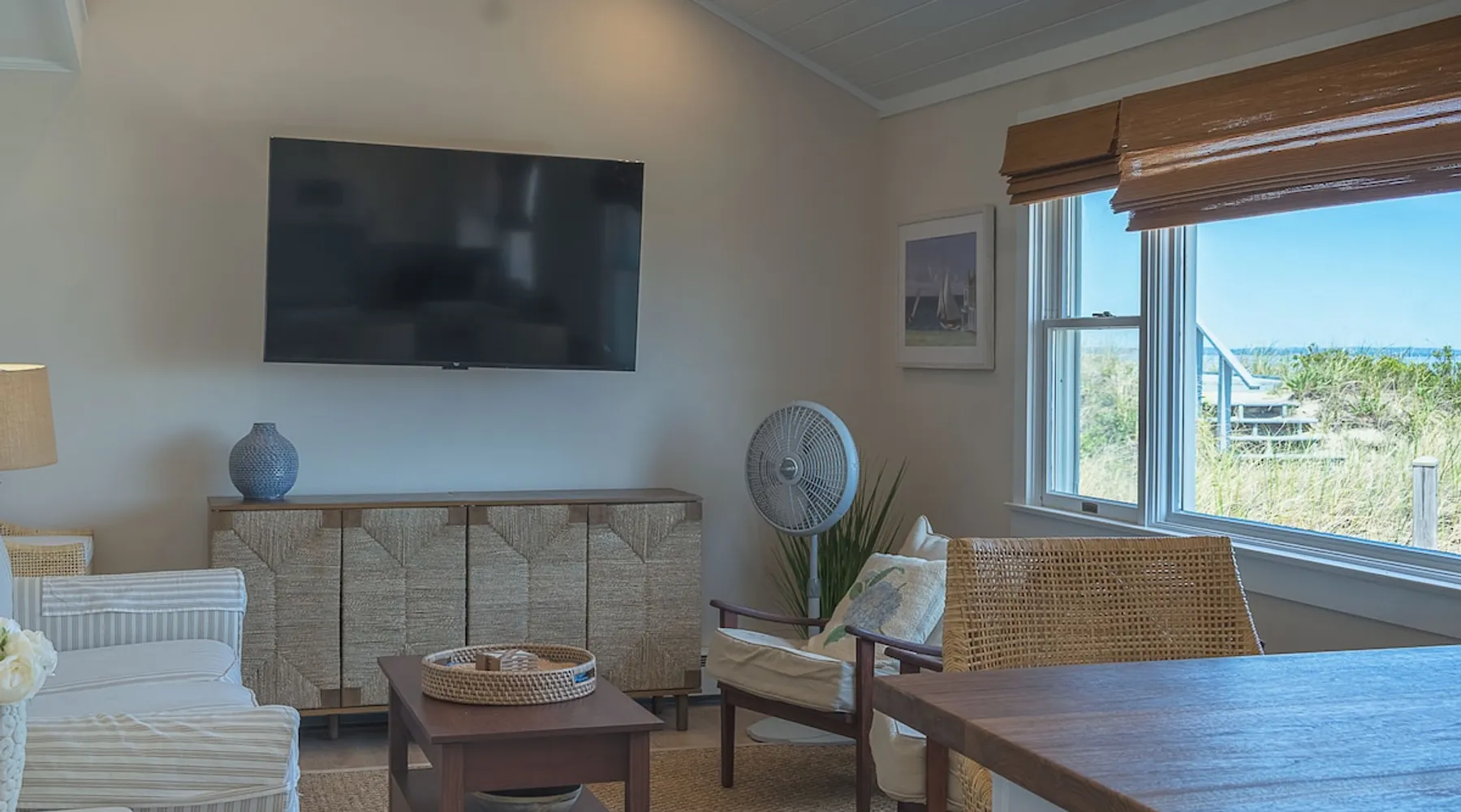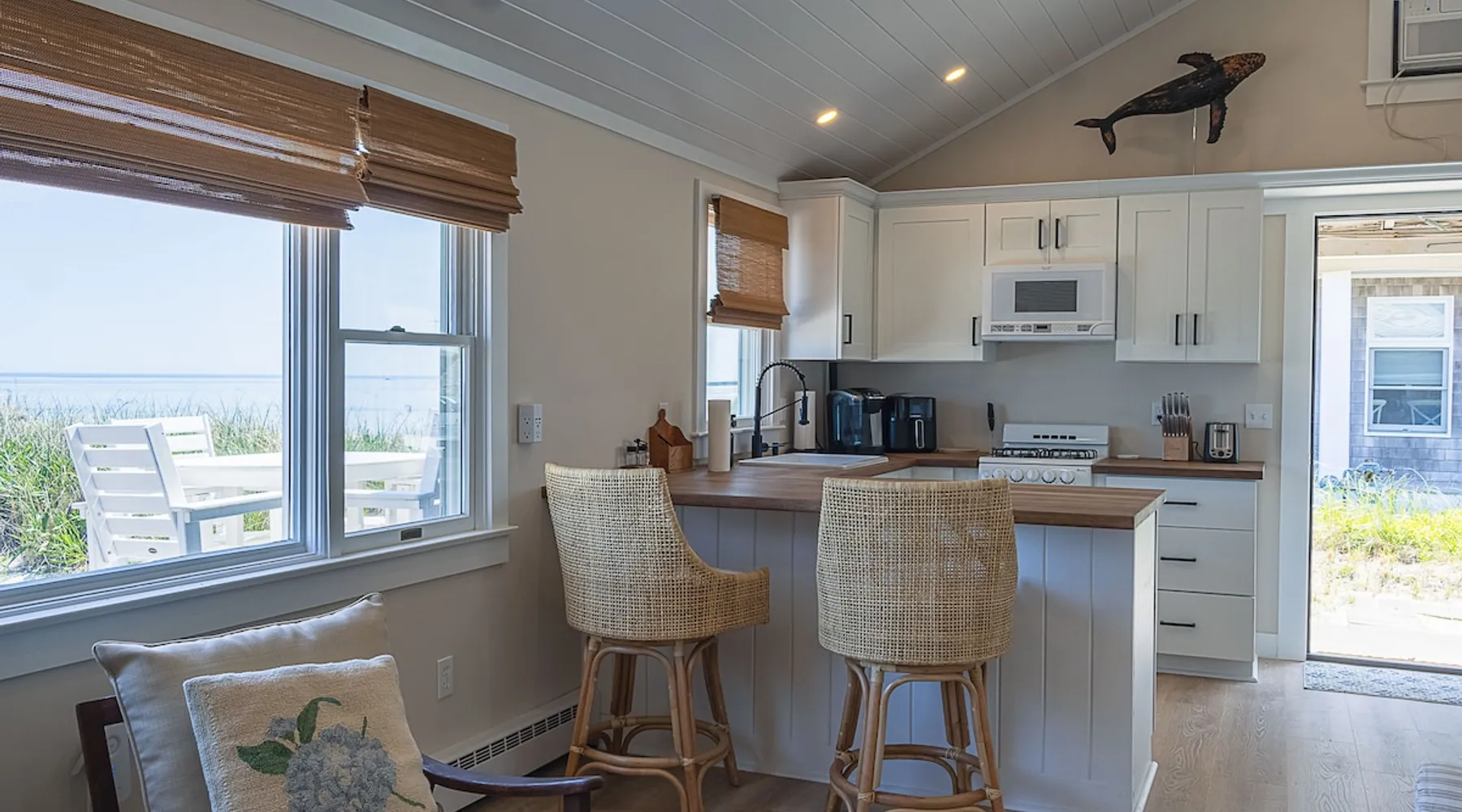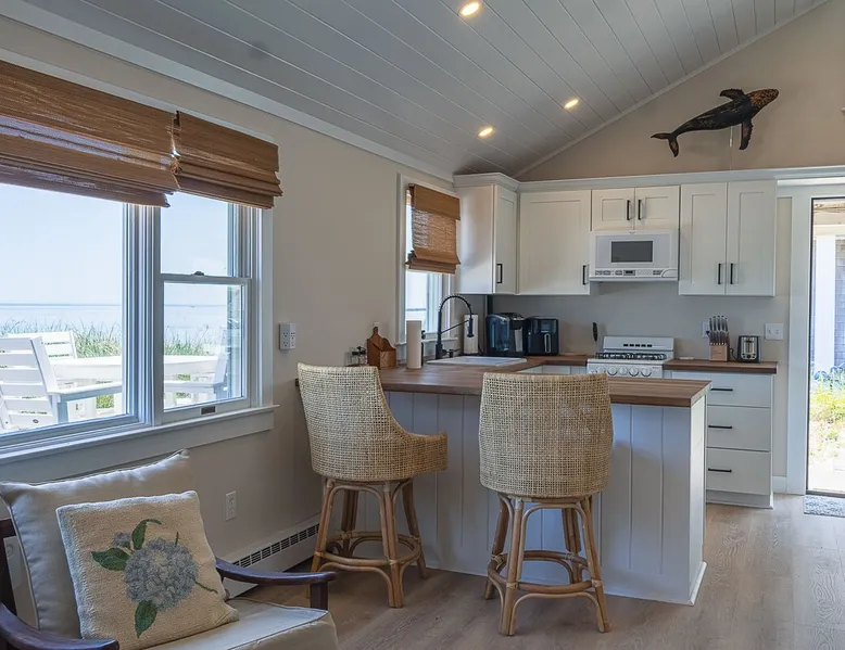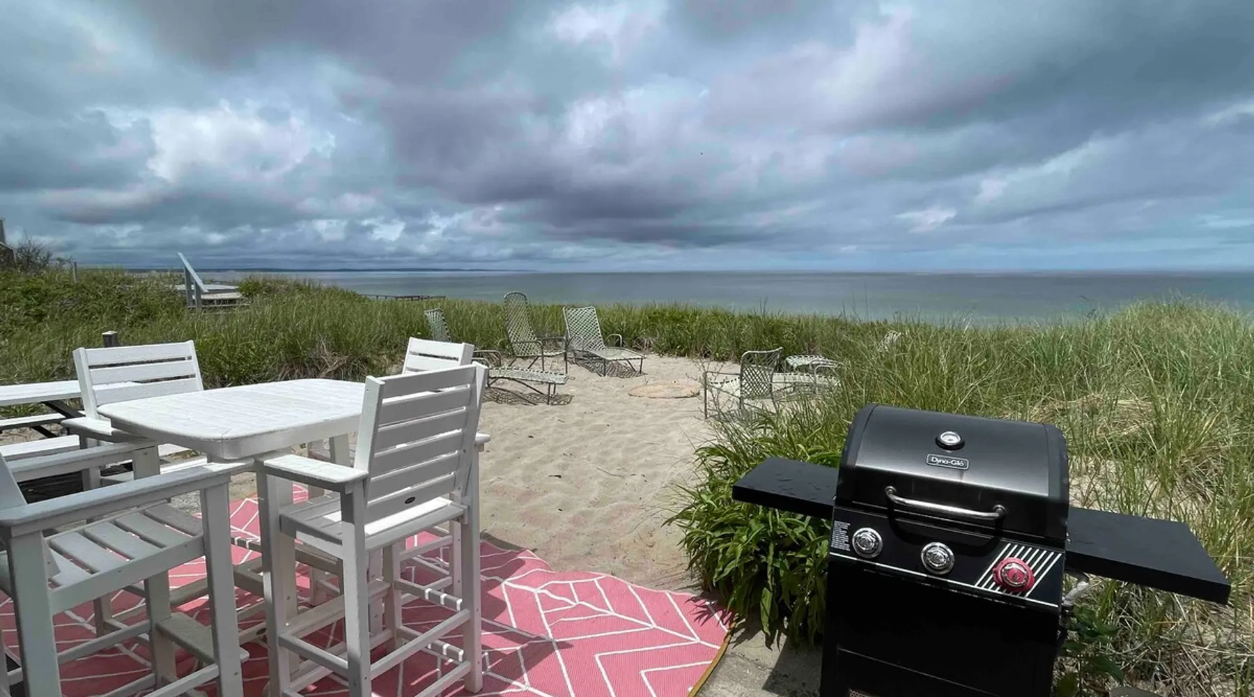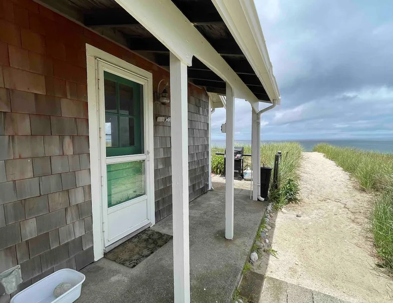 Adorable waterfront unit of a three unit property located right on East Sandwich beach. 2 Bedrooms, bath with shower, laundry and internet. Enjoy the great view of beautiful Cape Cod Bay and private pathway to the beach. The space Adorable waterfront unit of a three unit property located right on East Sandwich beach. Enjoy the great view of beautiful Cape Cod Bay. Waterfront patio, outside shower and huge sandbar makes this a perfect vacation spot. Bright and white. Cable television, DVD player and a fireplace for indoor use. Great outside seating with views of the ocean and private path to have an evening bon fire. Wireless High-Speed internet available. Window A/C unit to cut down the humidity on some of those hot days. Parking for 2 cars, shared enclosed outside shower, private patio with picnic table, benches and gas grill for cooking out. Private pathway to the beach. Enjoy long walks, sunsets and roasting marshmallows at the beach. Bedroom 1 - Queen Bedroom 2 - Two Twins Other things to note Sheets and towels are not included and may be brought or rented locally. Lookup dunetootin linen rentals for pricing.