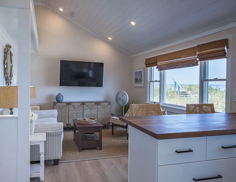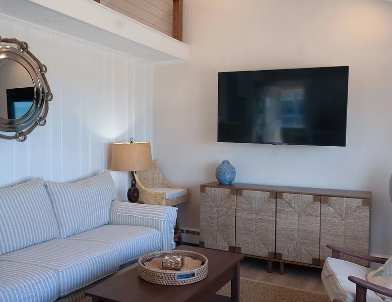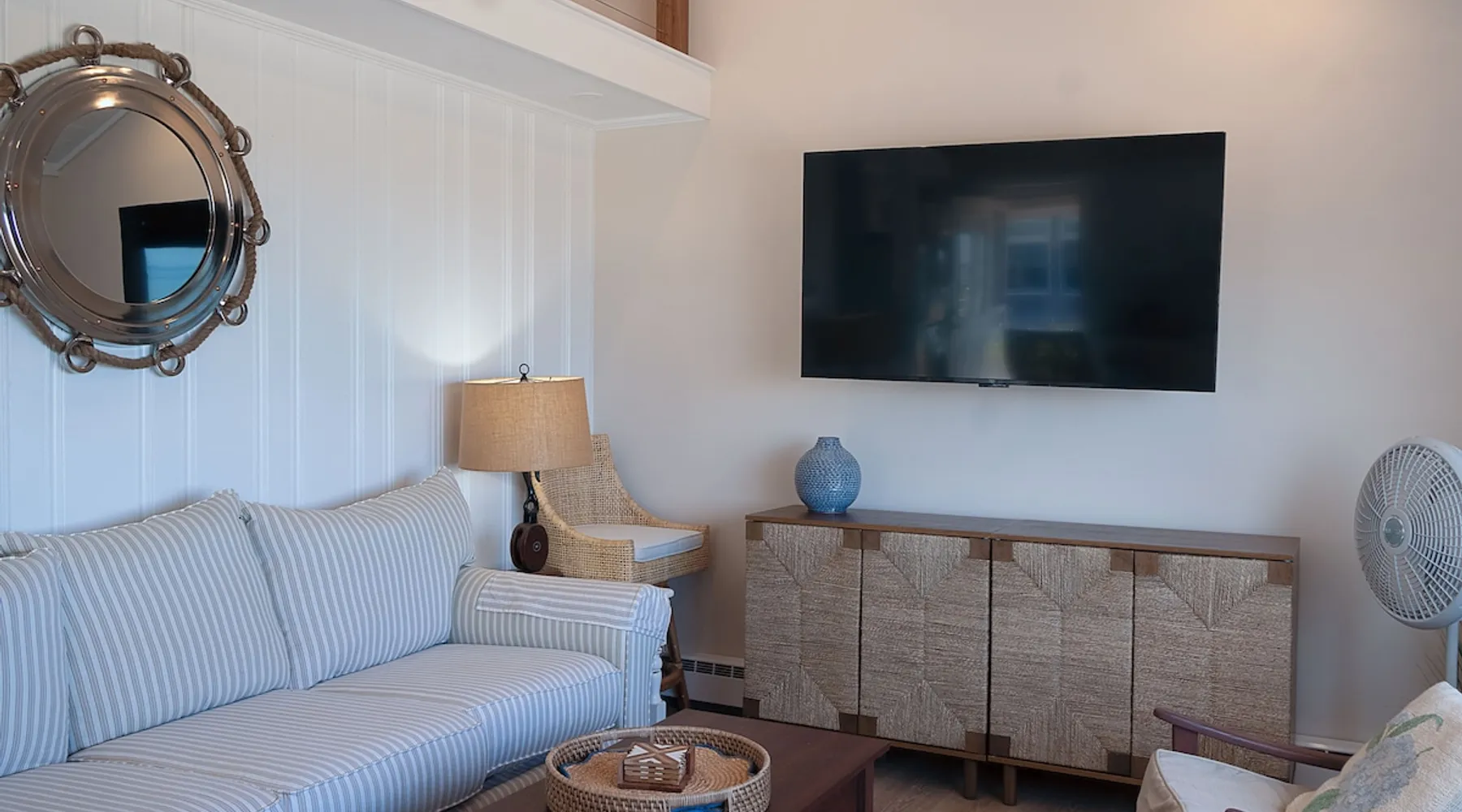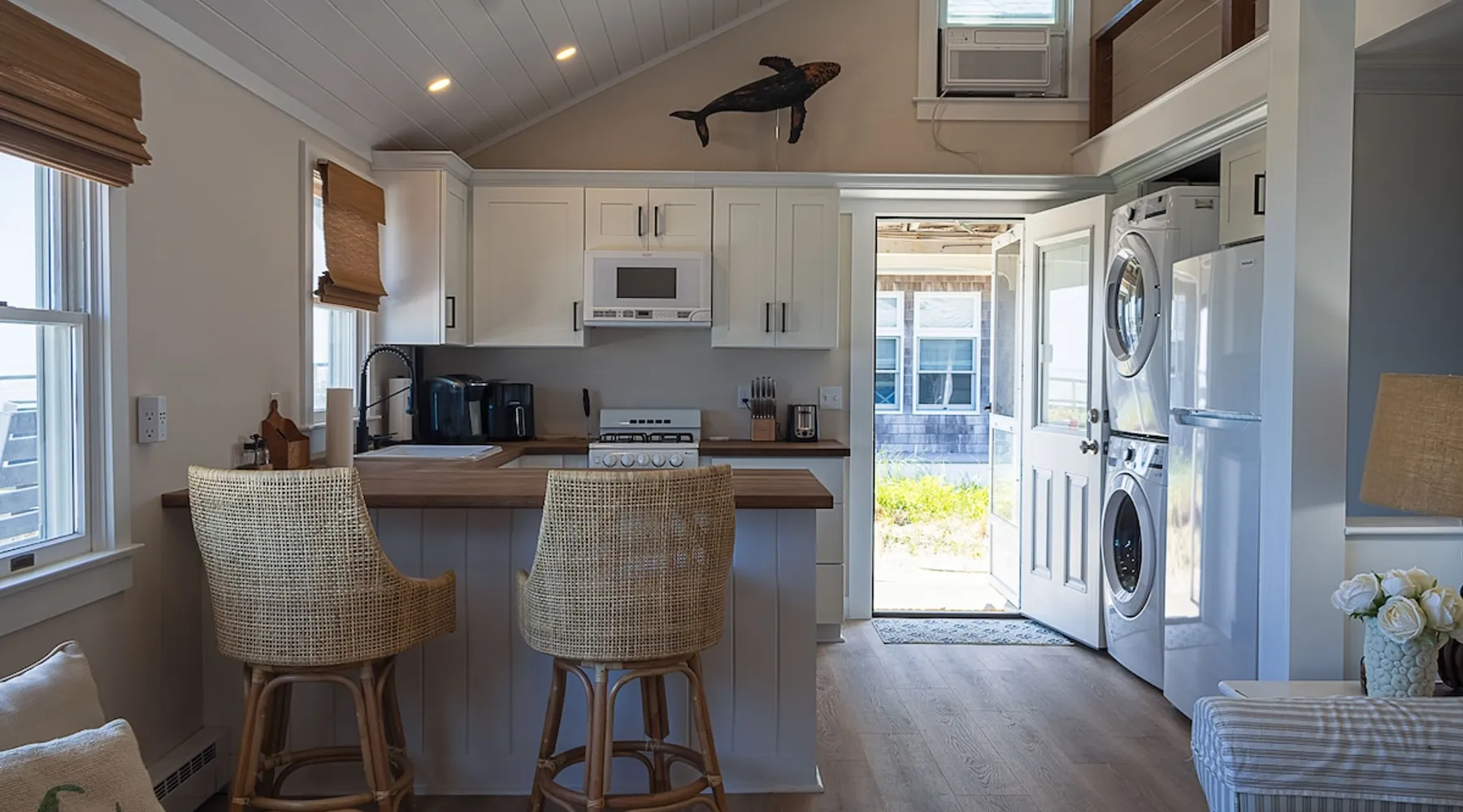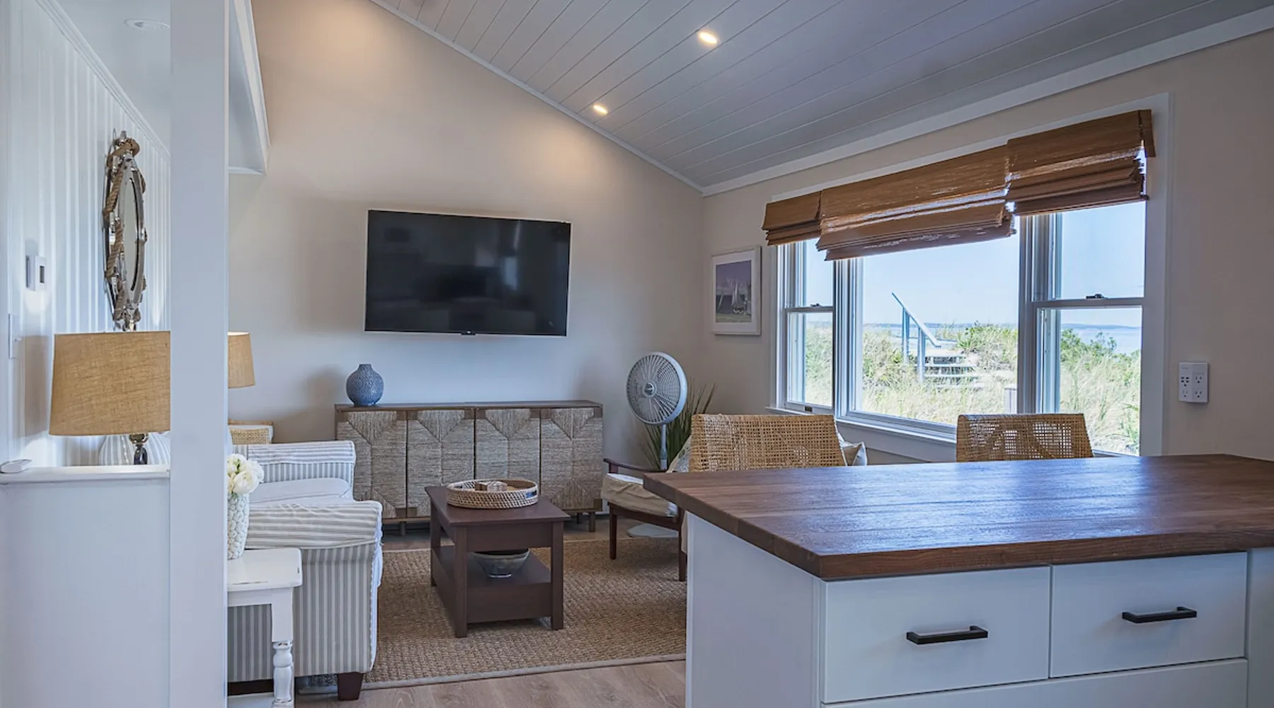 Adorable waterfront unit of a three unit property located right on East Sandwich beach. 2 Bedrooms, bath with shower, laundry and internet. Enjoy the great view of beautiful Cape Cod Bay and private pathway to the beach. The space Adorable waterfront unit of a three unit property located right on East Sandwich beach. Enjoy the great view of beautiful Cape Cod Bay. Waterfront patio, outside shower and huge sandbar makes this a perfect vacation spot. Bright and white. Cable television, DVD player and a fireplace for indoor use. Great outside seating with views of the ocean and private path to have an evening bon fire. Wireless High-Speed internet available. Window A/C unit to cut down the humidity on some of those hot days. Parking for 2 cars, shared enclosed outside shower, private patio with picnic table, benches and gas grill for cooking out. Private pathway to the beach. Enjoy long walks, sunsets and roasting marshmallows at the beach. Bedroom 1 - Queen Bedroom 2 - Two Twins Other things to note Sheets and towels are not included and may be brought or rented locally. Lookup dunetootin linen rentals for pricing.