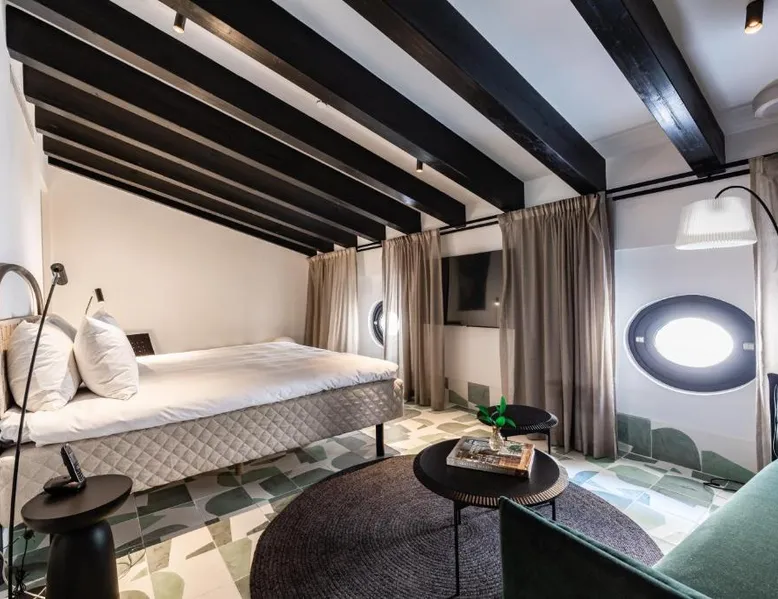 Elegant Accommodations: Concepcio by Nobis in Palma de Mallorca offers a 5-star experience with a modern restaurant, bar, and year-round outdoor swimming pool. Guests enjoy free WiFi, a fitness center, sauna, and sun terrace. Comfortable Amenities: Rooms feature air-conditioning, private bathrooms, mini-bars, and flat-screen TVs. Additional facilities include a lounge, fitness room, and 24-hour front desk. Dining Options: The restaurant serves Mediterranean and local cuisines with vegetarian, gluten-free, and dairy-free options. Breakfast includes continental, buffet, and à la carte selections with fresh pastries and local specialties. Prime Location: Located 5.6 mi from Palma de Mallorca airport, the hotel is near attractions such as Playa Ca'n Pere Antoni (1.1 mi) and Es Baluard Museum (7-minute walk). Boating is available in the surroundings. The spacious double room features air conditioning, a mini-bar, as well as a private bathroom boasting a shower and a hairdryer. This double room has a seating area, a safe deposit box and a TV. The unit has 1 bed.