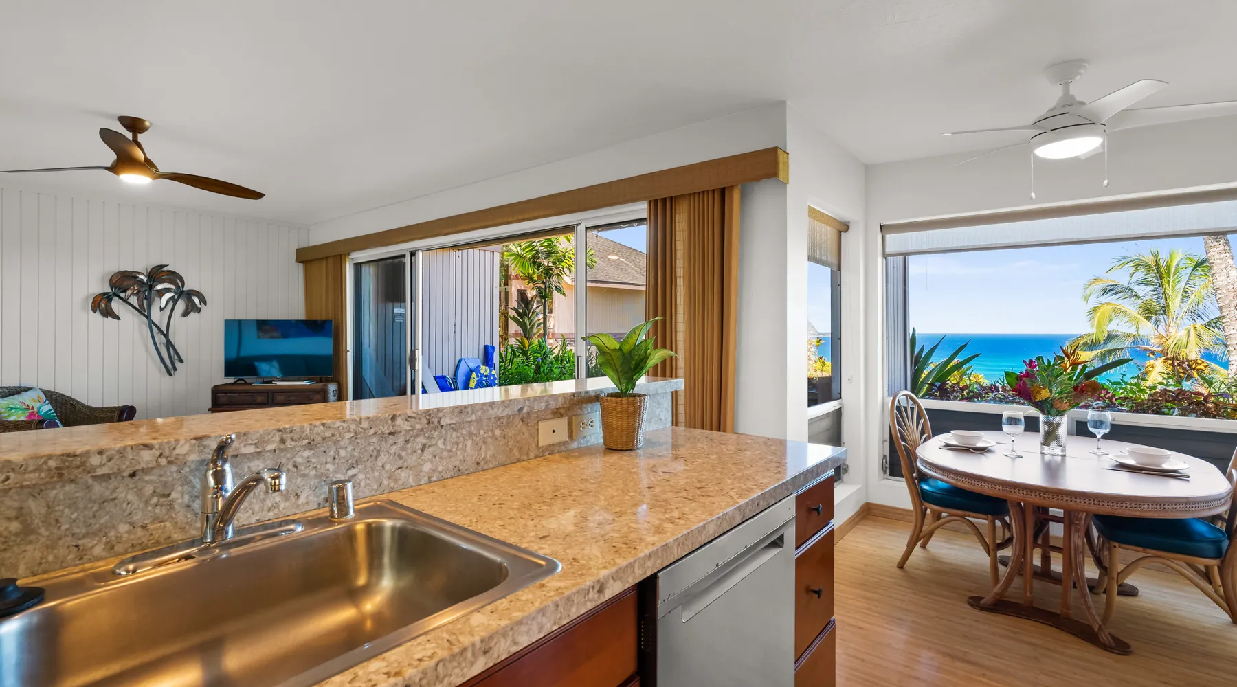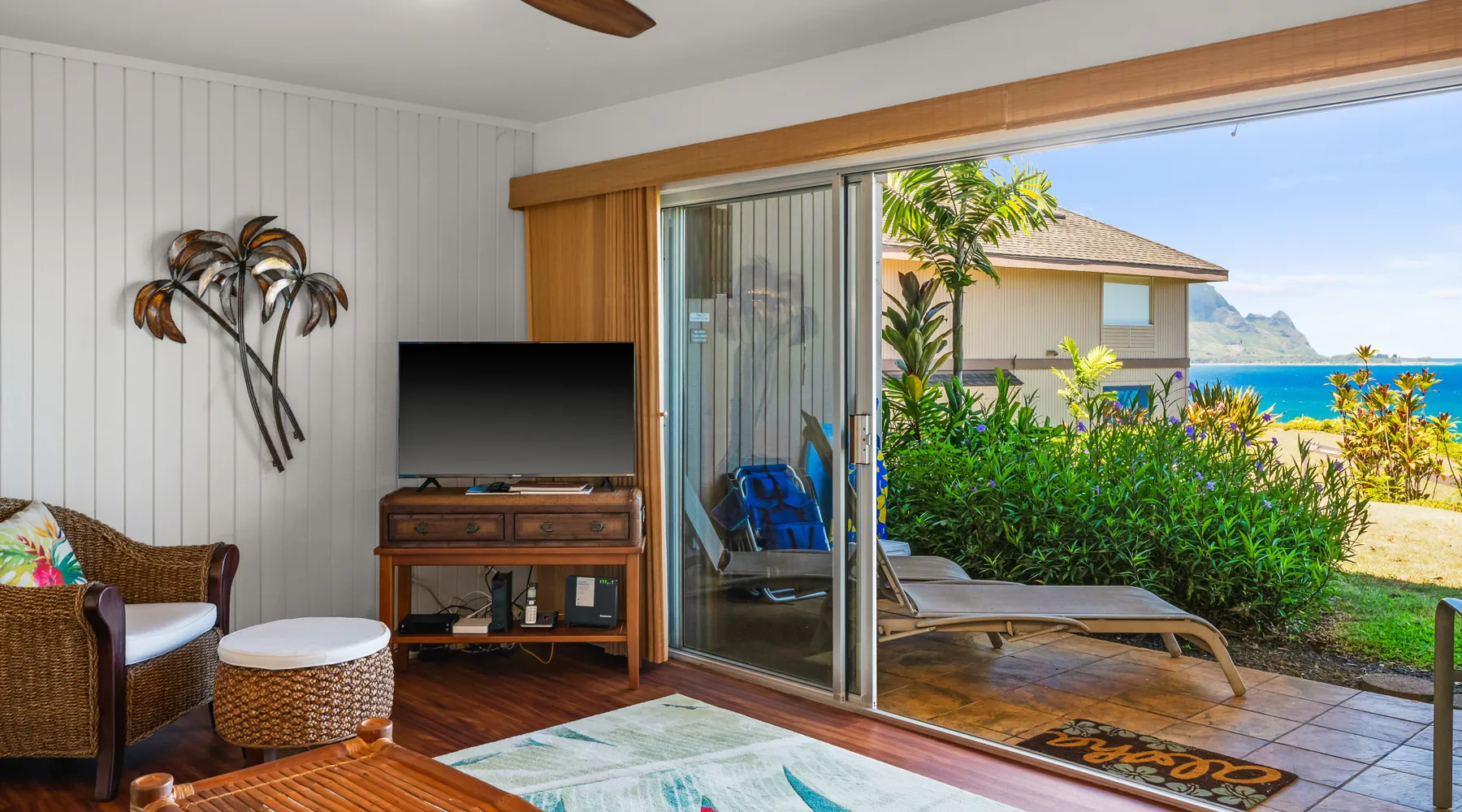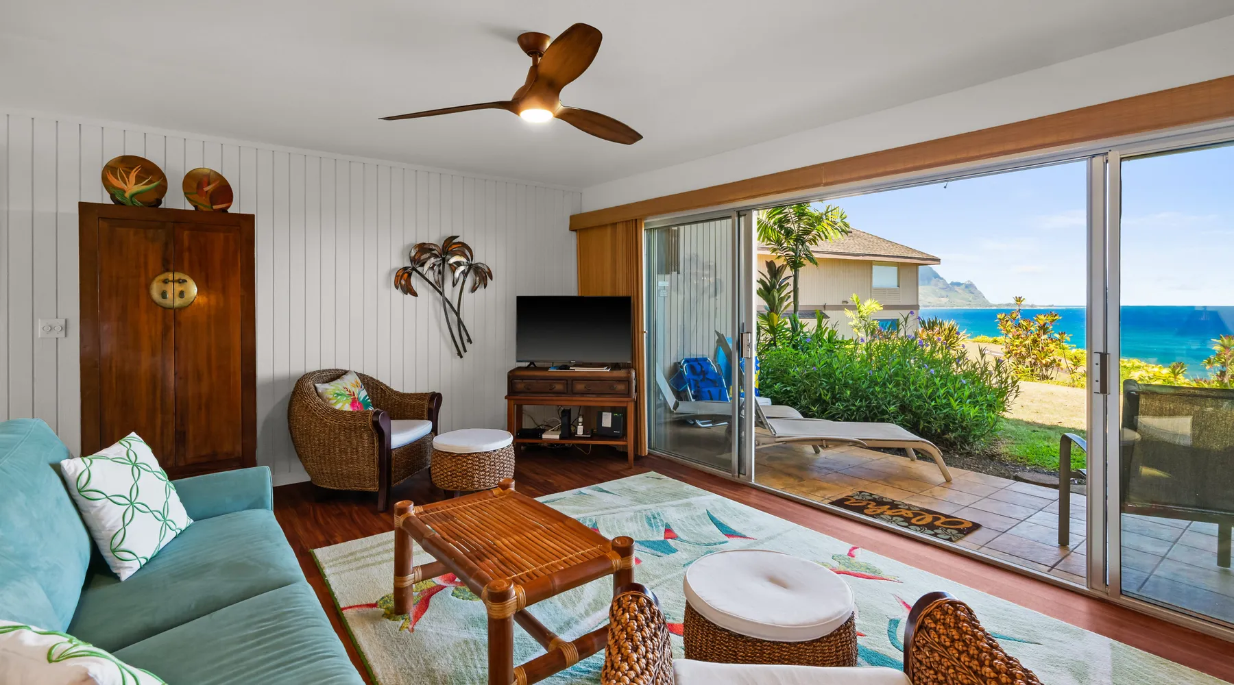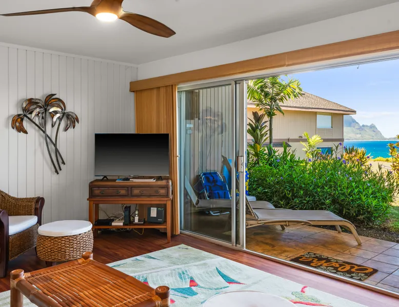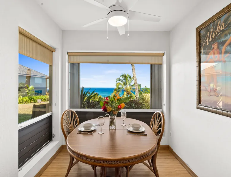 Escape to Pali Ke Kua 108 and enjoy ocean views and a relaxing environment in this ground floor condo.This bright and sunny condo has an island style, open concept living room, dining room and kitchen, all with beautiful panoramic ocean views. Relax and enjoy Bali Hai sunsets and seasonal whale watching (December through May) from your private lanai.This 1 br 1 bath con This 1 Bedroom, 1 bath condo offers all the comforts of home with a fully equipped kitchen, dishwasher, washer and dryer, cable TV and free high speed internet access. Ground floor condo offers easy access to bluff and private path to Hideaways Beach. Pali Ke Kua has a private, paved path down to Hideaways Beach. This section of Hideaways Beach is difficult to access except by this path and is therefore fairly secluded. It is known for incredible surfing, swimming and is considered to be one of the best snorkeling spots on Kauai's north shore. Pali Ke Kua Resort also features a big beautiful new pool and jacuzzi. The gorgeous pool area is very large with plenty of areas to relax and sunbathe or even nap in the shade. Pali Ke Kua, one of Princeville Kauai's premier resorts, sits majestically on the edge of the ocean bluff overlooking Hideaways Beach, Hanalei Bay and the famous Bali Hai. The resort has amazing ocean and Bali Hai views. Onsite Restaurant - Hideaways Pizza Pub. You will enjoy the convenience of Pali Ke Kuas newly renovated Italian restaurant, Hideaways Pizza Pub. The fully renovated restaurant features dining as well as a fun bar perfect for hanging out and talking story as the locals would say. Pali Ke Kua Resort is located in the heart of Princeville, Hawaii, close to the St. Regis, Princeville Center, Hanalei, Makai Golf Club, shopping, dining and many amazing beaches. TA- 209-726-7712-01 TMK 4-5-4-12-5-8 Amenities: Cable/satellite TV, Dryer, Extra Pillows And Blankets, Hair Dryer, Hangers, Internet, Internet Access, Iron, Iron Board, Linens, Linens provided, Living Room, Lock Box, Parking, Self Check-In, TV, Towels, Towels provided, Washer Attractions: Reef, Waterfalls Car: Recommended Changeover/Arrival Day: 24Hr Check-In Cleanliness: Cleaning Disinfection, Enhanced Cleaning Practices, Guest Gap Period - 48 Hours, High-touch surfaces cleaned with disinfectant, Self Check In / Check Out Emergency: Emergency Fire Contact, Emergency Medical Contact, Emergency Police Contact Entertainment: Television Kitchen and Dining: Coffee Maker, Cooking Basics, Dishes Utensils, Dishwasher, Freezer, Fridge, Kettle, Kitchen, Microwave, Oven, Refrigerator, Stove, Toaster Leisure: Bird Watching, Boating, Horseback Riding, Paddle Boating, Scenic Drives, Shelling, Sight Seeing, Walking, Water Sports, Whale Watching Location Types: Near Ocean, Ocean View, Ocean views, Water views Outdoor: Grill Pool/Spa: Communal Pool, Outdoor pool shared Safety Features: Outdoor Lighting Sports and Adventure: Cycling, Deepsea Fishing, Fishing, Golf, Golf course within 30 min drive, Hiking, Hiking trips, Kayaking, Mountain Biking, Sailing, Scuba or Snorkeling, Snorkeling, Snorkeling / Diving, Surfing, Swimming, Tennis Suitability: Ceiling fans, Children Welcome, Free Parking, Hot Water, Pets Not Allowed, Private Living Room, Smoking Not Allowed Themes: Adventure, Away From It All, Budget, Family, Luxury, Romantic, Sports Activities