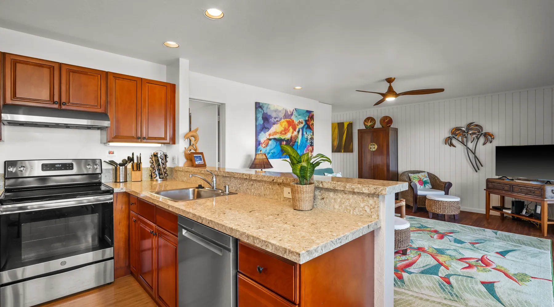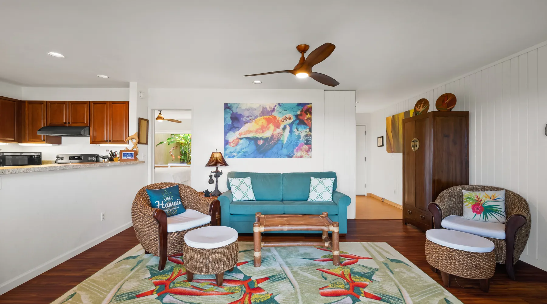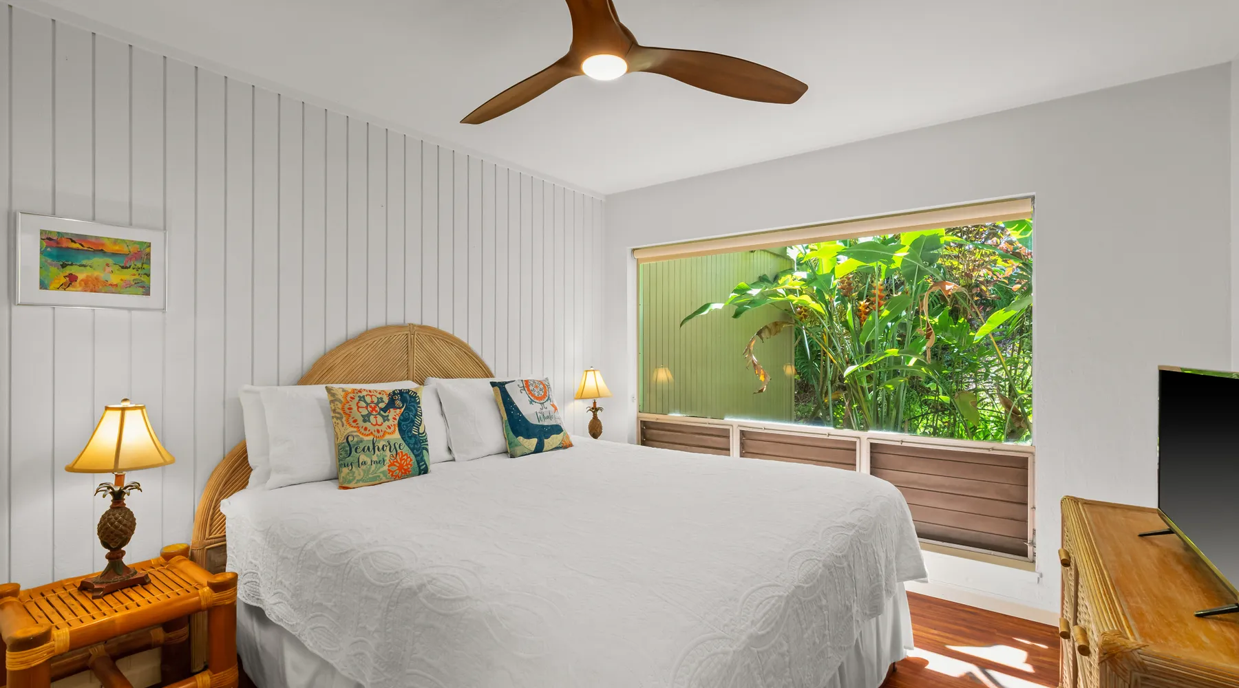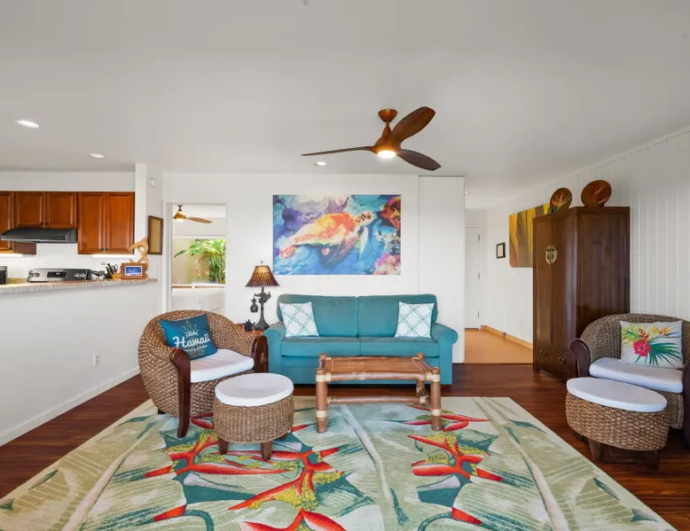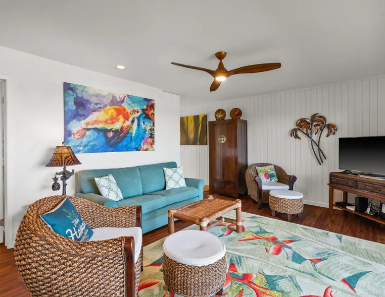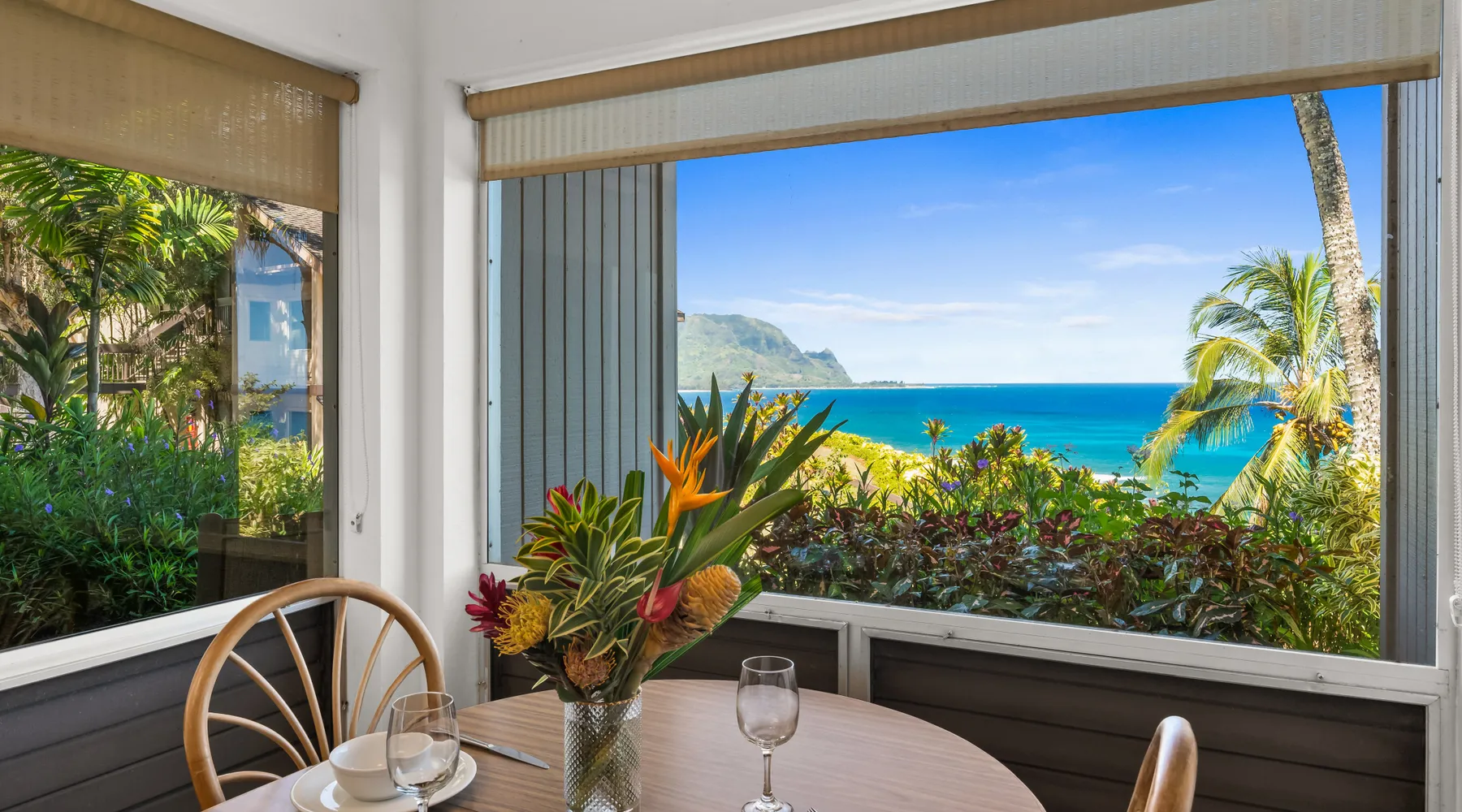 Escape to Pali Ke Kua 108 and enjoy ocean views and a relaxing environment in this ground floor condo.This bright and sunny condo has an island style, open concept living room, dining room and kitchen, all with beautiful panoramic ocean views. Relax and enjoy Bali Hai sunsets and seasonal whale watching (December through May) from your private lanai.This 1 br 1 bath con This 1 Bedroom, 1 bath condo offers all the comforts of home with a fully equipped kitchen, dishwasher, washer and dryer, cable TV and free high speed internet access. Ground floor condo offers easy access to bluff and private path to Hideaways Beach. Pali Ke Kua has a private, paved path down to Hideaways Beach. This section of Hideaways Beach is difficult to access except by this path and is therefore fairly secluded. It is known for incredible surfing, swimming and is considered to be one of the best snorkeling spots on Kauai's north shore. Pali Ke Kua Resort also features a big beautiful new pool and jacuzzi. The gorgeous pool area is very large with plenty of areas to relax and sunbathe or even nap in the shade. Pali Ke Kua, one of Princeville Kauai's premier resorts, sits majestically on the edge of the ocean bluff overlooking Hideaways Beach, Hanalei Bay and the famous Bali Hai. The resort has amazing ocean and Bali Hai views. Onsite Restaurant - Hideaways Pizza Pub. You will enjoy the convenience of Pali Ke Kuas newly renovated Italian restaurant, Hideaways Pizza Pub. The fully renovated restaurant features dining as well as a fun bar perfect for hanging out and talking story as the locals would say. Pali Ke Kua Resort is located in the heart of Princeville, Hawaii, close to the St. Regis, Princeville Center, Hanalei, Makai Golf Club, shopping, dining and many amazing beaches. TA- 209-726-7712-01 TMK 4-5-4-12-5-8 Amenities: Cable/satellite TV, Dryer, Extra Pillows And Blankets, Hair Dryer, Hangers, Internet, Internet Access, Iron, Iron Board, Linens, Linens provided, Living Room, Lock Box, Parking, Self Check-In, TV, Towels, Towels provided, Washer Attractions: Reef, Waterfalls Car: Recommended Changeover/Arrival Day: 24Hr Check-In Cleanliness: Cleaning Disinfection, Enhanced Cleaning Practices, Guest Gap Period - 48 Hours, High-touch surfaces cleaned with disinfectant, Self Check In / Check Out Emergency: Emergency Fire Contact, Emergency Medical Contact, Emergency Police Contact Entertainment: Television Kitchen and Dining: Coffee Maker, Cooking Basics, Dishes Utensils, Dishwasher, Freezer, Fridge, Kettle, Kitchen, Microwave, Oven, Refrigerator, Stove, Toaster Leisure: Bird Watching, Boating, Horseback Riding, Paddle Boating, Scenic Drives, Shelling, Sight Seeing, Walking, Water Sports, Whale Watching Location Types: Near Ocean, Ocean View, Ocean views, Water views Outdoor: Grill Pool/Spa: Communal Pool, Outdoor pool shared Safety Features: Outdoor Lighting Sports and Adventure: Cycling, Deepsea Fishing, Fishing, Golf, Golf course within 30 min drive, Hiking, Hiking trips, Kayaking, Mountain Biking, Sailing, Scuba or Snorkeling, Snorkeling, Snorkeling / Diving, Surfing, Swimming, Tennis Suitability: Ceiling fans, Children Welcome, Free Parking, Hot Water, Pets Not Allowed, Private Living Room, Smoking Not Allowed Themes: Adventure, Away From It All, Budget, Family, Luxury, Romantic, Sports Activities