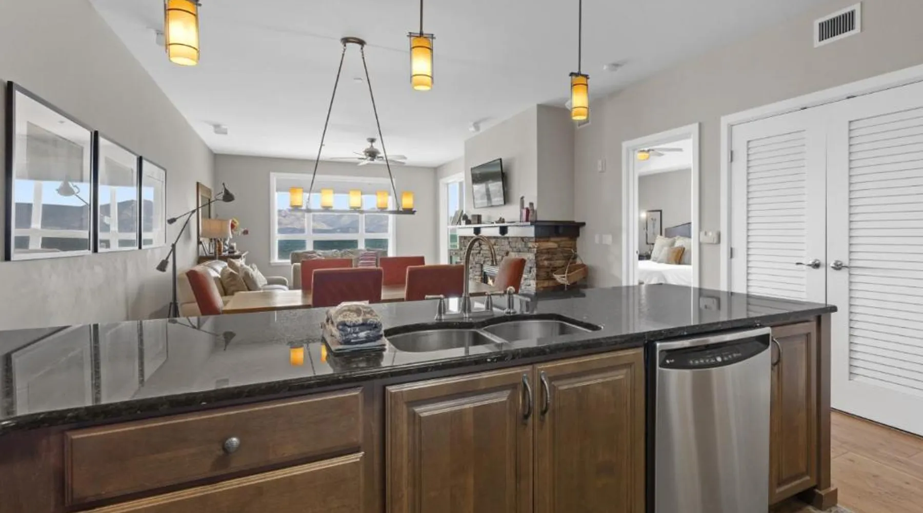 Spacious Accommodations: Seasons at Sandpoint in Sandpoint offers spacious apartments with balconies, private bathrooms, and fully equipped kitchens. Each unit features air-conditioning, a washing machine, and a fireplace, ensuring a comfortable stay. Leisure Facilities: Guests can enjoy spa facilities, a swimming pool with a view, and a lush garden. Additional amenities include a hot tub, picnic area, family rooms, and barbecue facilities, providing ample opportunities for relaxation and entertainment. Convenient Location: Located 77 mi from Spokane International Airport, the property is a 9-minute walk from City Beach and 30 mi from Silverwood Theme Park. Free on-site private parking is available, and skiing activities are nearby. Highly rated by guests. The fireplace is a top feature of this apartment. This spacious apartment comes with 1 living room, 2 separate bedrooms and 2 bathrooms with a shower and free toiletries. Guests can make meals in the kitchen that features a stovetop, a refrigerator, a dishwasher and kitchenware. The air-conditioned apartment features a TV, a washing machine, a private entrance, a tea and coffee maker as well as lake views. The unit has 4 beds.