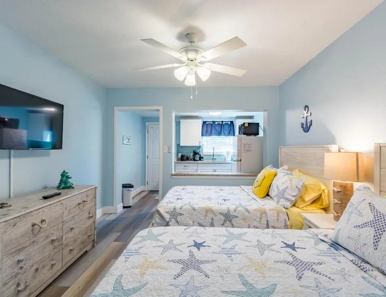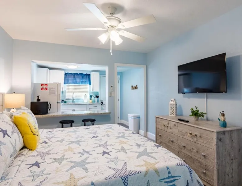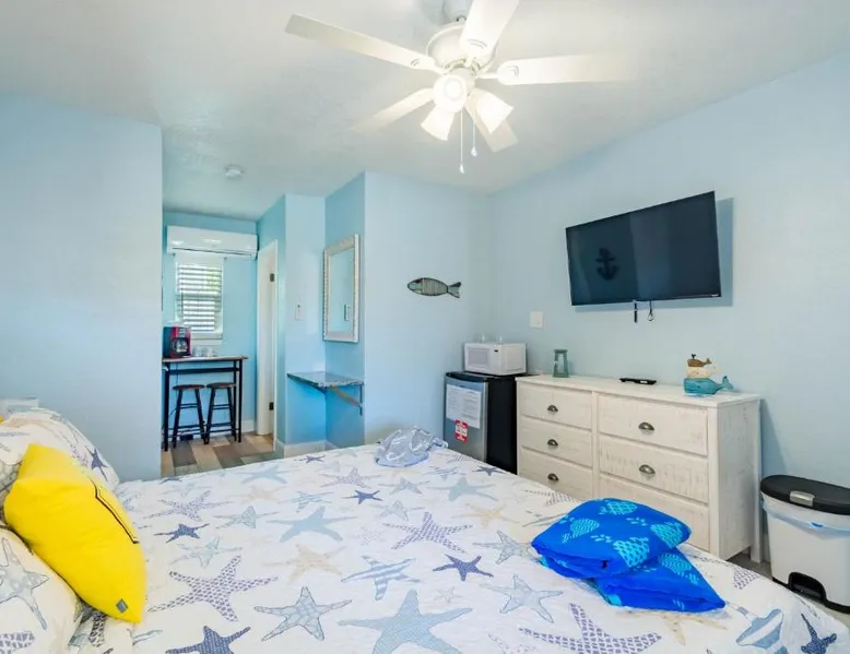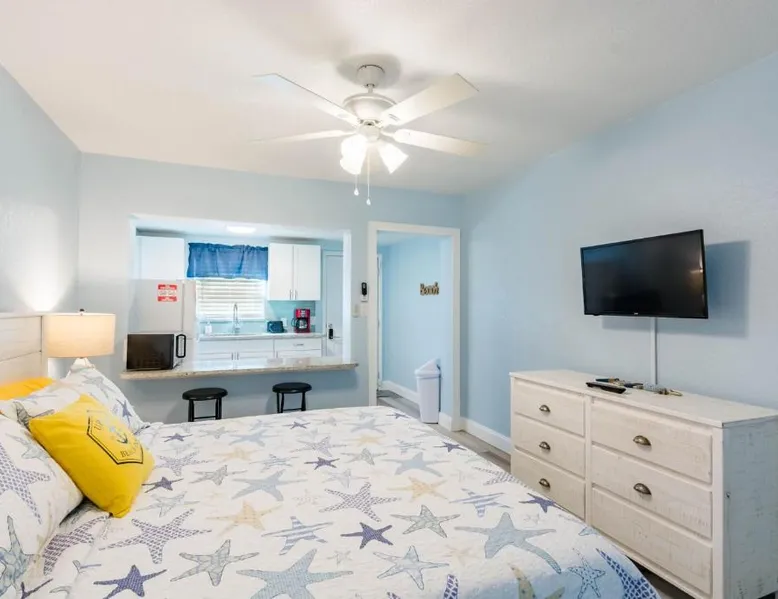 Comfortable Accommodations: Upham Beach Inn in St. Pete Beach offers air-conditioned rooms with private bathrooms, tea and coffee makers, and free WiFi. Each room includes a refrigerator, microwave, and TV, ensuring a pleasant stay. Leisure Facilities: Guests can enjoy a fitness center, sun terrace, and a year-round outdoor swimming pool. The property also features a fitness room, outdoor seating area, and free on-site private parking. Convenient Location: Located 14 mi from St. Pete-Clearwater International Airport, the inn is a 5-minute walk from St. Pete Beach. Nearby attractions include John's Pass and Johns Pass and Village Boardwalk, each 4.3 mi away. This apartment features a pool with a view. This spacious apartment features 1 living room, 2 separate bedrooms and 1 bathroom with a shower and free toiletries. A kitchen fitted with a refrigerator, kitchenware and a microwave is available for cooking and storing food. This apartment is air-conditioned and has a seating area with a flat-screen TV, a private entrance, a tea and coffee maker, a sofa, as well as heating. The unit has 3 beds.