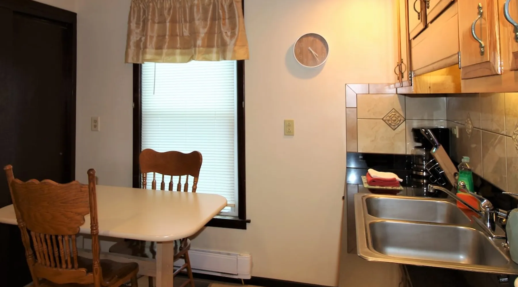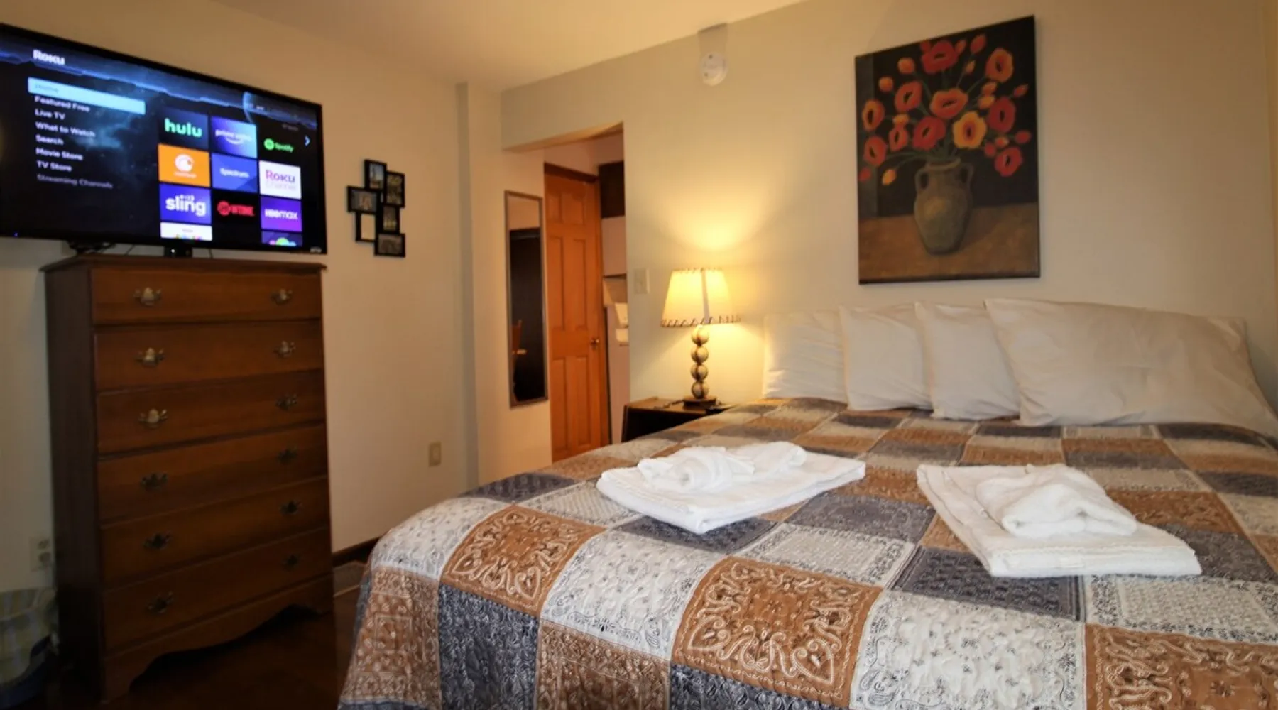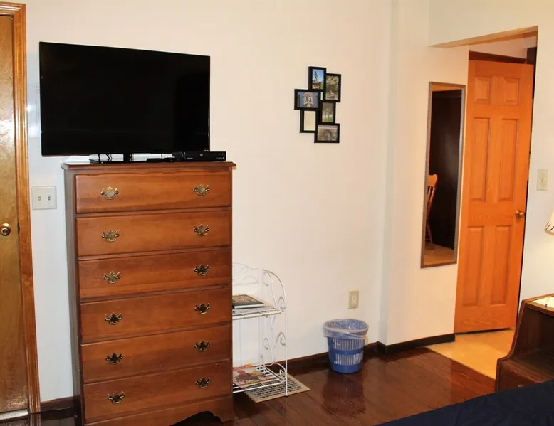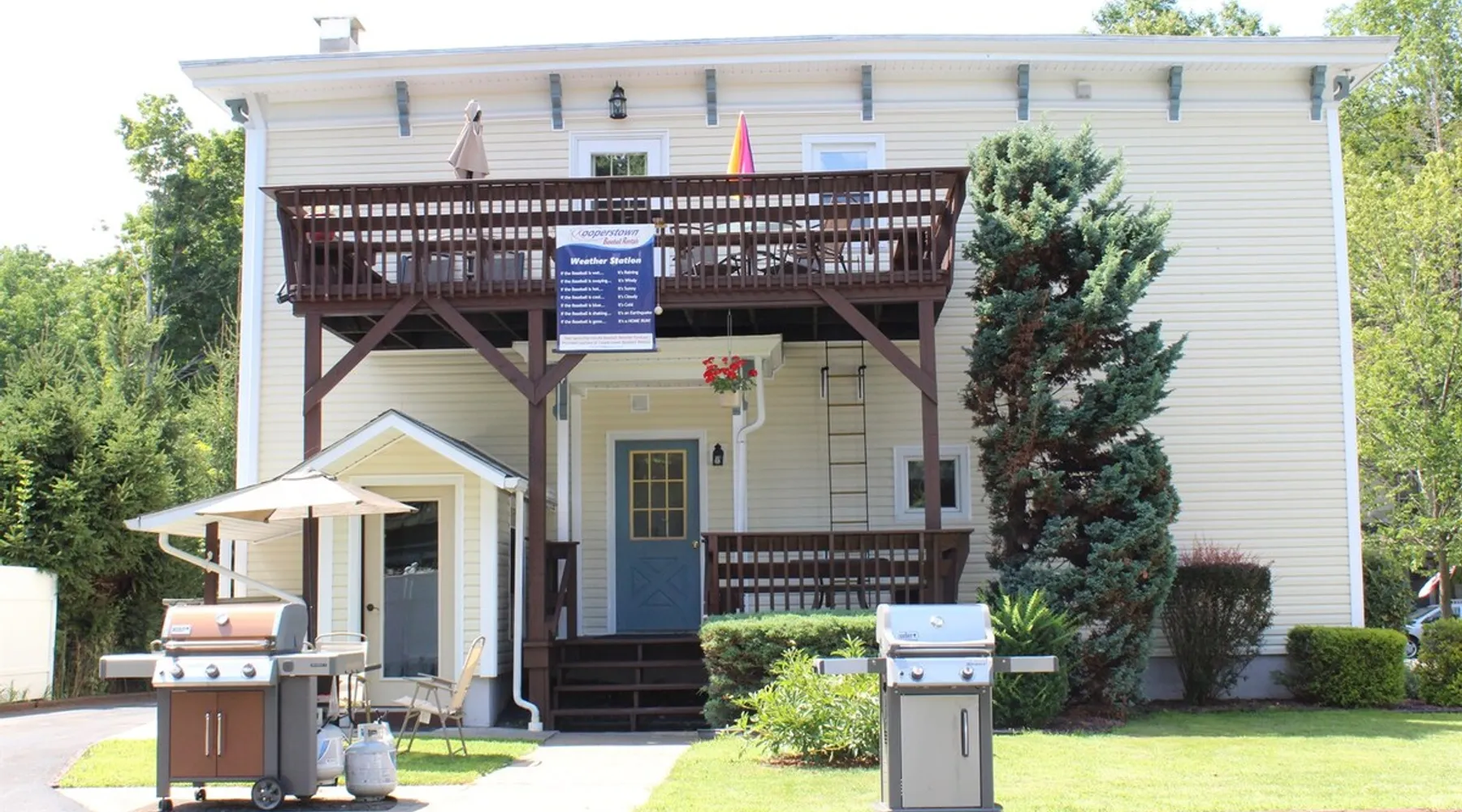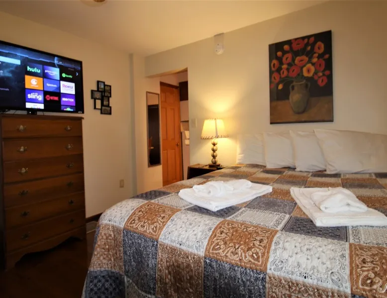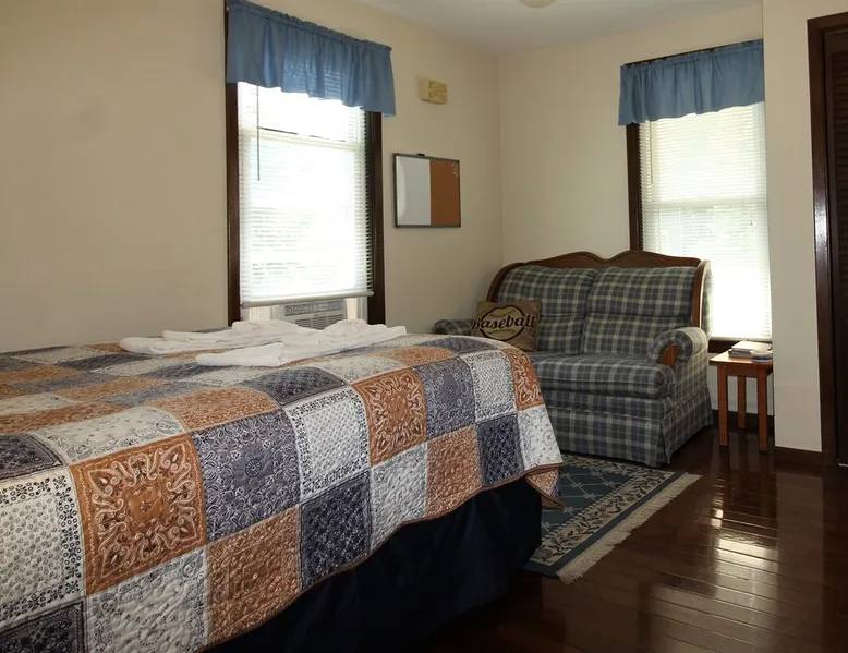 The Dugout Efficiency 1 is perfect for one or two people. This is a first floor efficiency apartment that offers a comfortable living area/bedroom with queen size bed, a large flat screen Roku TV, full bath and a fully equipped eat-in kitchen. Outdoors is a beautiful area with a shared patio set & gas grill to relax and barbecue, as well as a shared on-site laundry facility. High speed wireless internet (Wi-Fi) & air conditioning are standard amenities included with all our rental properties. The space Centrally located, the Dugout Efficiency 1 is: 3.4 miles to Cooperstown All-Star Village 3.1 miles to Cooperstown Baseball World 18.7 miles to Cooperstown Dreams Park 24.7 miles to National Baseball Hall of Fame, Cooperstown Guest access The eat-in kitchen features a gas range, microwave, refrigerator with automatic ice maker, and an updated tiled floor and backsplash. The bathroom is fully tiled with a granite floor. There is a 50" or larger smart Roku flat screen TV in this apartment. There is an on-site, shared free laundry facility. There is ample off-street parking, as well as high speed wireless internet (Wi-Fi) for all the apartments. Other things to note This is a quiet, family oriented residential neighborhood. No parties or large gatherings are allowed at any time.