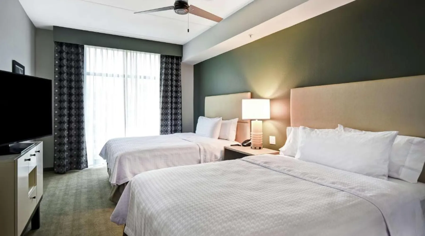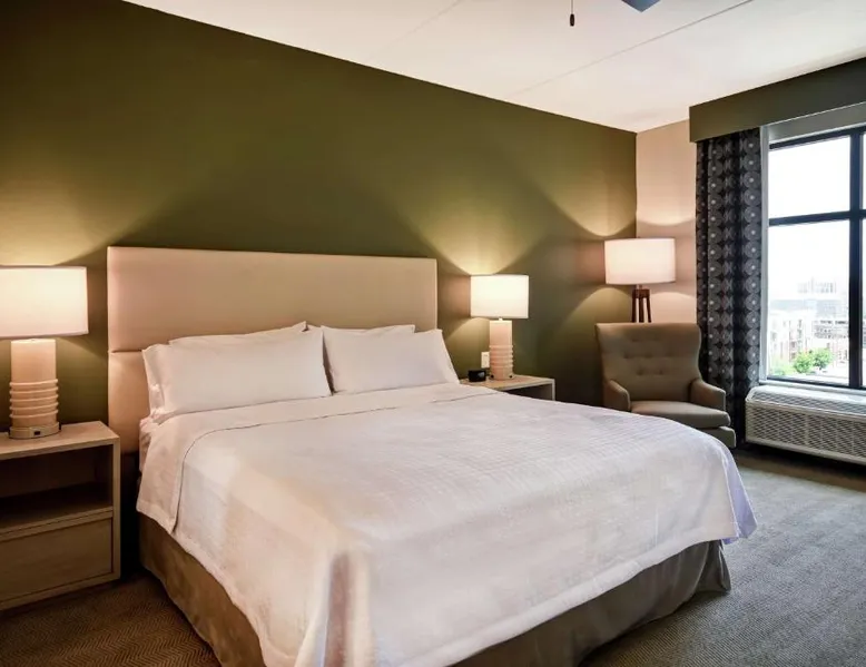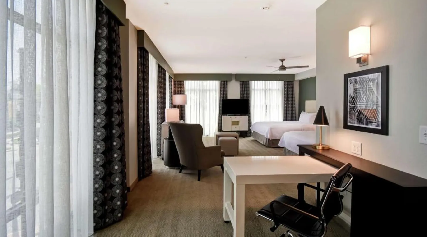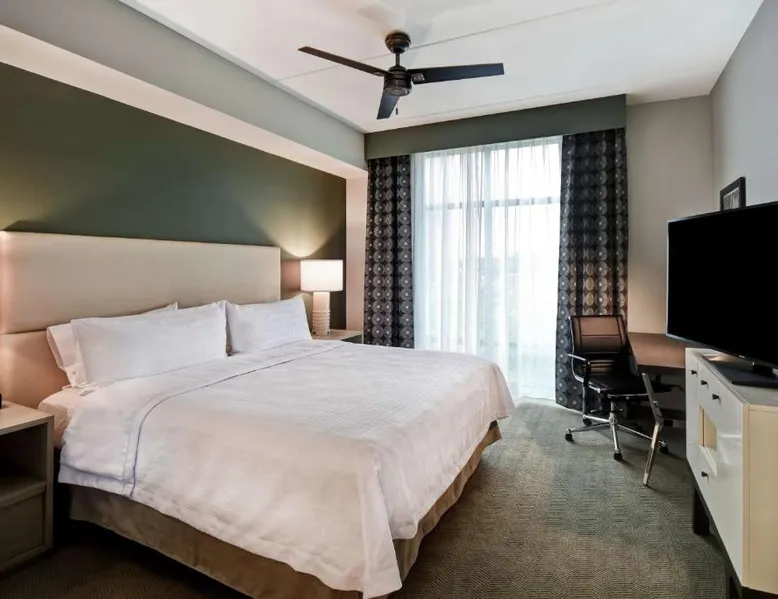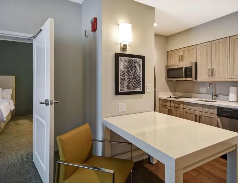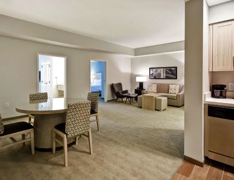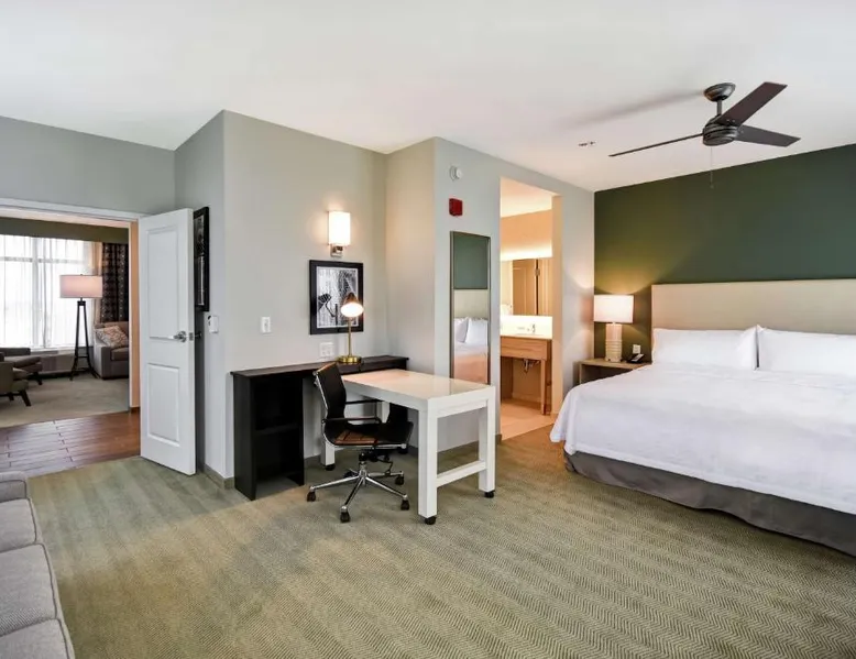 Comfortable Accommodations: Homewood Suites By Hilton Greenville Downtown in Greenville offers air-conditioned rooms with kitchen facilities, free WiFi, and amenities such as a fitness center, terrace, and seasonal outdoor swimming pool. Convenient Facilities: Guests can enjoy a lounge, outdoor fireplace, fitness room, and a 24-hour front desk. Additional services include a minimarket, daily housekeeping, child-friendly buffet, and bicycle parking. Prime Location: Located in the city center, the hotel is a 2-minute walk from Fluor Field and less than 0.6 mi from Peace Center and The Children's Museum Of The Upstate. Greenville-Spartanburg International Airport is 14 mi away. Guest Satisfaction: Highly rated for its convenient location, attentive staff, and immaculate rooms. In the fully equipped kitchen, guests will find a stovetop, a refrigerator, a dishwasher and kitchenware. This studio is air-conditioned and has a seating area with a flat-screen TV, a tea and coffee maker, a wardrobe, a safe deposit box, as well as a sofa. The unit has 2 beds.