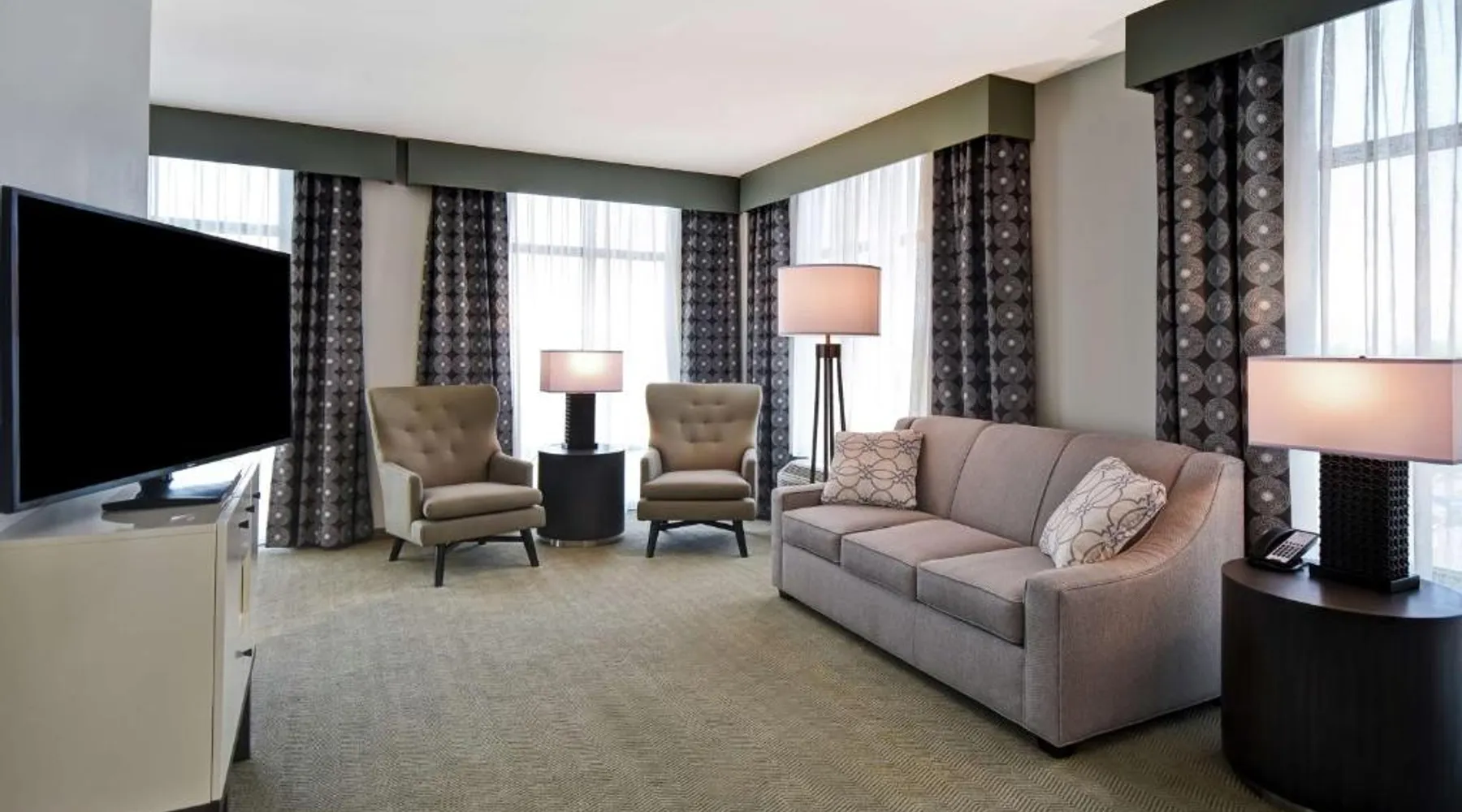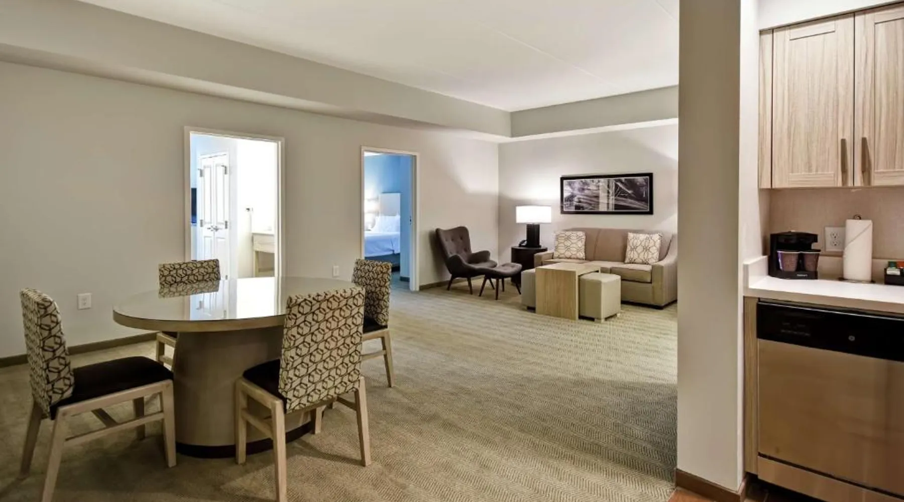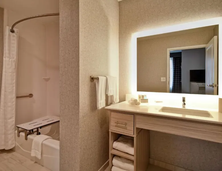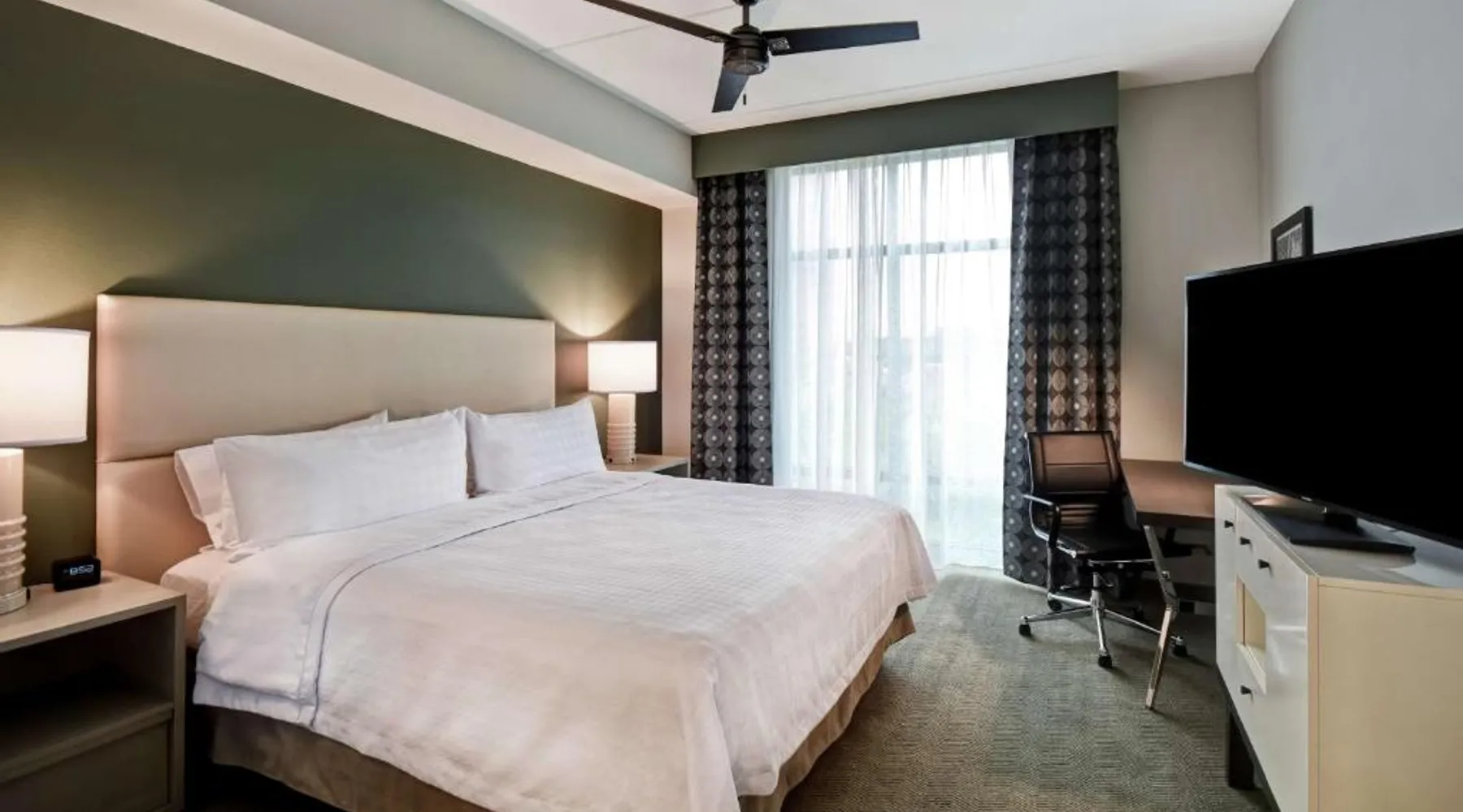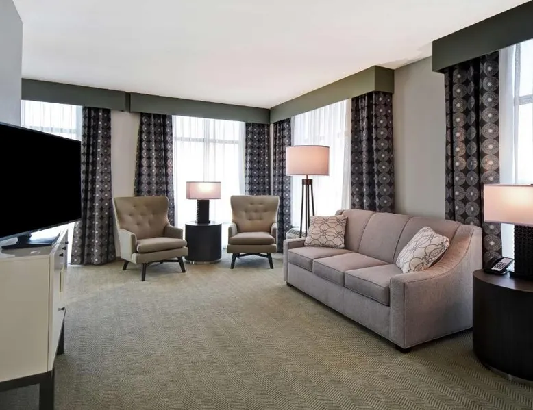Comfortable Accommodations: Homewood Suites By Hilton Greenville Downtown in Greenville offers air-conditioned rooms with kitchen facilities, free WiFi, and amenities such as a fitness center, terrace, and seasonal outdoor swimming pool. Convenient Facilities: Guests can enjoy a lounge, outdoor fireplace, fitness room, and a 24-hour front desk. Additional services include a minimarket, daily housekeeping, child-friendly buffet, and bicycle parking. Prime Location: Located in the city center, the hotel is a 2-minute walk from Fluor Field and less than 0.6 mi from Peace Center and The Children's Museum Of The Upstate. Greenville-Spartanburg International Airport is 14 mi away. Guest Satisfaction: Highly rated for its convenient location, attentive staff, and immaculate rooms. In the fully equipped kitchen, guests will find a stovetop, a refrigerator, a dishwasher and kitchenware. This studio is air-conditioned and has a seating area with a flat-screen TV, a tea and coffee maker, a wardrobe, a safe deposit box, as well as a sofa. The unit has 2 beds.