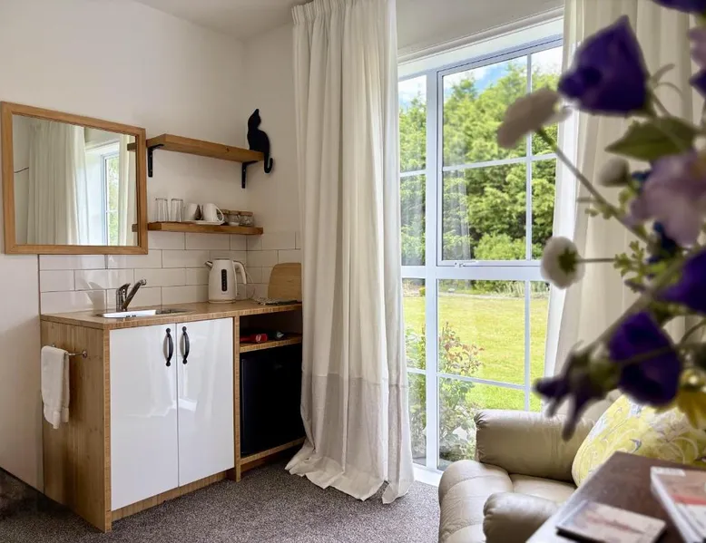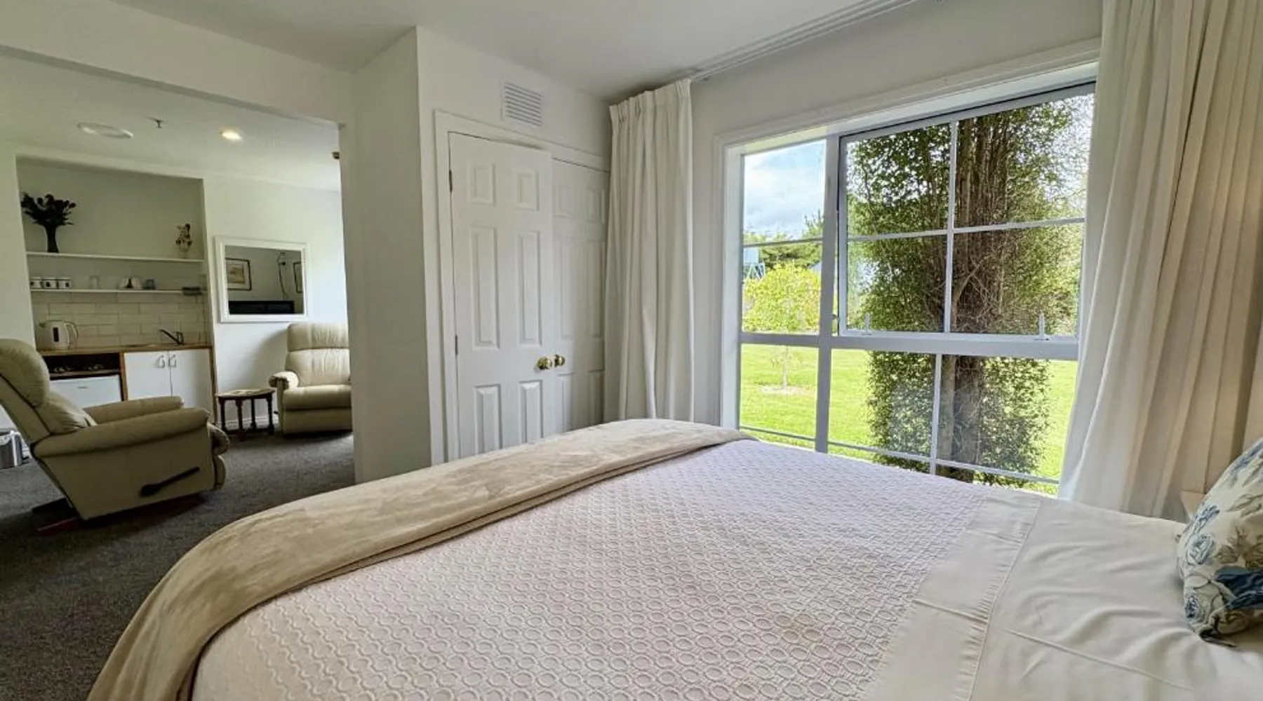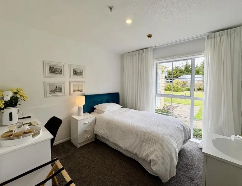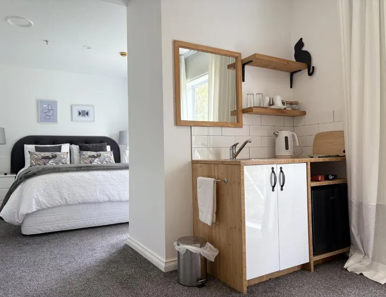 Comfortable Accommodations: 64 Mandalea B&B in Ohoka offers ground-floor units with garden views, private bathrooms, and carpeted floors. Each room includes a TV, electric kettle, wardrobe, and work desk. Relaxing Facilities: Guests can enjoy a sun terrace, garden, and outdoor seating area. The property provides free WiFi, a lounge, shared kitchen, and picnic area. Free on-site private parking is available. Delicious Breakfast: A continental, vegetarian, and gluten-free breakfast is served daily, including juice and fruits. The host and breakfast are highly rated by guests. Convenient Location: Located 17 mi from Christchurch International Airport, the B&B is near attractions such as Christchurch Art Gallery (19 mi) and Hagley Park (19 mi). Free on-site private parking is available. This double room offers a shared bathroom, and heating. The double room has carpeted floors, a seating area with a flat-screen TV, a tea and coffee maker, a wardrobe as well as garden views. The unit has 1 bed.